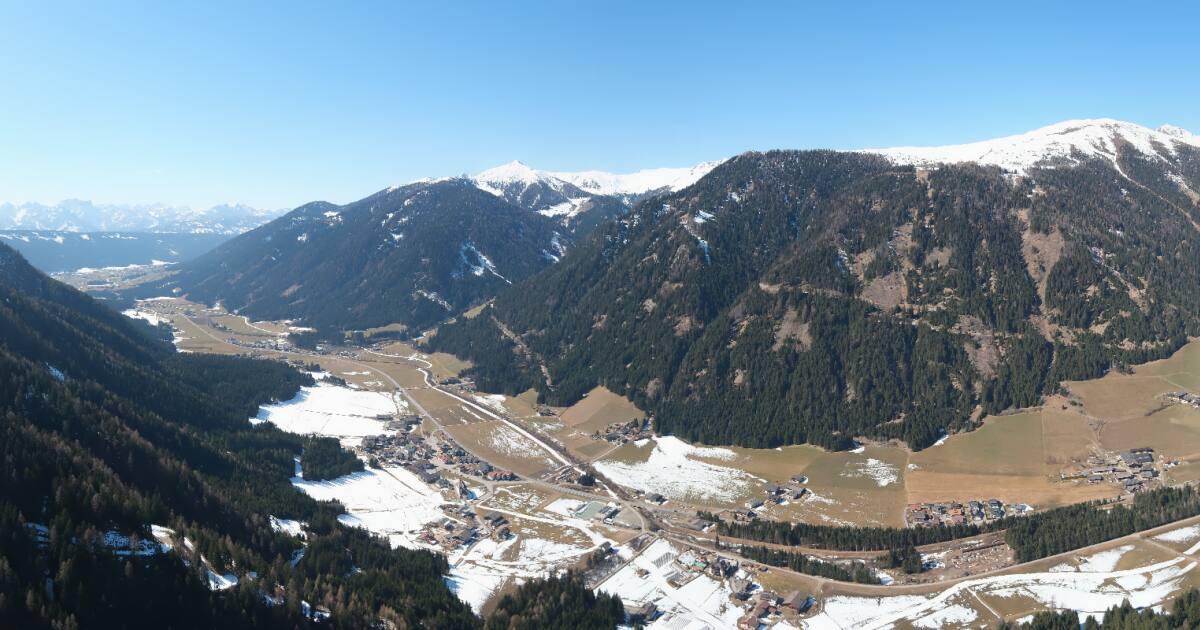Gais, Italien - 12.1 km von Anterselva Mezzavalle: Blick von der Vintage Farm Winklerhof auf Kronplatz und Dolomiten - Ein schöner Livestream aus Gais.