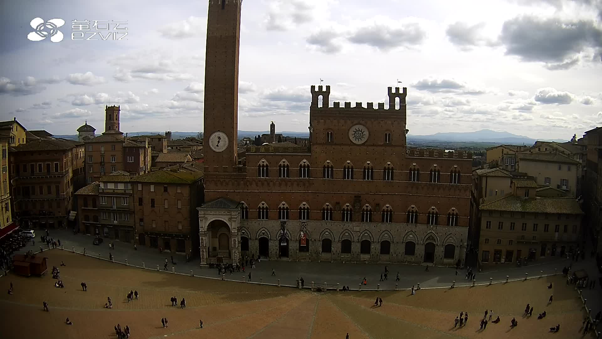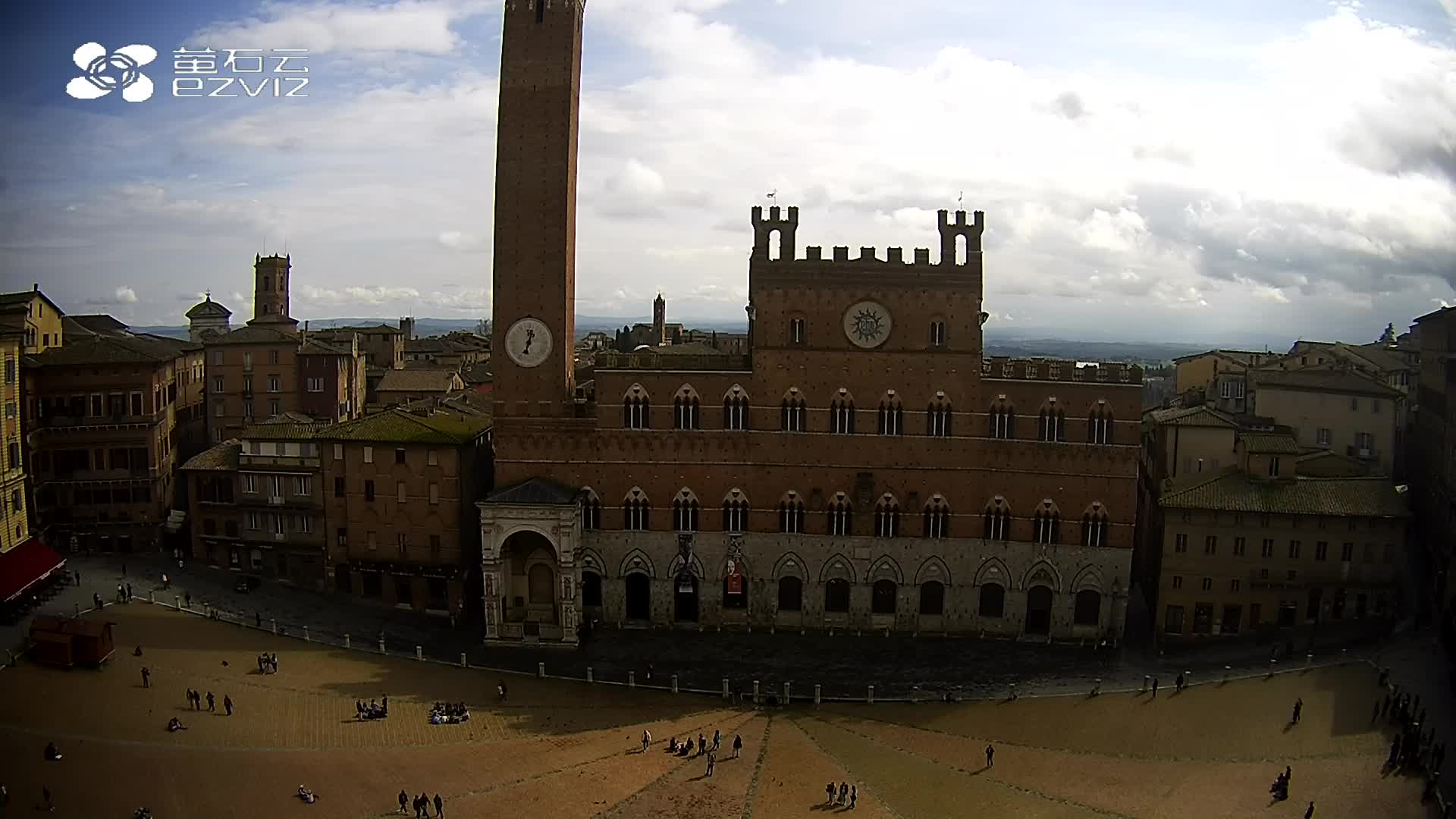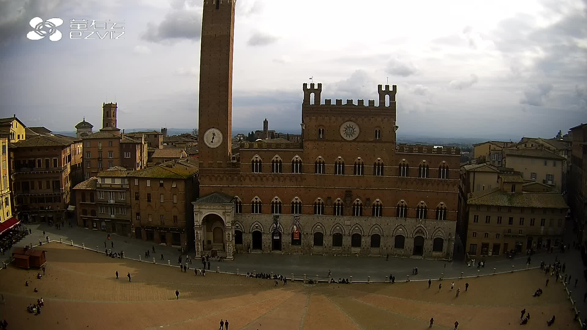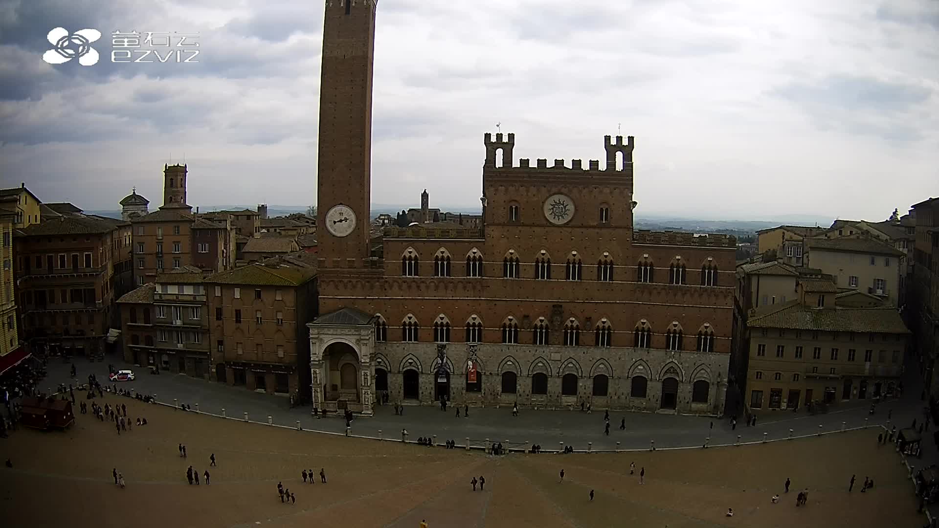 Siena, Italien - 37.9 km von Argiano: HD-Stream Piazza del Campo - Blick auf den zentralen Platz der Stadt, sehr bekannt wegen des Palio, der auf diesem Platz ausgetragen wird.