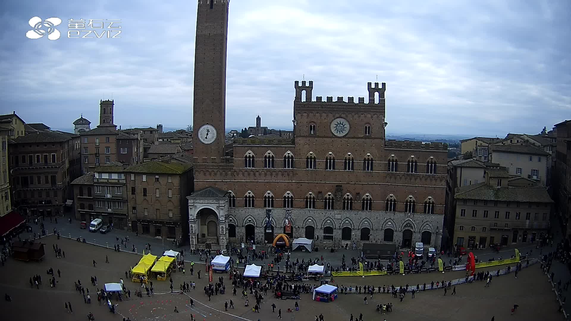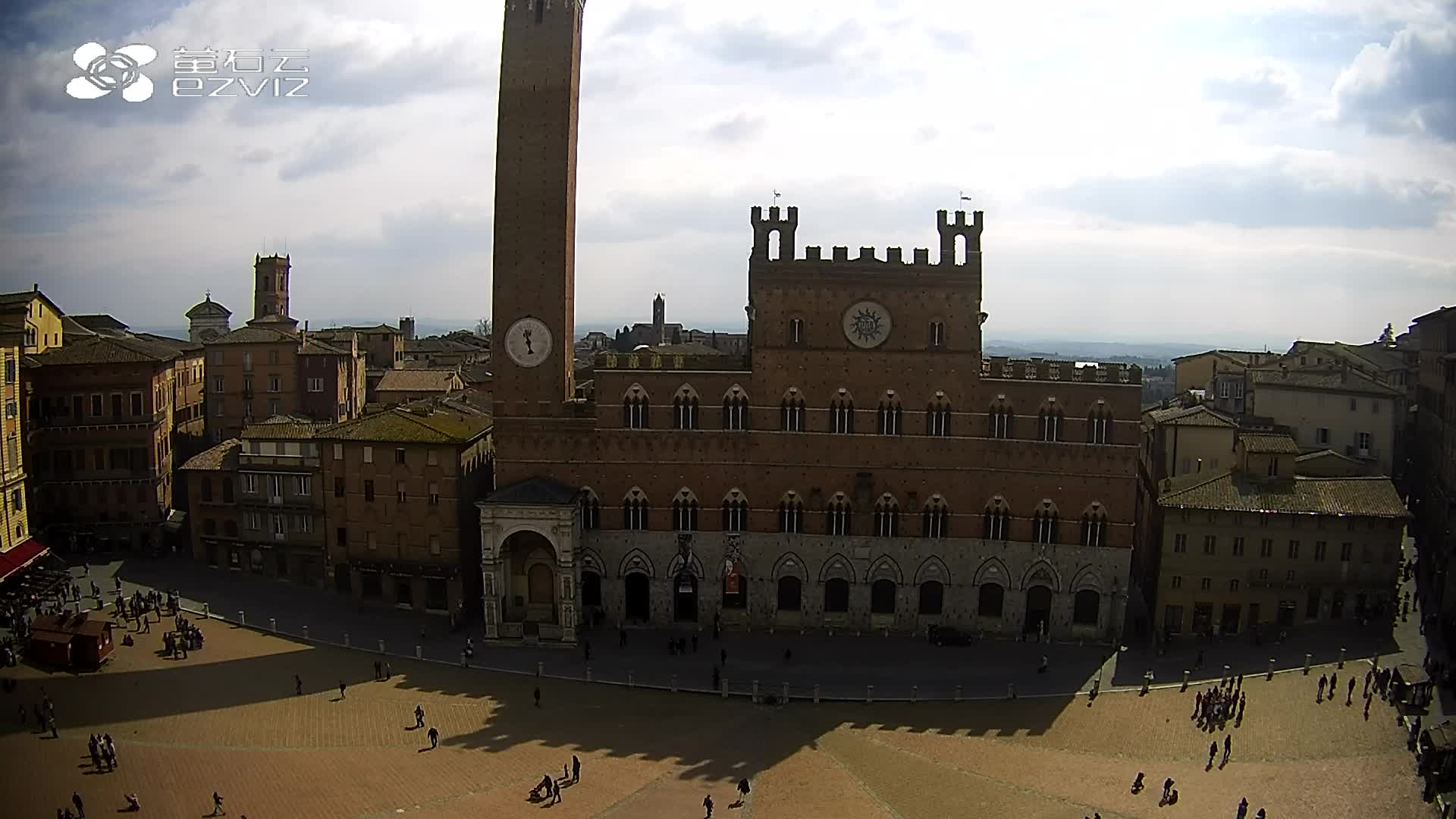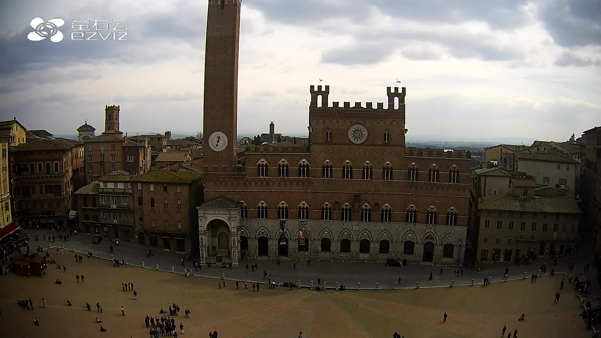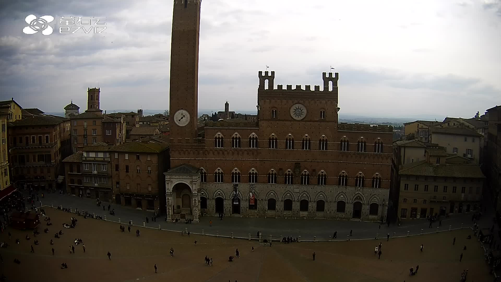 Siena, Italien - 37.9 km von Argiano: HD-Stream Piazza del Campo - Blick auf den zentralen Platz der Stadt, sehr bekannt wegen des Palio, der auf diesem Platz ausgetragen wird.