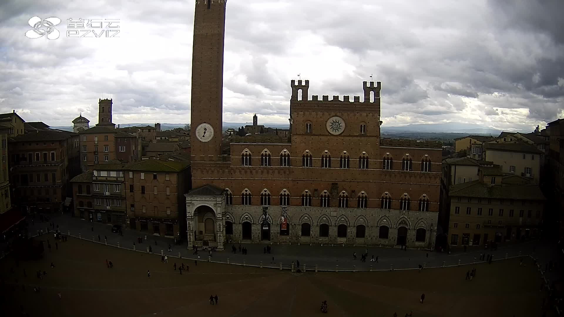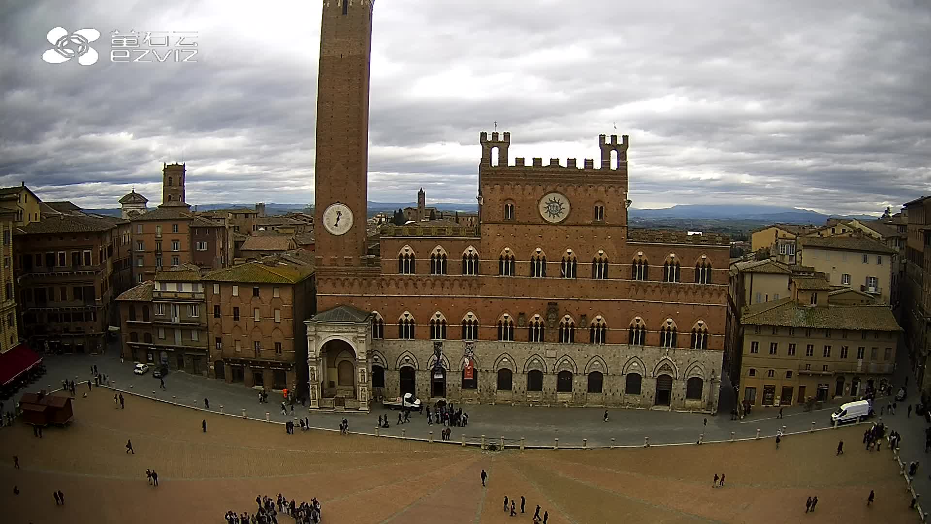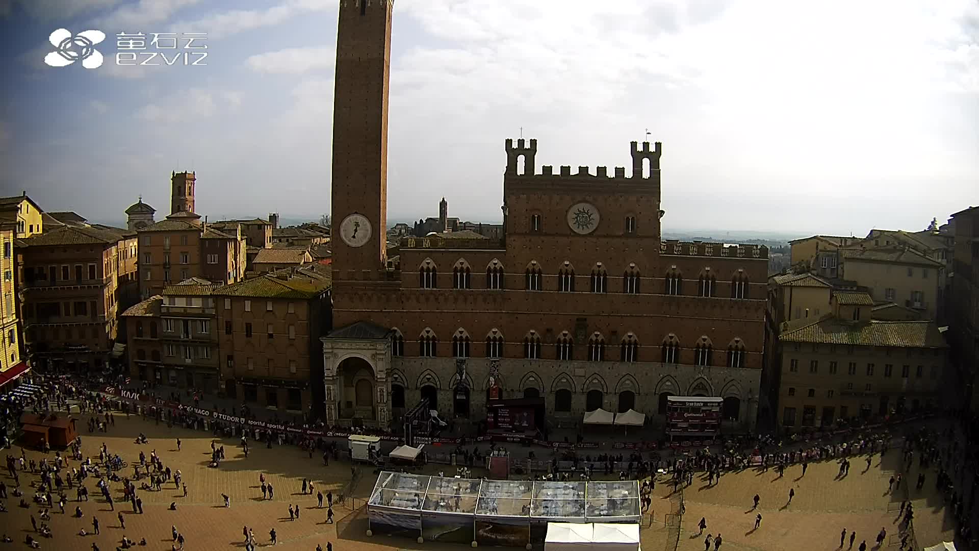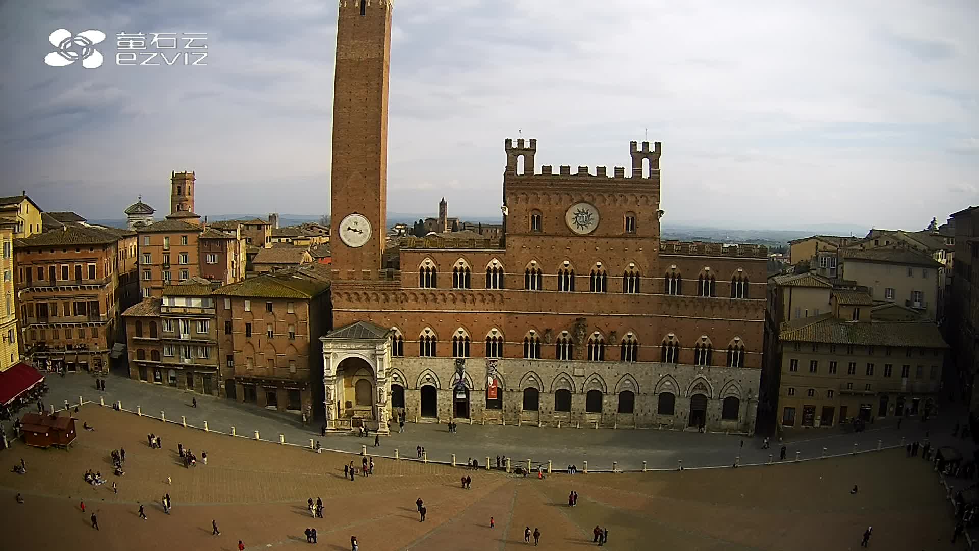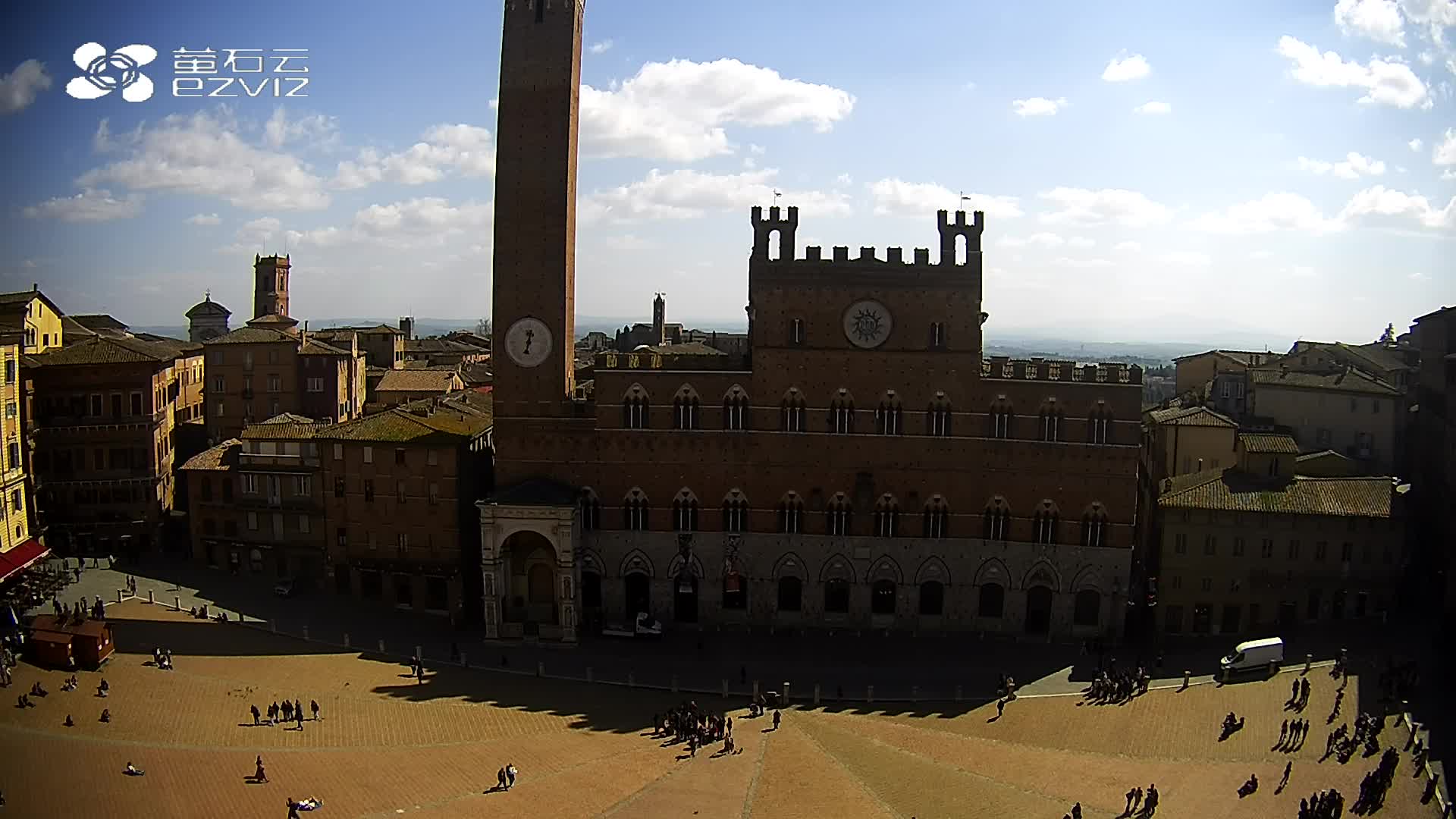 Siena, Italien - 37.9 km von Argiano: HD-Stream Piazza del Campo - Blick auf den zentralen Platz der Stadt, sehr bekannt wegen des Palio, der auf diesem Platz ausgetragen wird.