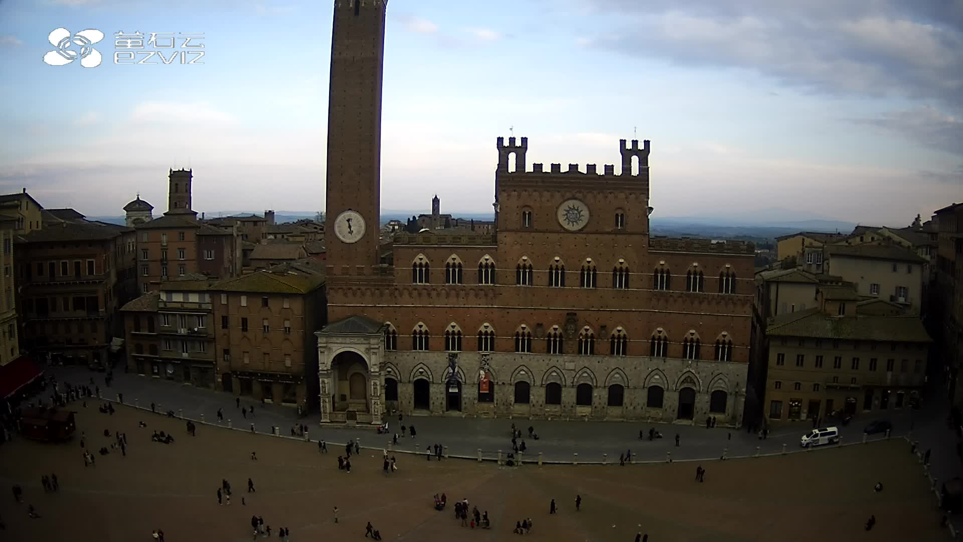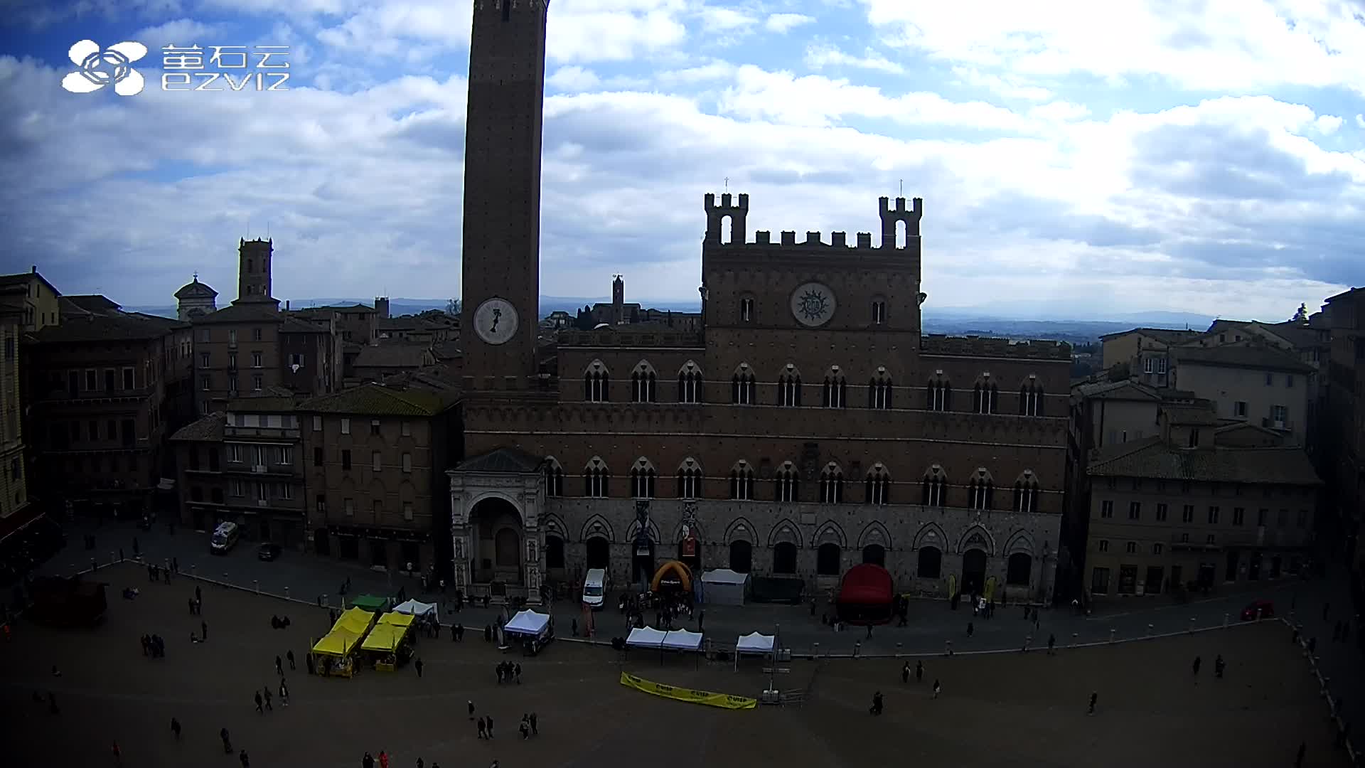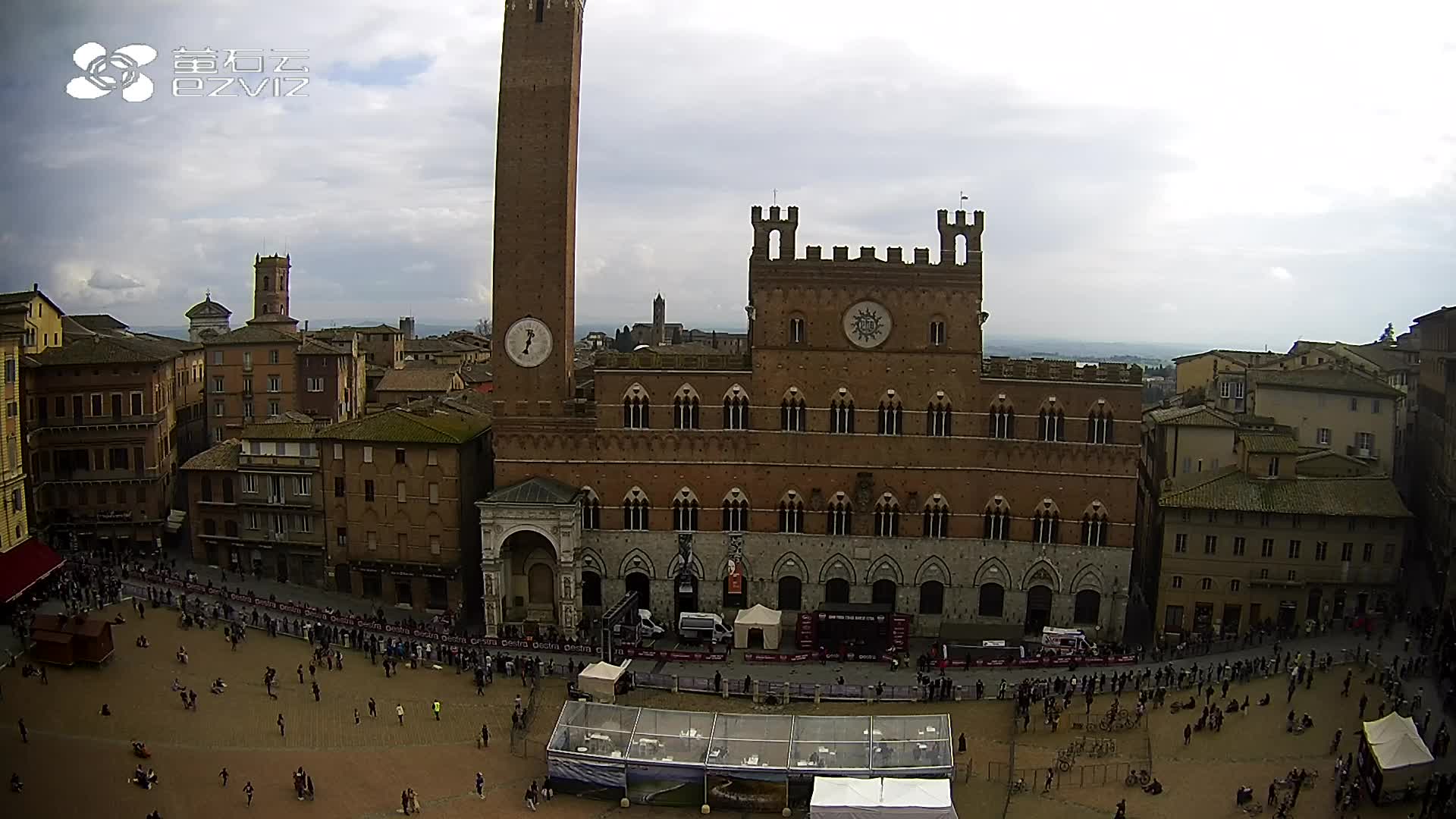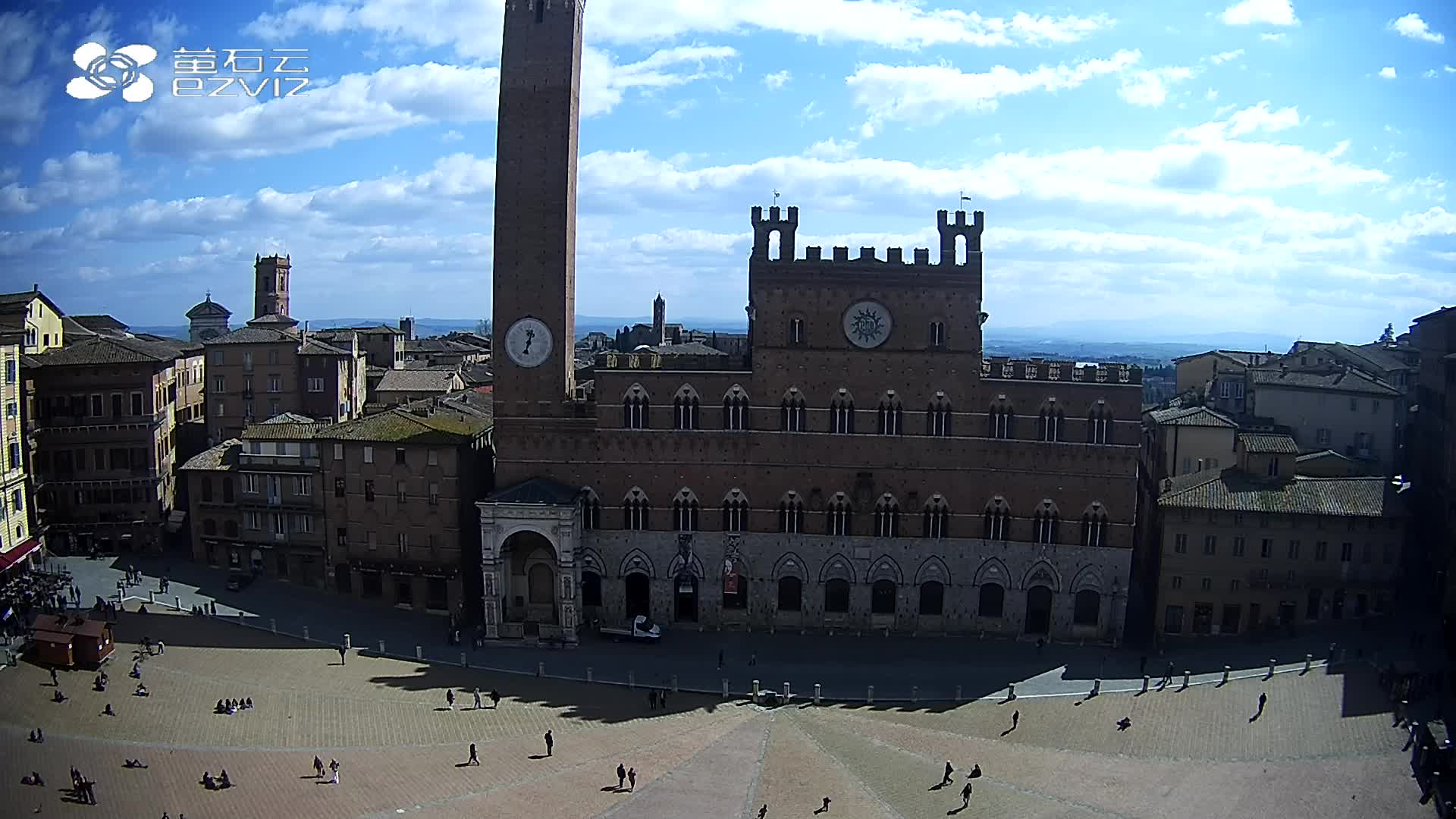 Siena, Italien - 37.9 km von Argiano: HD-Stream Piazza del Campo - Blick auf den zentralen Platz der Stadt, sehr bekannt wegen des Palio, der auf diesem Platz ausgetragen wird.