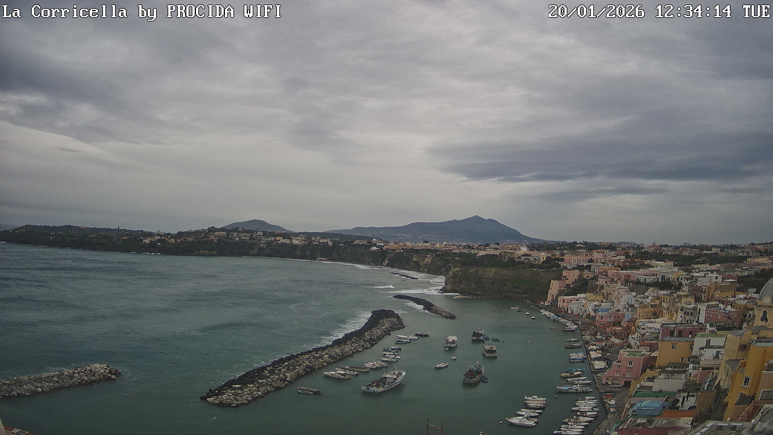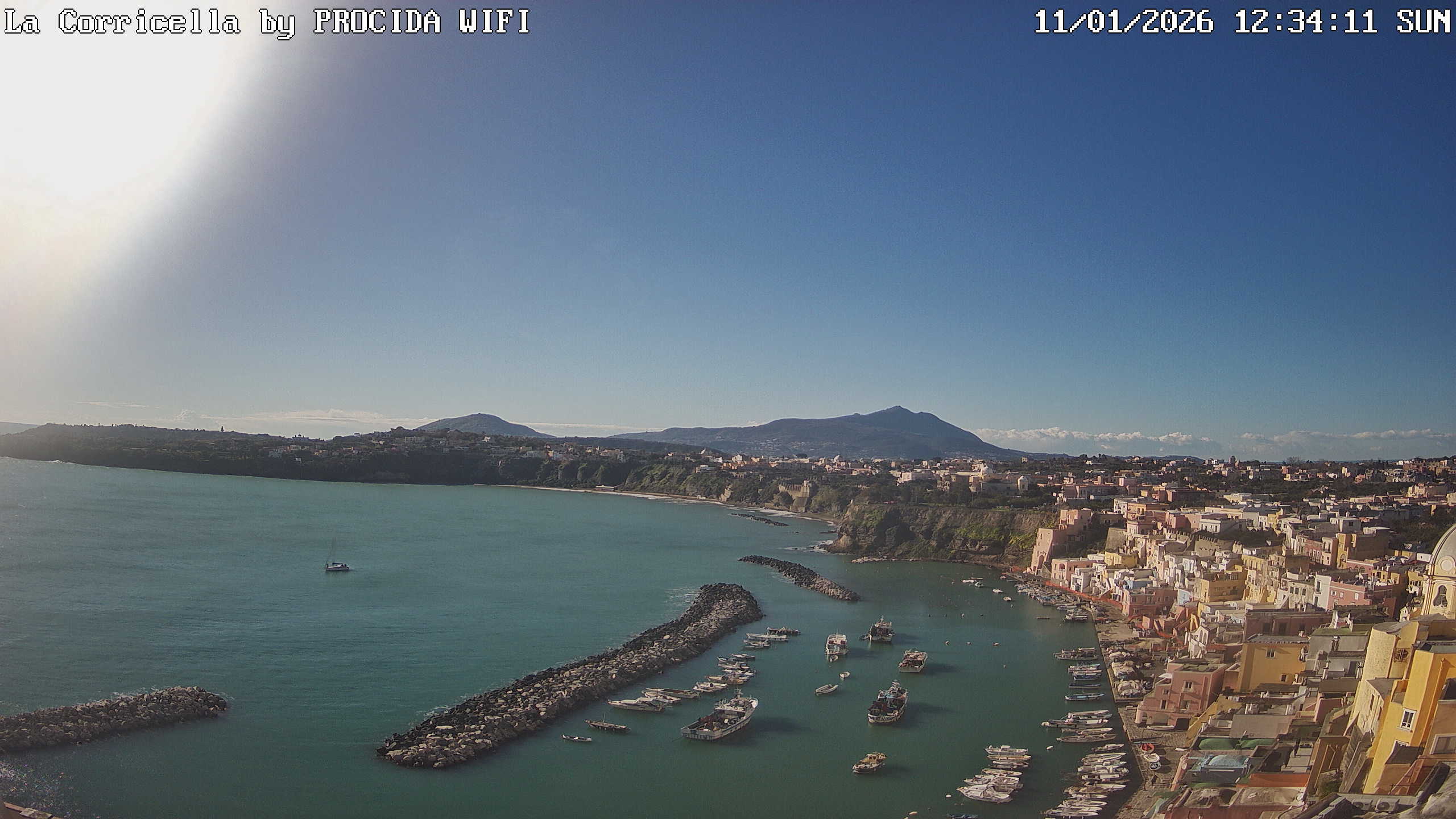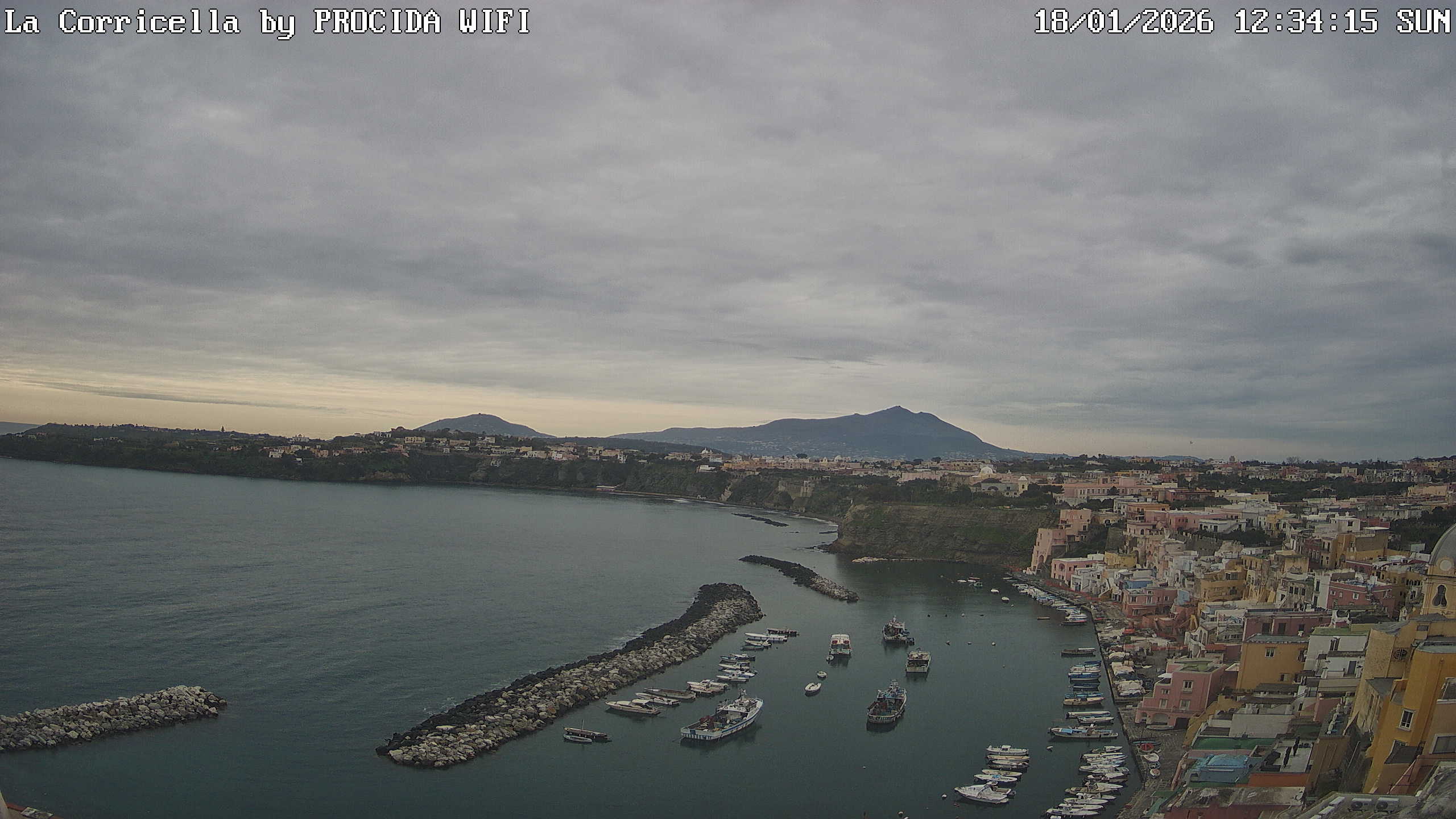 - Blick auf den Hafen von Marina Grande und Monte di Procida.