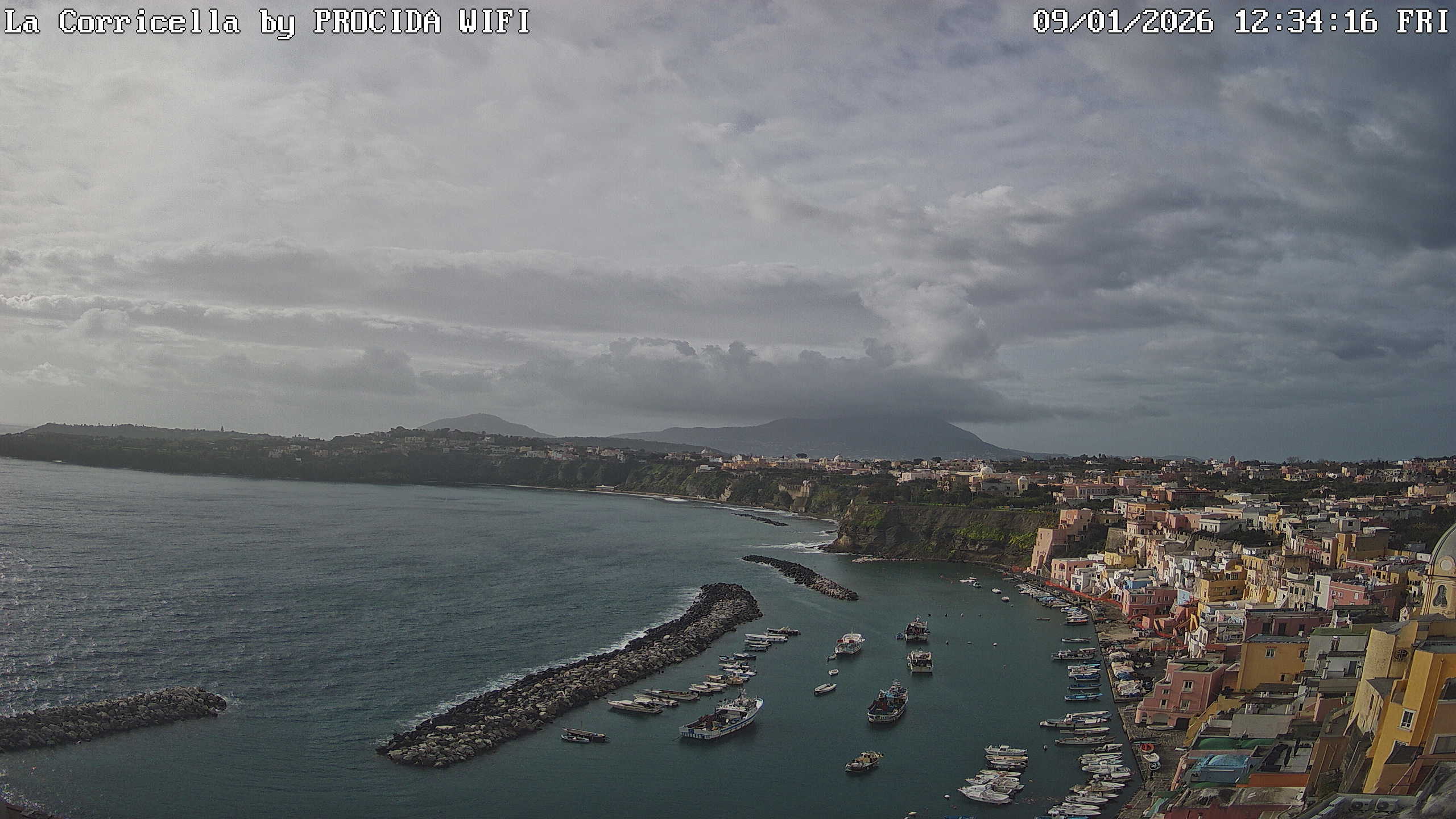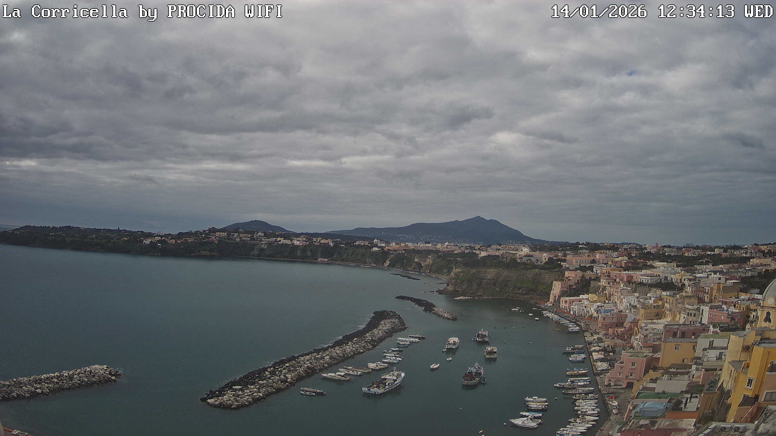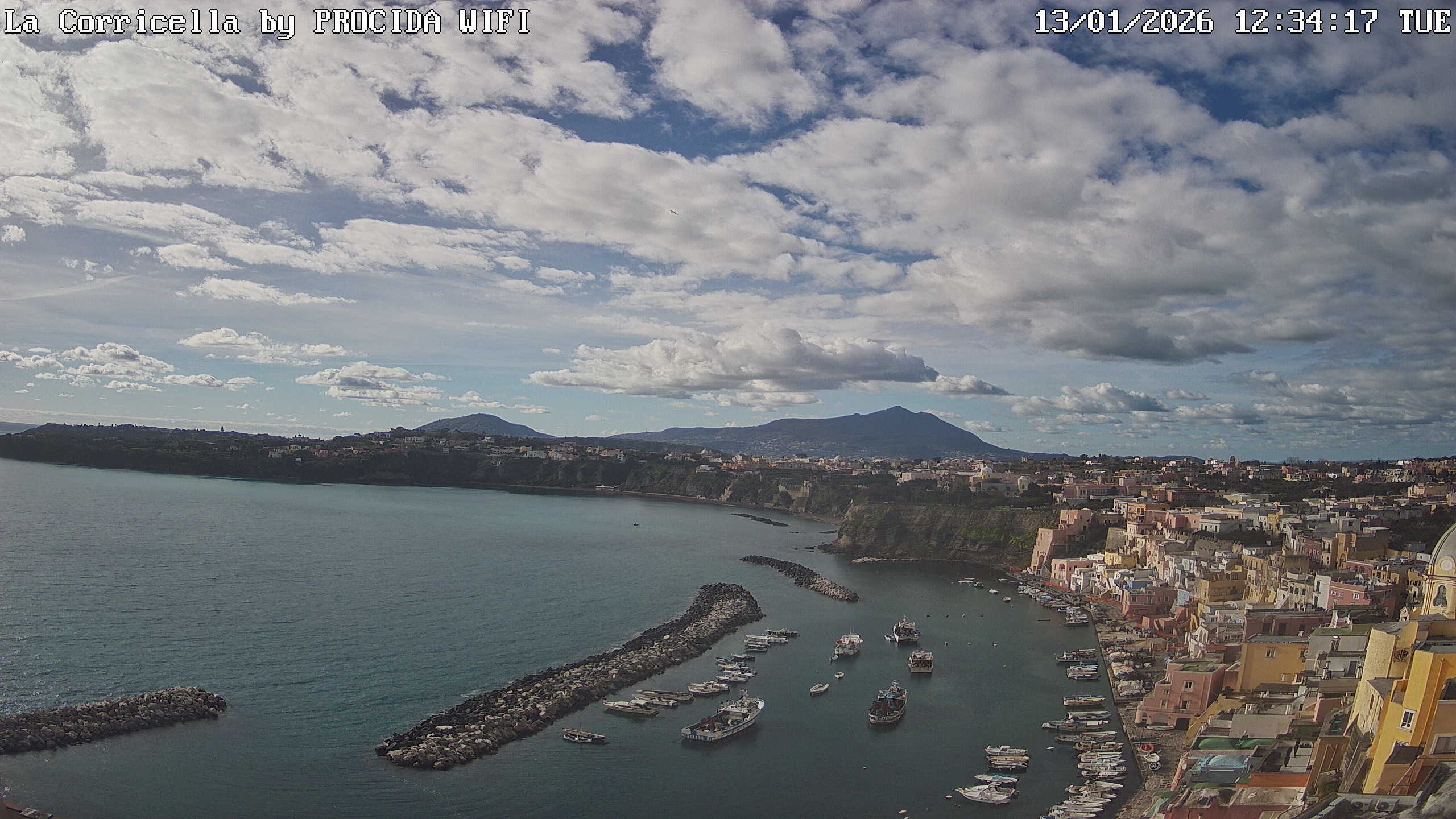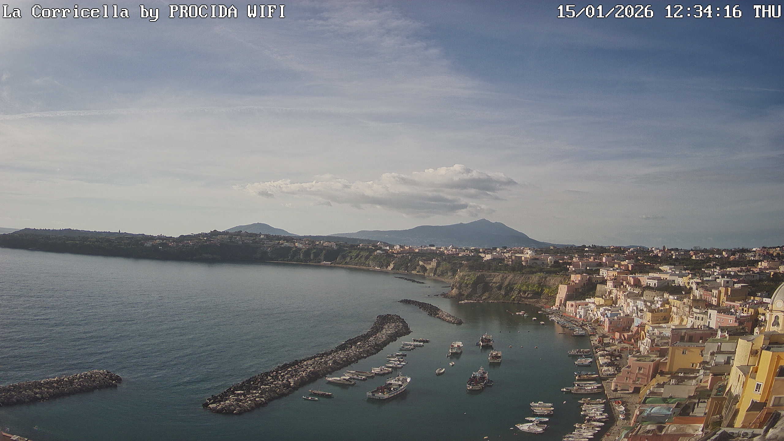 - Blick auf den Hafen von Marina Grande und Monte di Procida.