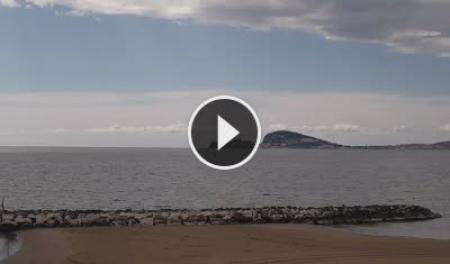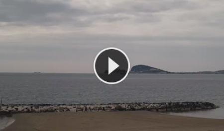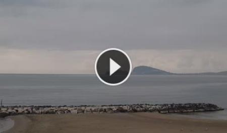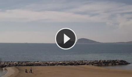 - Blick auf den Strand von Formia mit dem Mount Orlando im Hintergrund.