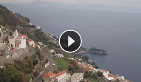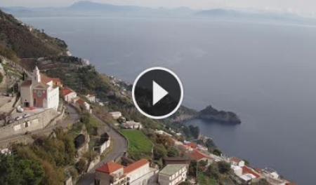 Praiano, Italien - 7.4 km von Atrani: Livestream Praiano - Divina Costiera - Entlang der wunderbaren Amalfiküste, ein Blick über Capri und die Faraglioni im Hintergrund.