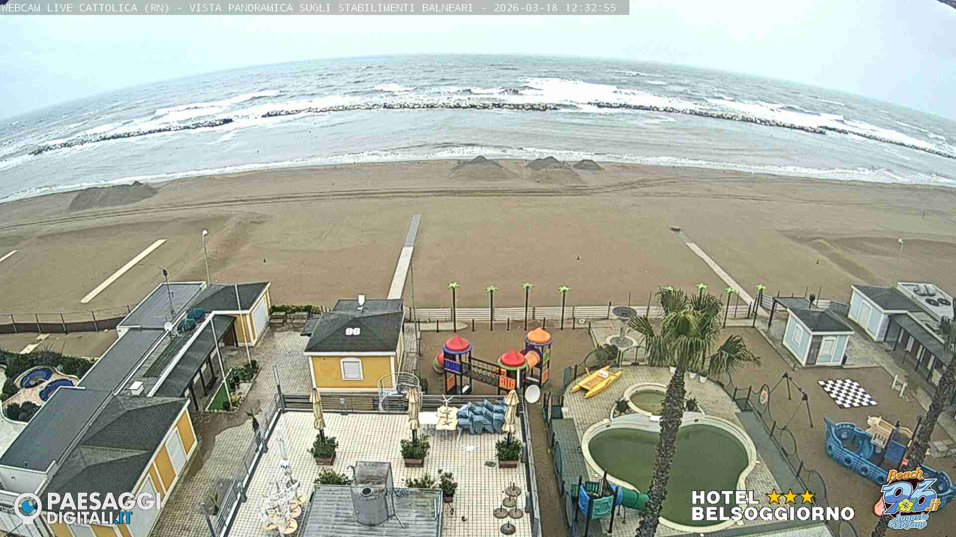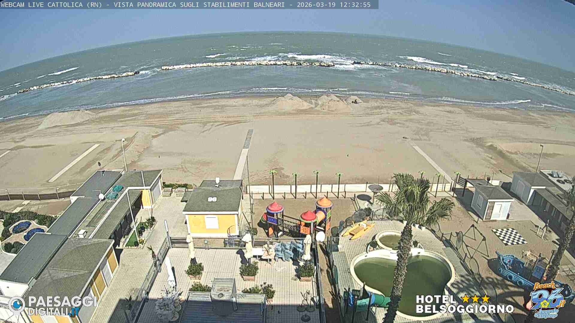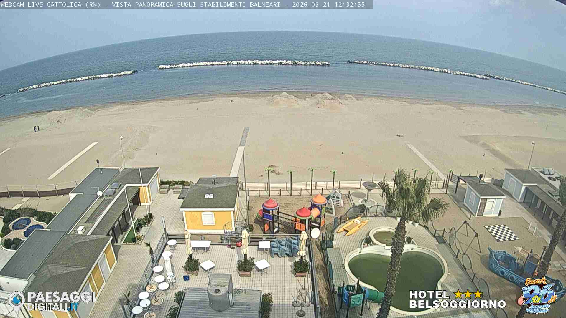 Cattolica, Italien - 28.6 km von Auditore: Strand von Cattolica - Rimini - Blick auf den Strand von Cattolica, Misano Adriatico und Riccione im Hintergrund.
