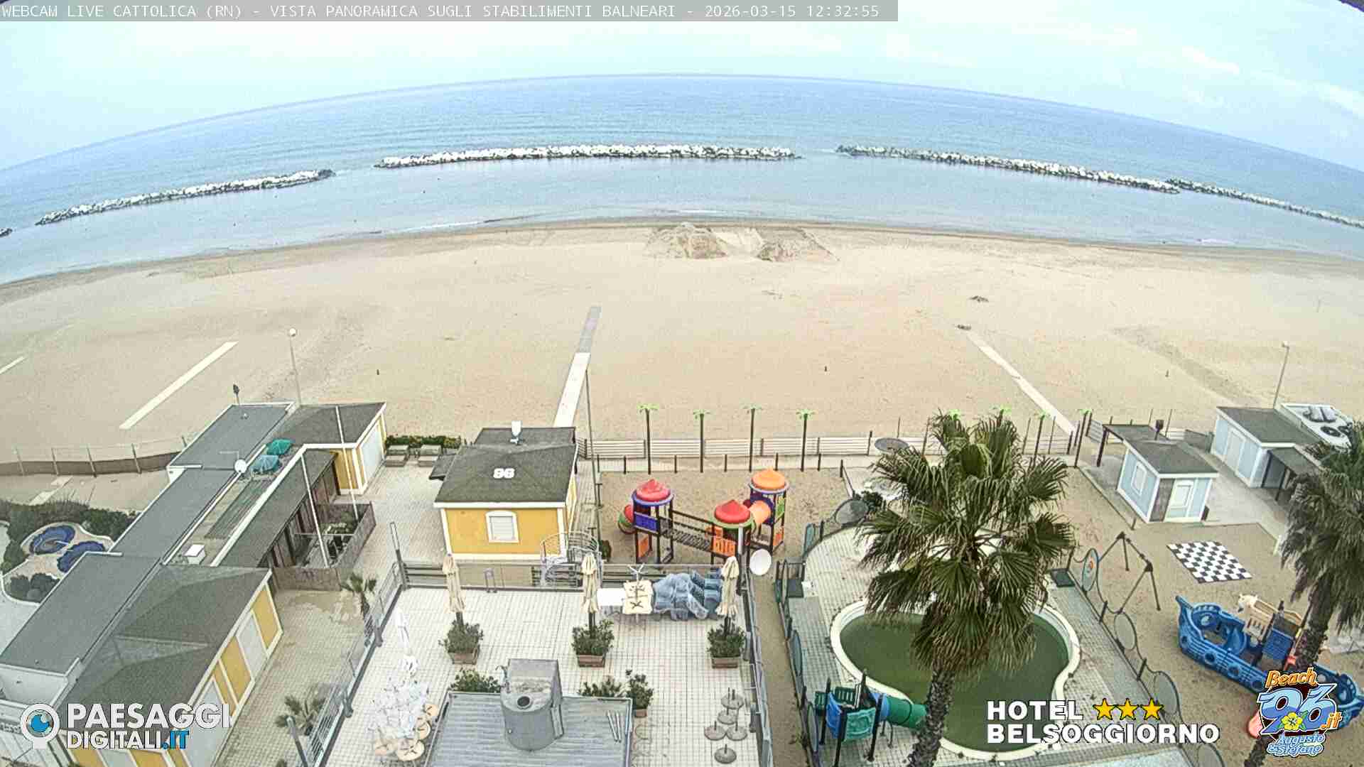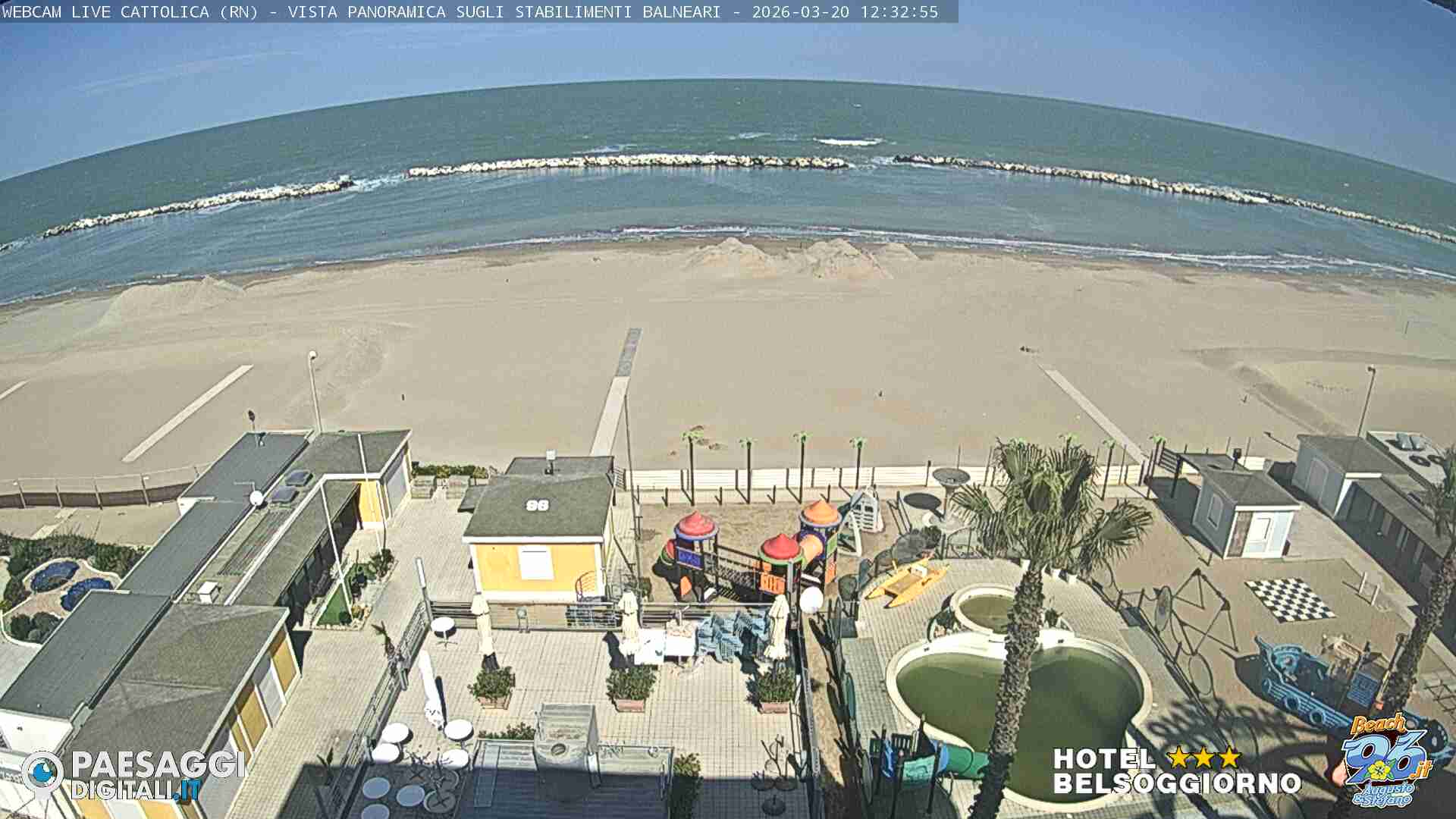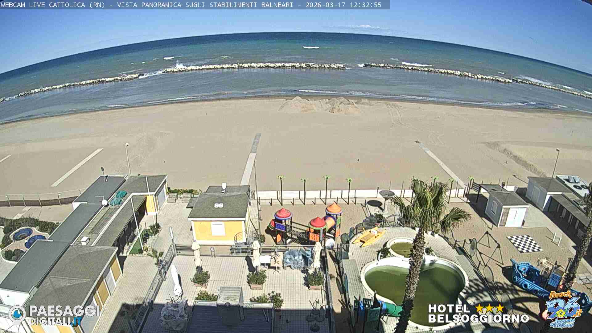 Cattolica, Italien - 28.6 km von Auditore: Strand von Cattolica - Rimini - Blick auf den Strand von Cattolica, Misano Adriatico und Riccione im Hintergrund.