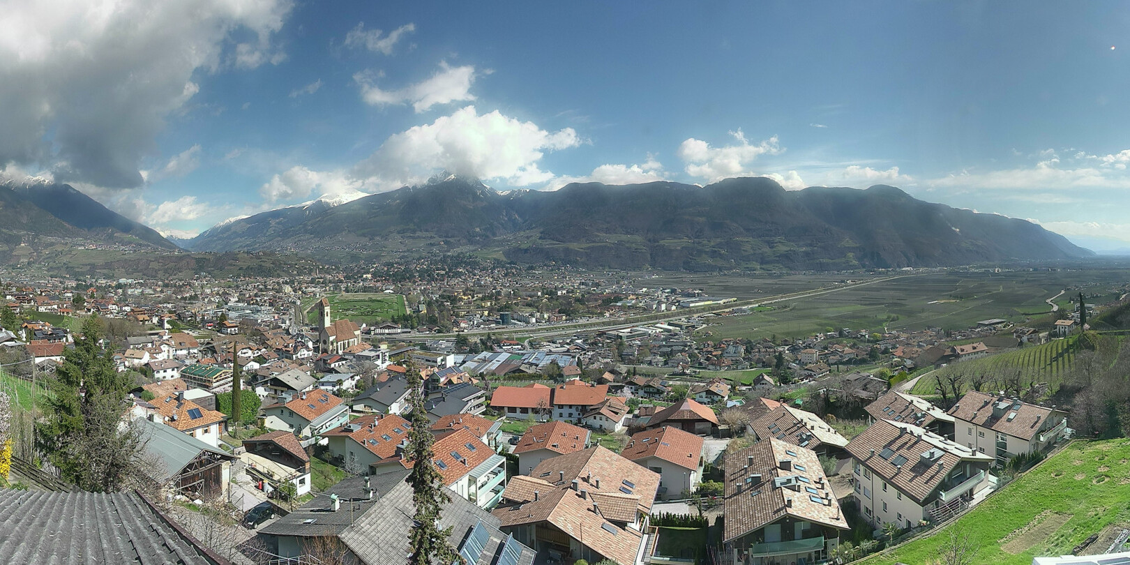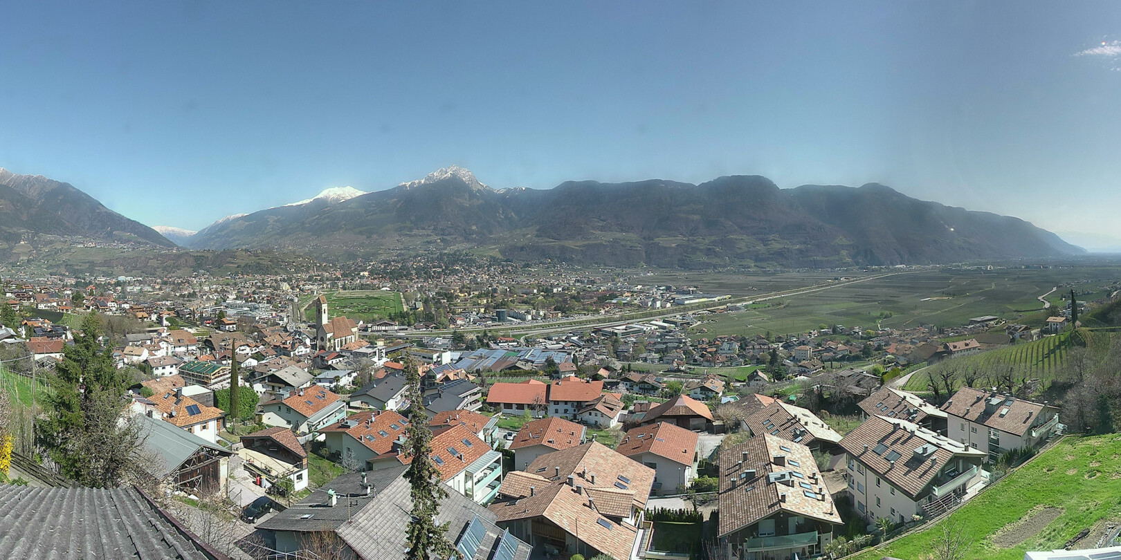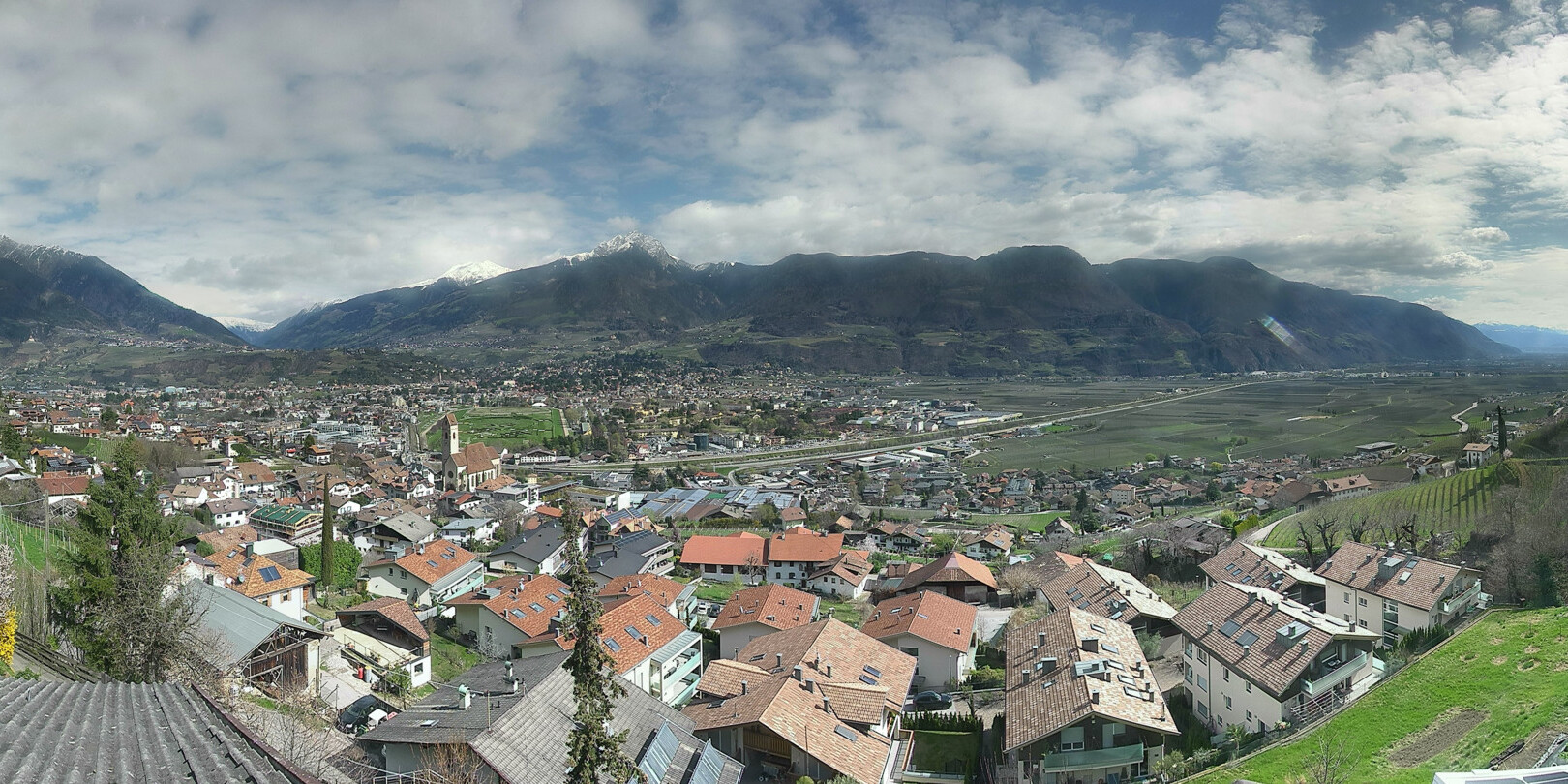 - Die Webcam befindet sich unterhalb des Marlinger Waalweges und zeigt die idyllische Ortschaft Marling und im Hintergrund die Kurstadt Meran.