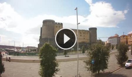 Naples, Italien - 14.7 km von Aversa: Piazza Municipio - Blick auf Piazza Municipio und Maschio Angioino, mit Castel Sant'Elmo und Museo San Martino im Hintergrund.