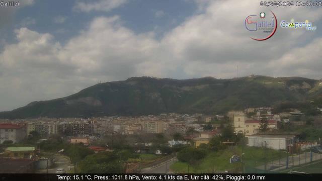 Naples, Italien - 14.7 km von Aversa: Stadtpanorama - Ein sehr schöner Panoramablick über Neapel vom Vomero-Hügel mit dem Vesuv und dem Castel dell'Ovo im Hintergrund