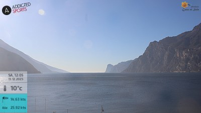 - Die Webcam steht in Torbole am Gardasee und blickt Richtung Süd.
