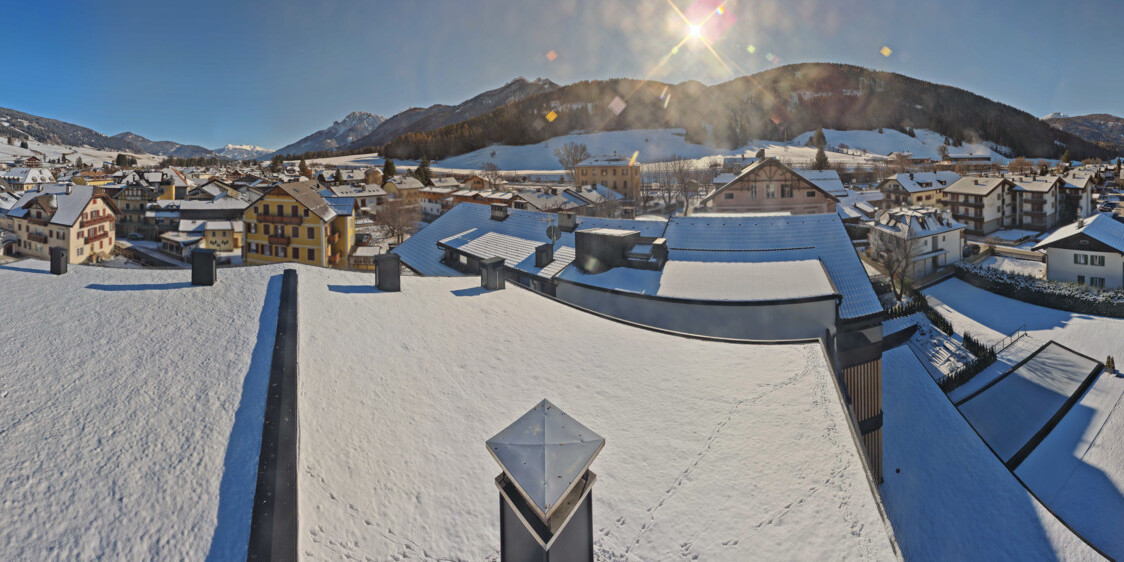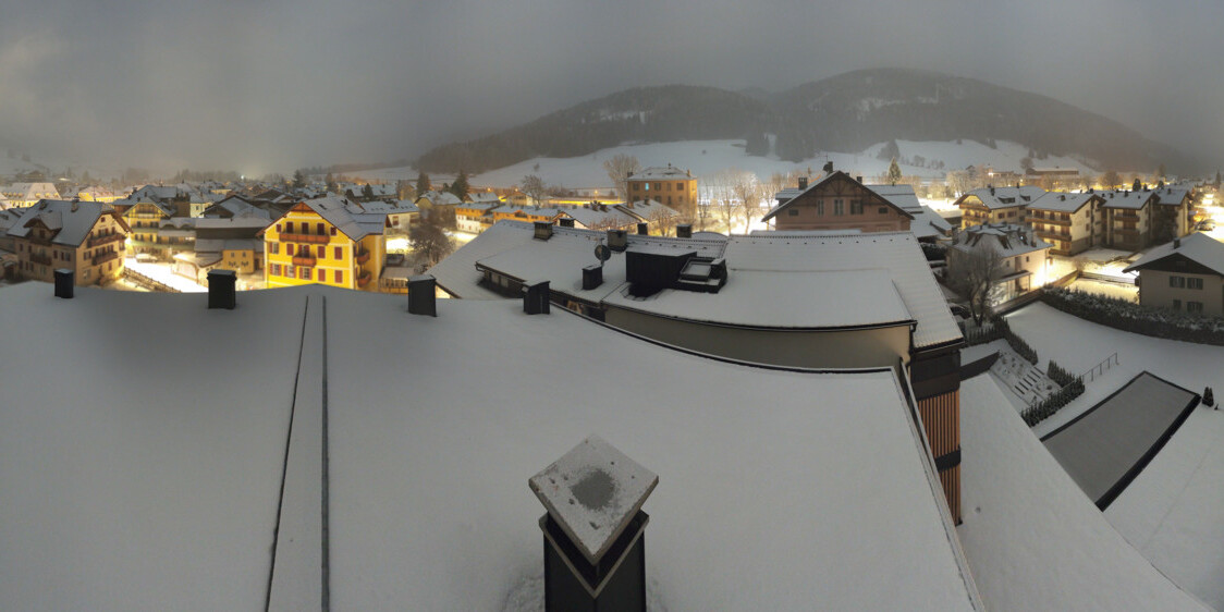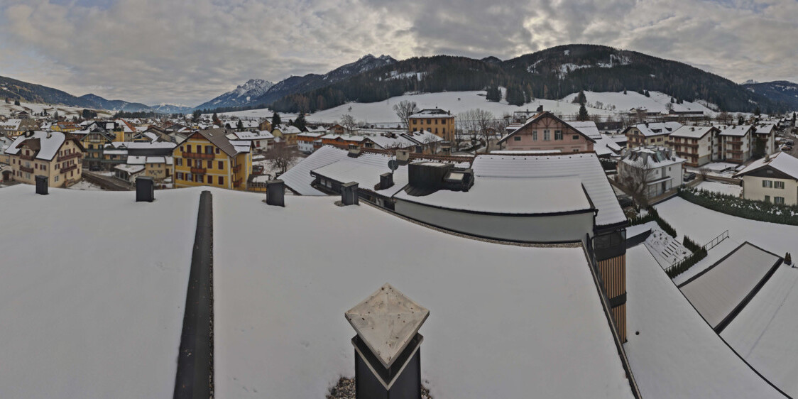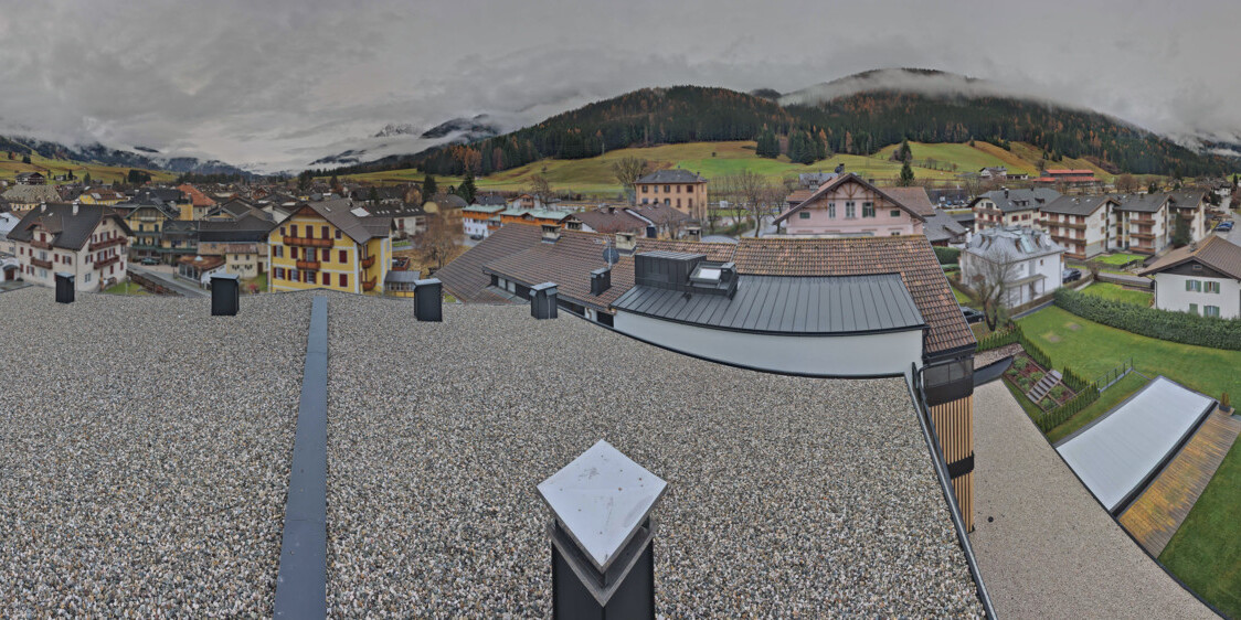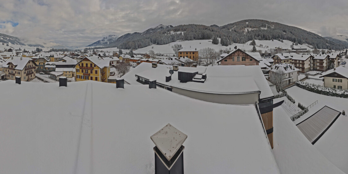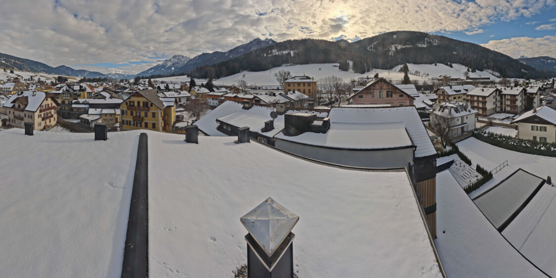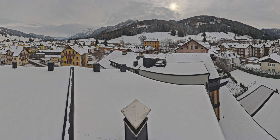 Toblach (Dolomites), Italien - 3.4 km von Belcolle: Apparthotel Germania - Die Webcam befindet sich in Toblach am Apparthotel Germania in der Dolomitenregion Drei Zinnen. Mit der Livecam erhalten Sie einen tollen Einblick auf die Ortschaft Toblach (bekannt auch als das Tor zu den Dolomiten) und einen Ausblick auf den 'schlafenden Riesen'. Übrigens gehören auch diese Berge zum UNESCO Weltnaturerbe Dolomiten.