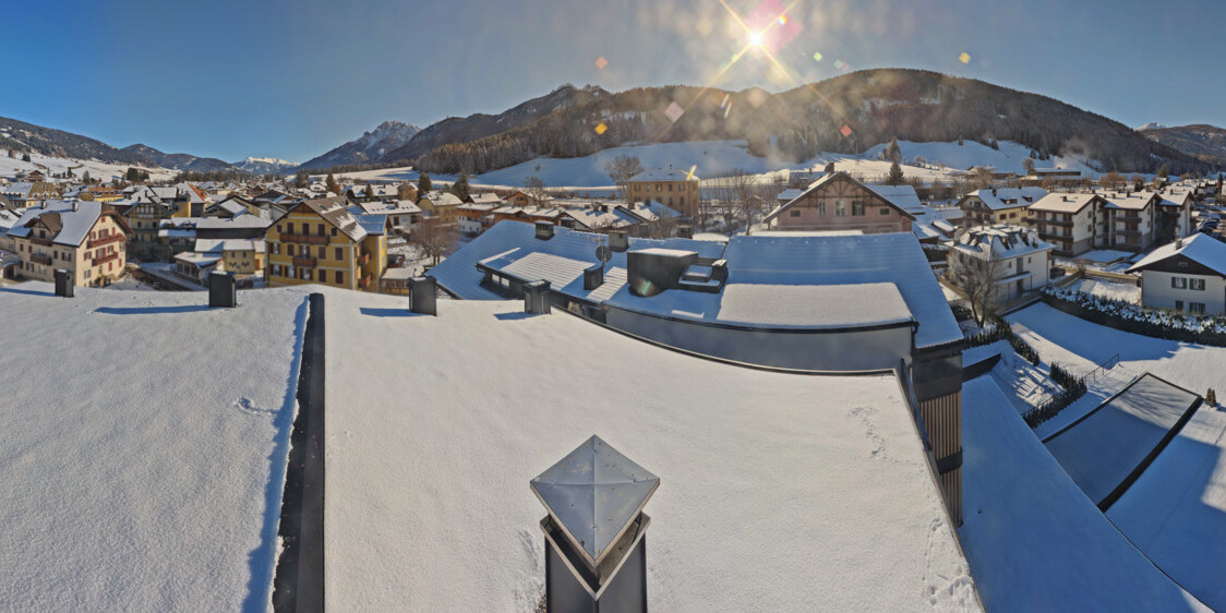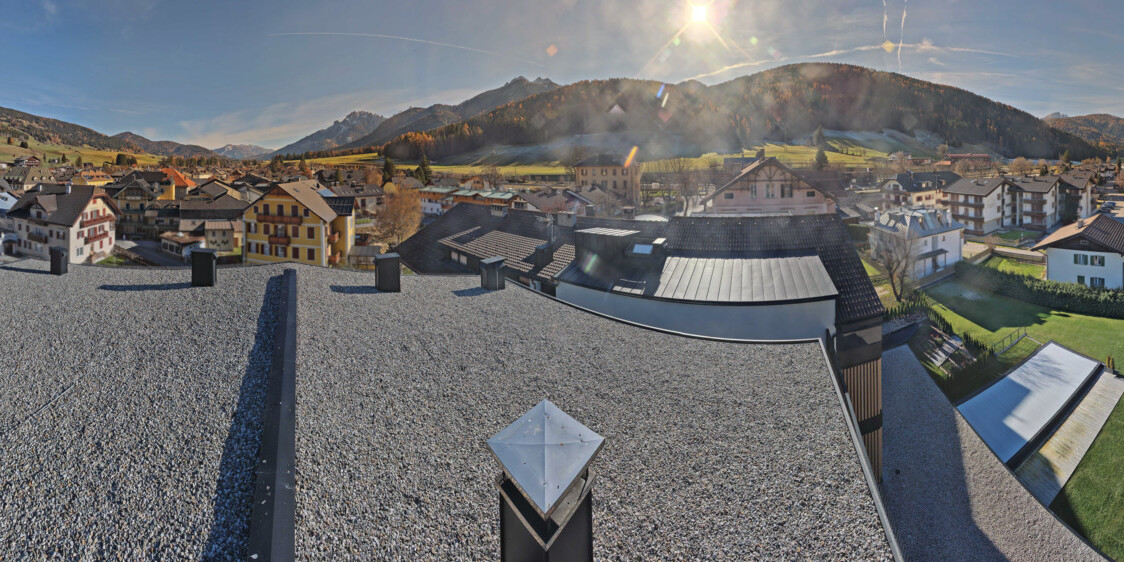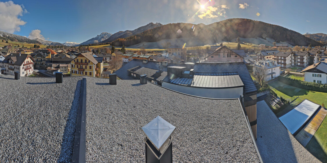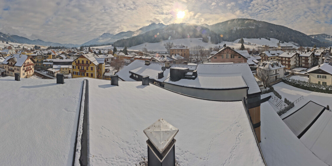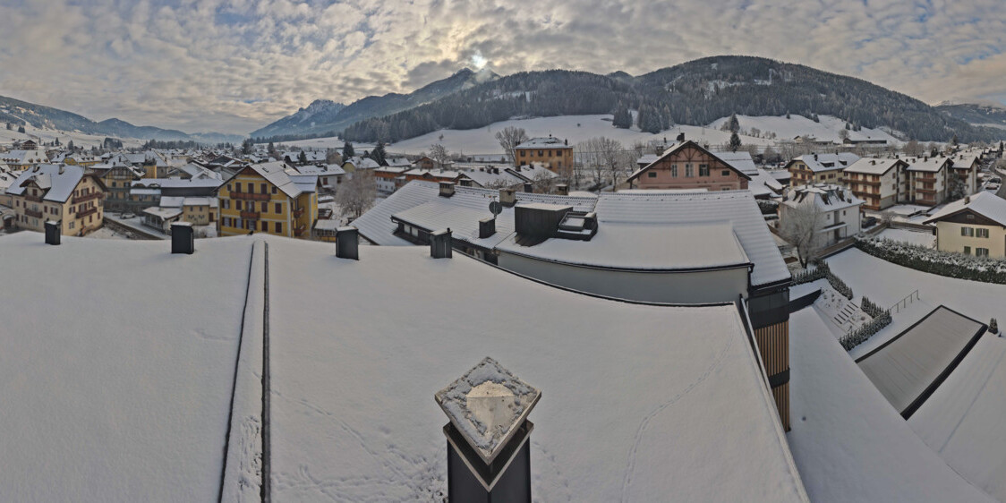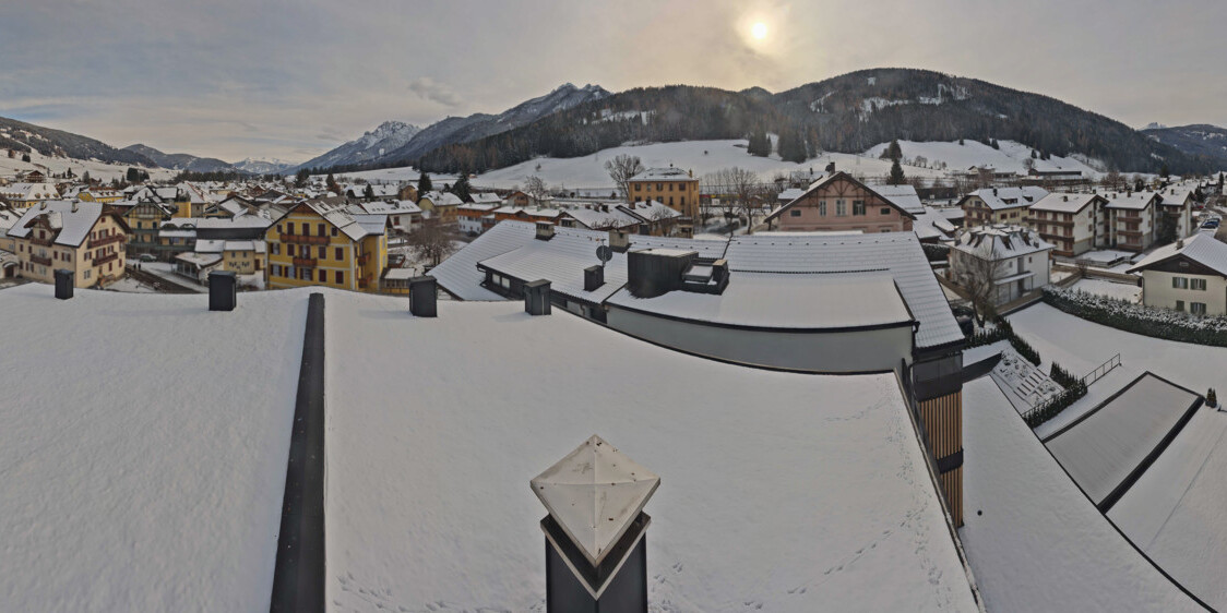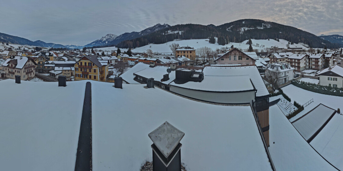 Toblach (Dolomites), Italien - 3.4 km von Belcolle: Apparthotel Germania - Die Webcam befindet sich in Toblach am Apparthotel Germania in der Dolomitenregion Drei Zinnen. Mit der Livecam erhalten Sie einen tollen Einblick auf die Ortschaft Toblach (bekannt auch als das Tor zu den Dolomiten) und einen Ausblick auf den 'schlafenden Riesen'. Übrigens gehören auch diese Berge zum UNESCO Weltnaturerbe Dolomiten.