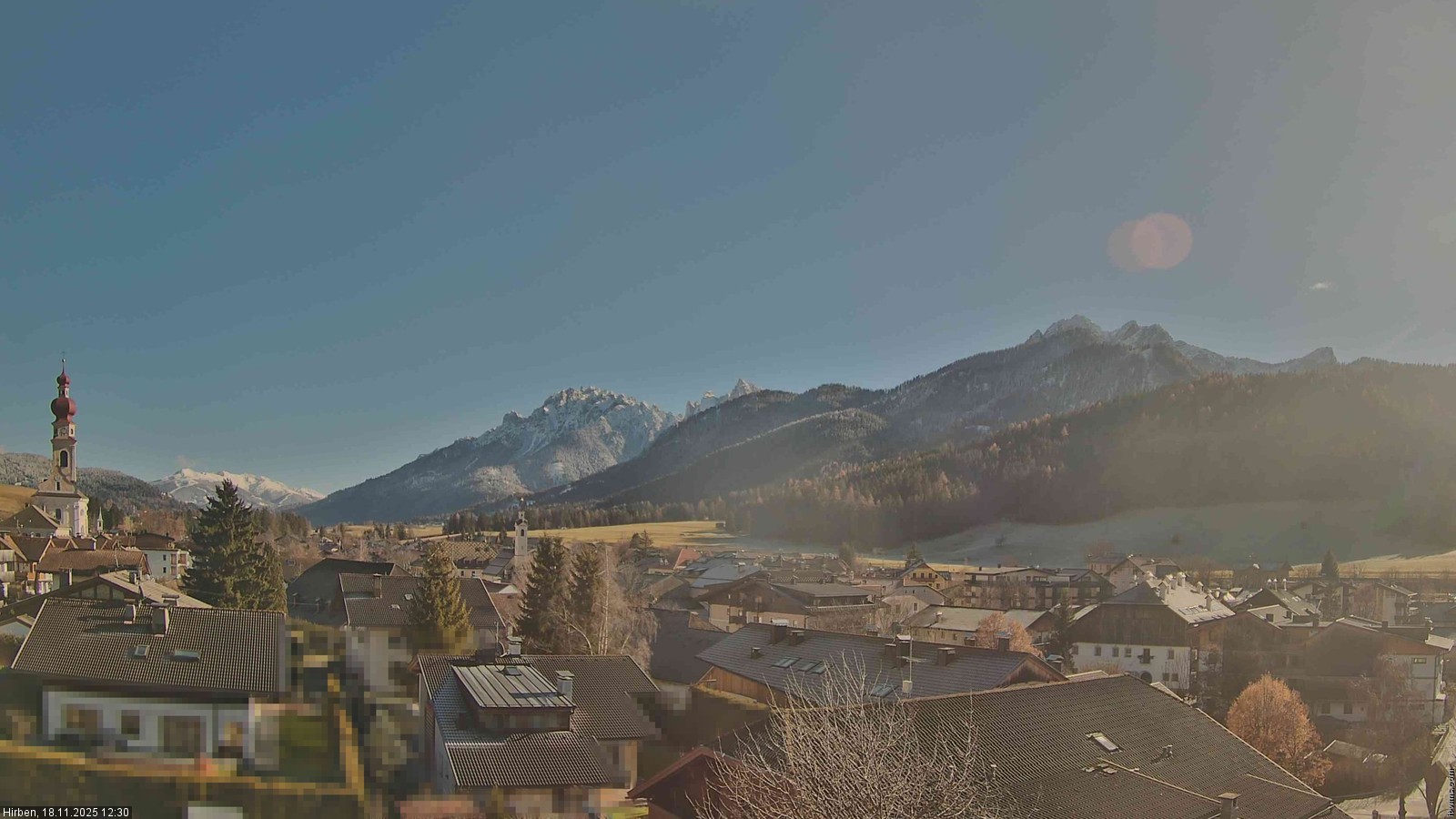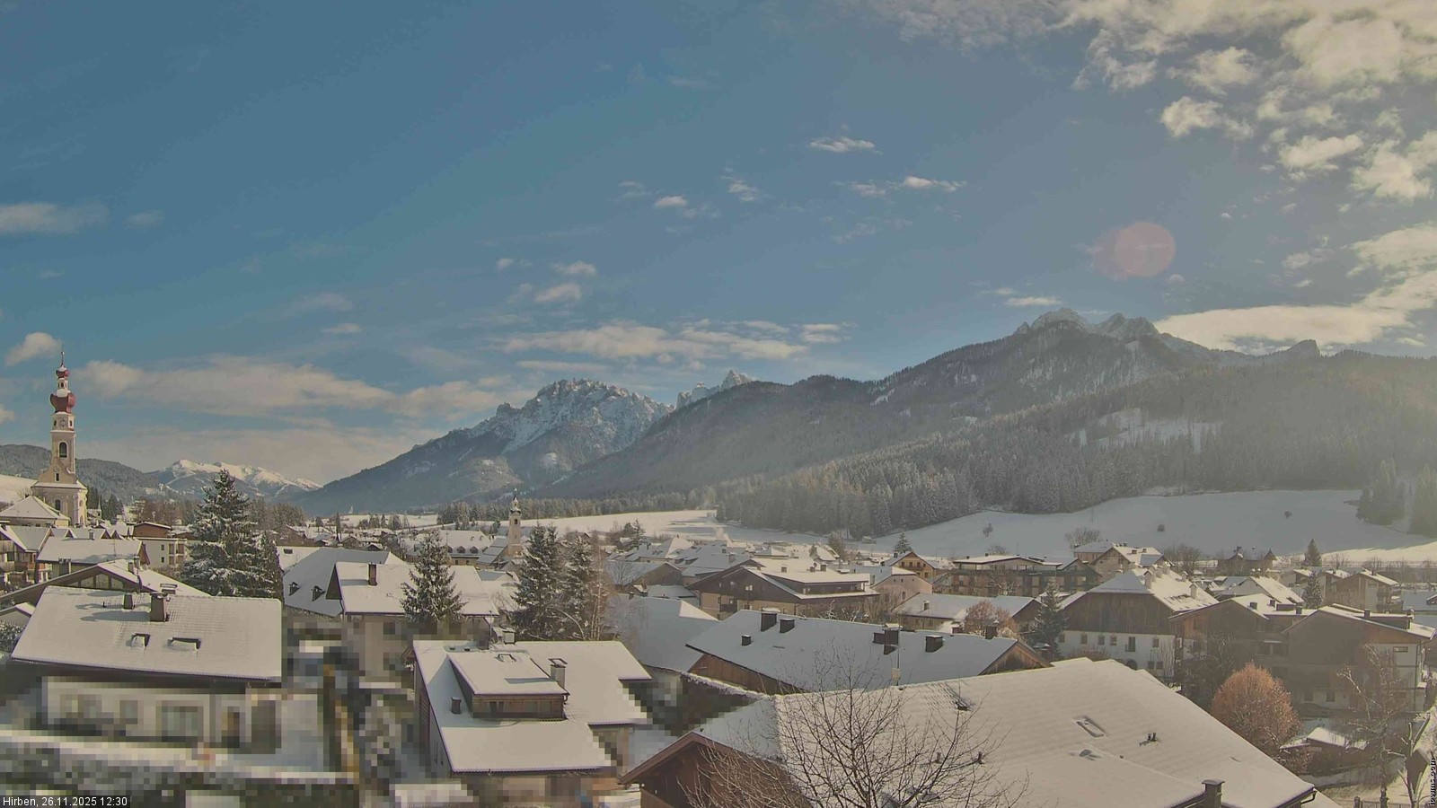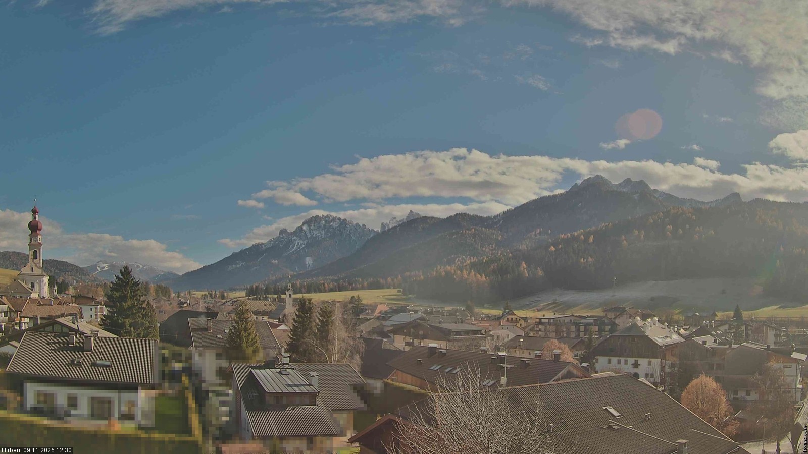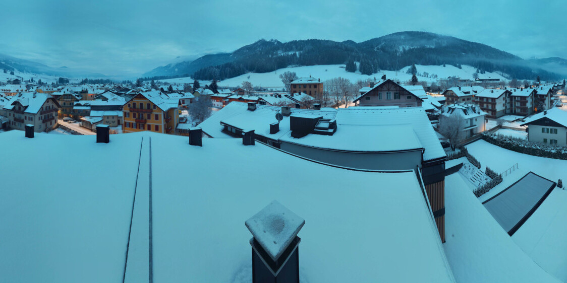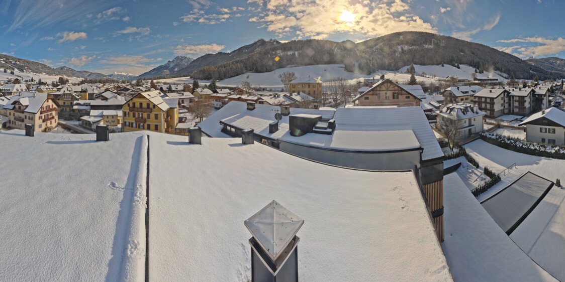 Toblach (Dolomites), Italien - 3.4 km von Belcolle: Apparthotel Germania - Die Webcam befindet sich in Toblach am Apparthotel Germania in der Dolomitenregion Drei Zinnen. Mit der Livecam erhalten Sie einen tollen Einblick auf die Ortschaft Toblach (bekannt auch als das Tor zu den Dolomiten) und einen Ausblick auf den 'schlafenden Riesen'. Übrigens gehören auch diese Berge zum UNESCO Weltnaturerbe Dolomiten.