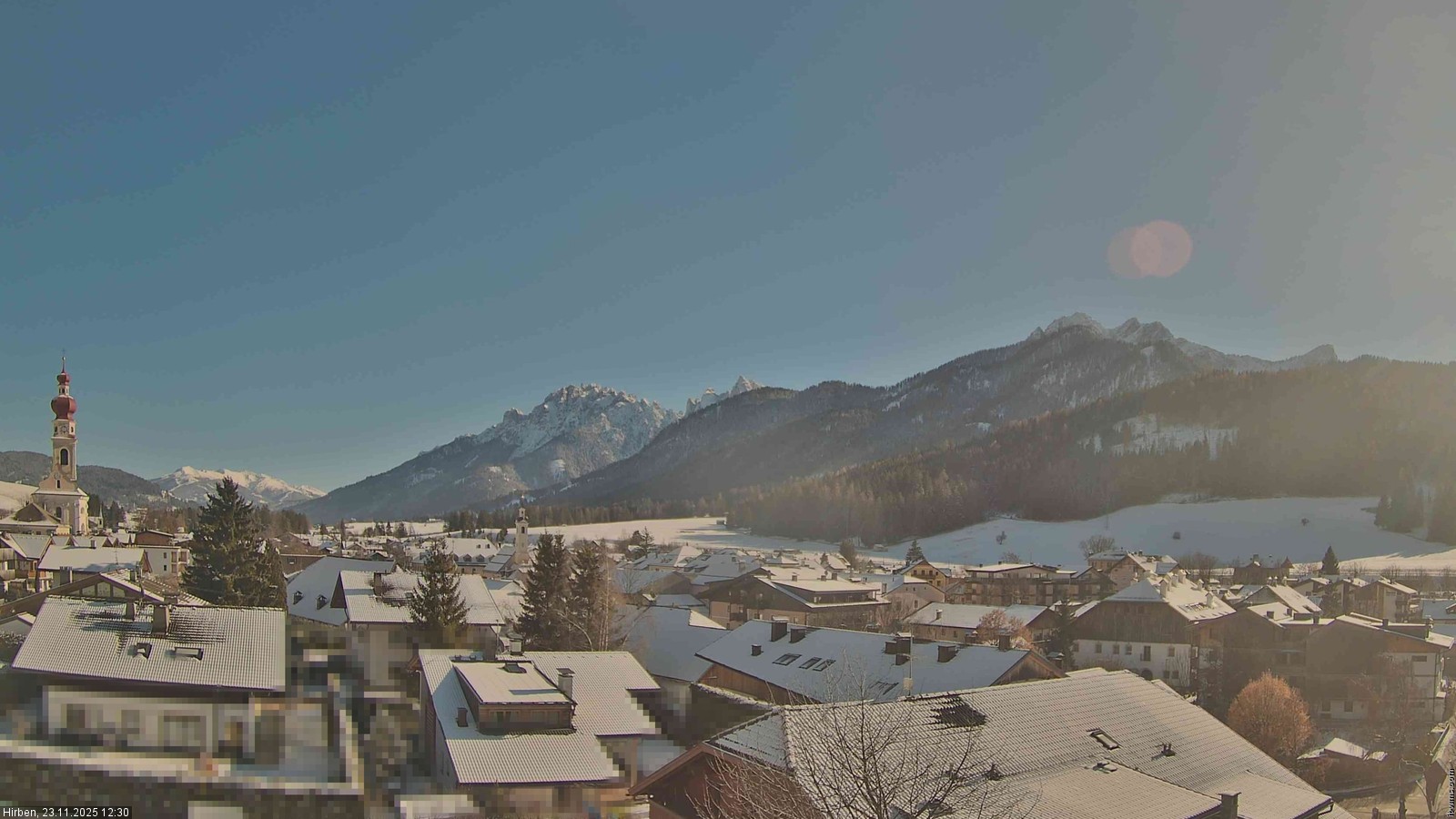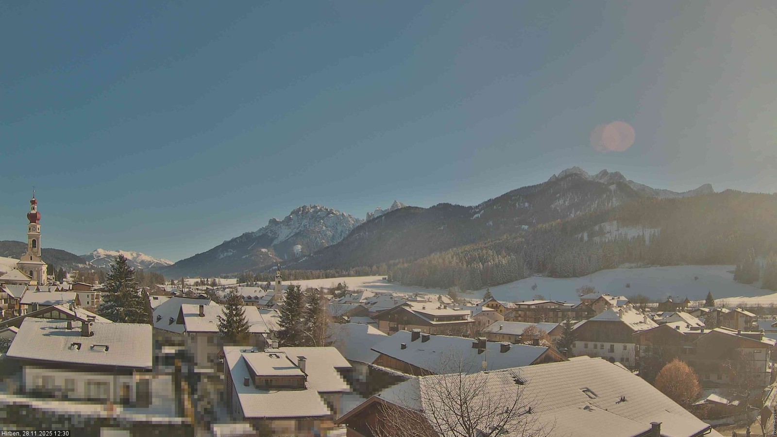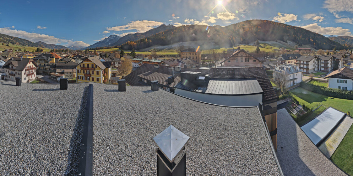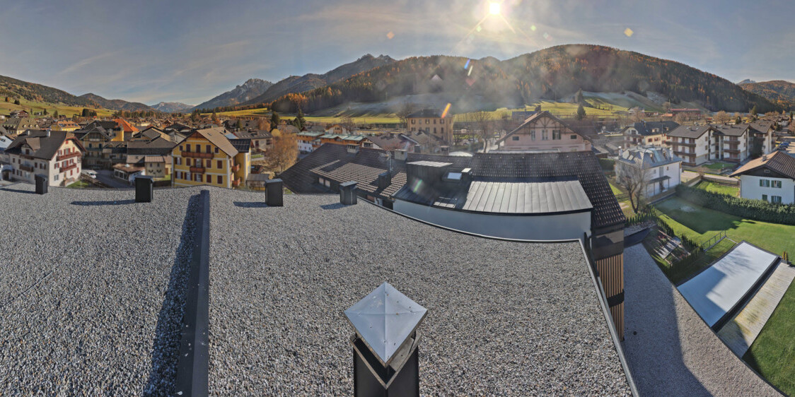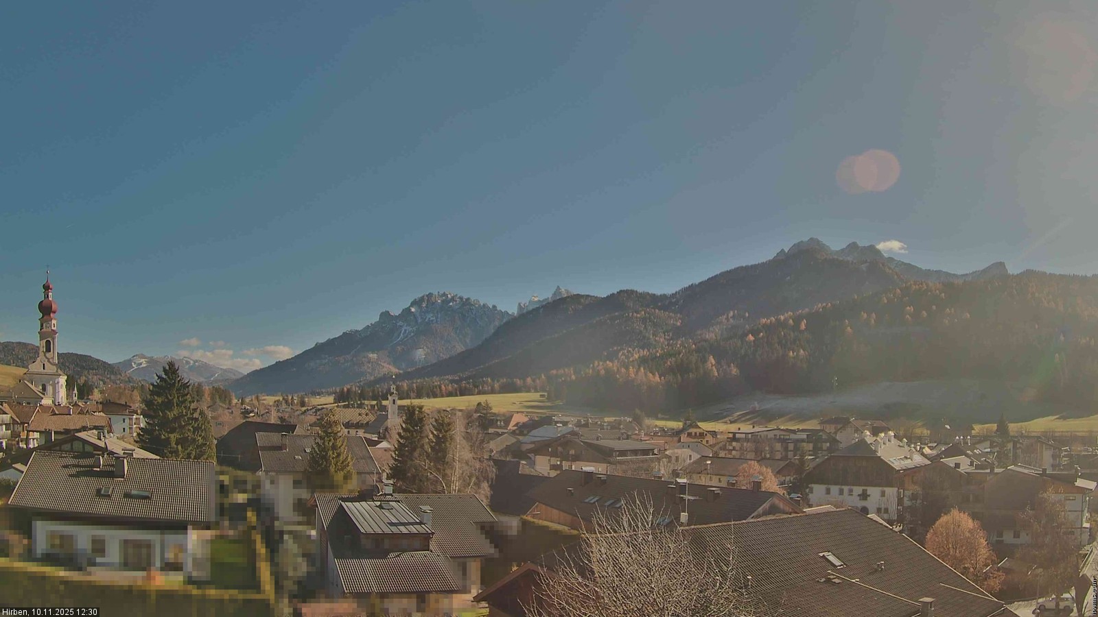 Toblach (Dolomites), Italien - 3.4 km von Belcolle: Apparthotel Germania - Die Webcam befindet sich in Toblach am Apparthotel Germania in der Dolomitenregion Drei Zinnen. Mit der Livecam erhalten Sie einen tollen Einblick auf die Ortschaft Toblach (bekannt auch als das Tor zu den Dolomiten) und einen Ausblick auf den 'schlafenden Riesen'. Übrigens gehören auch diese Berge zum UNESCO Weltnaturerbe Dolomiten.