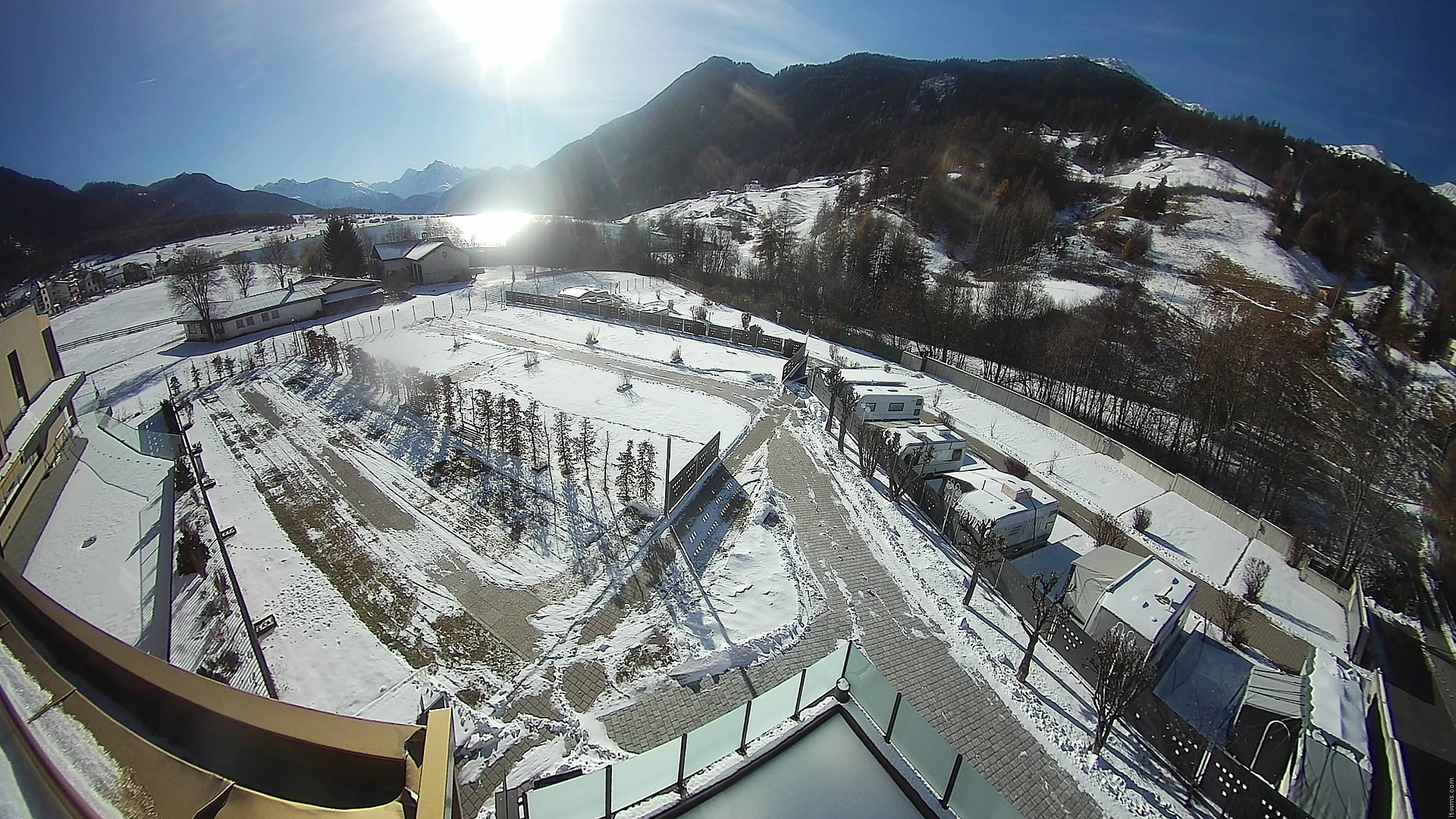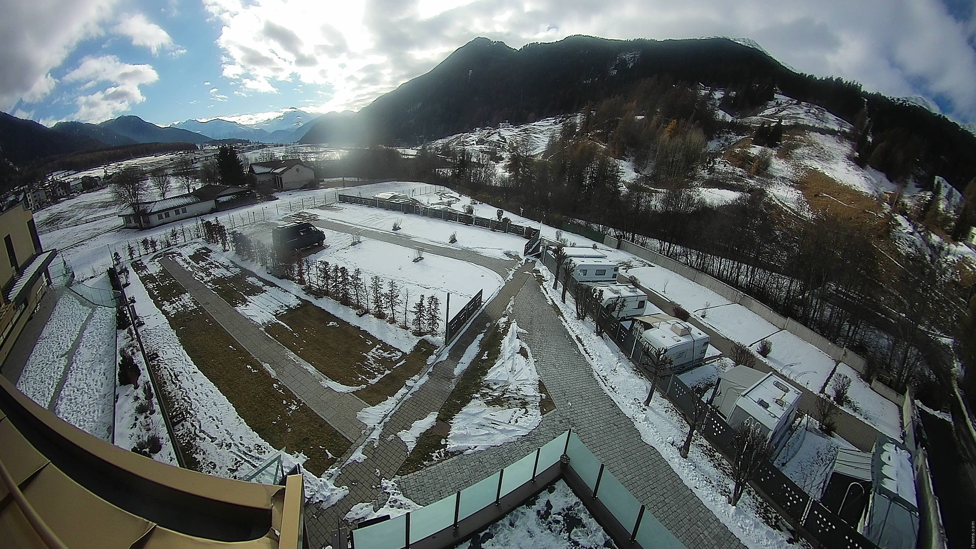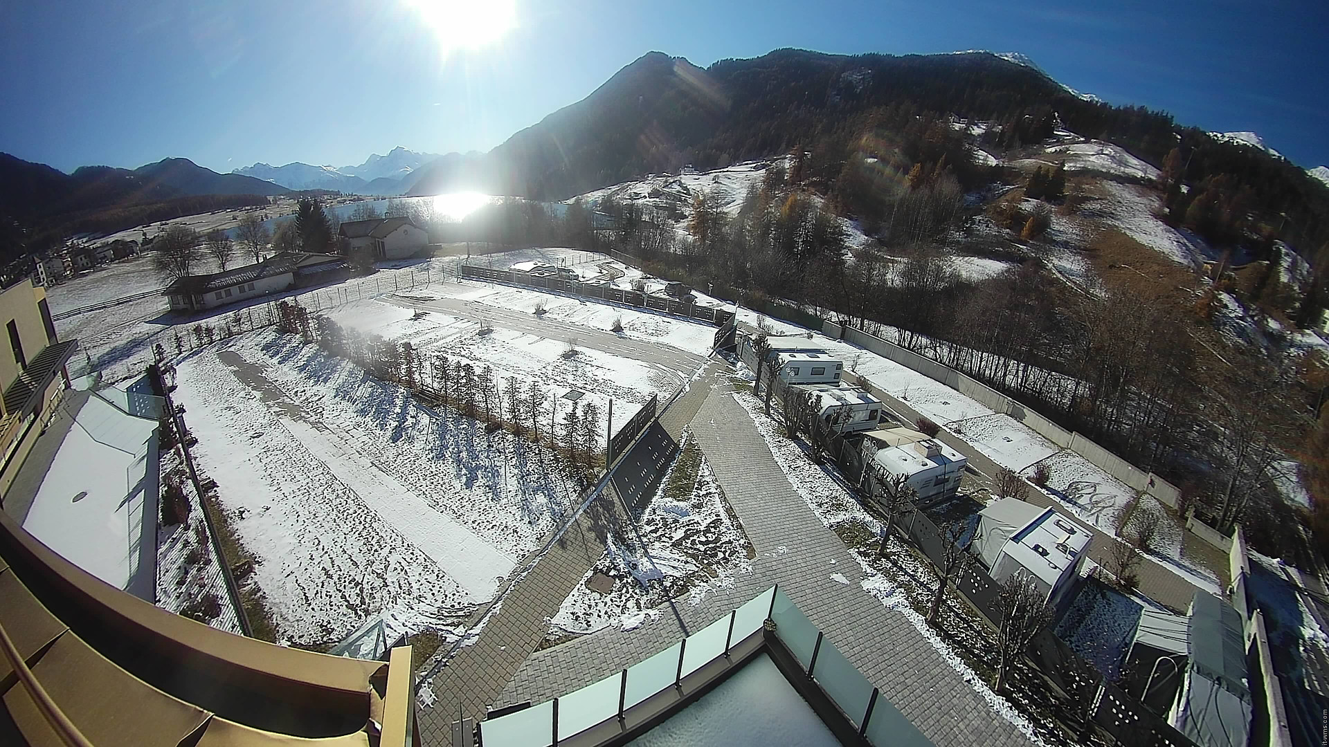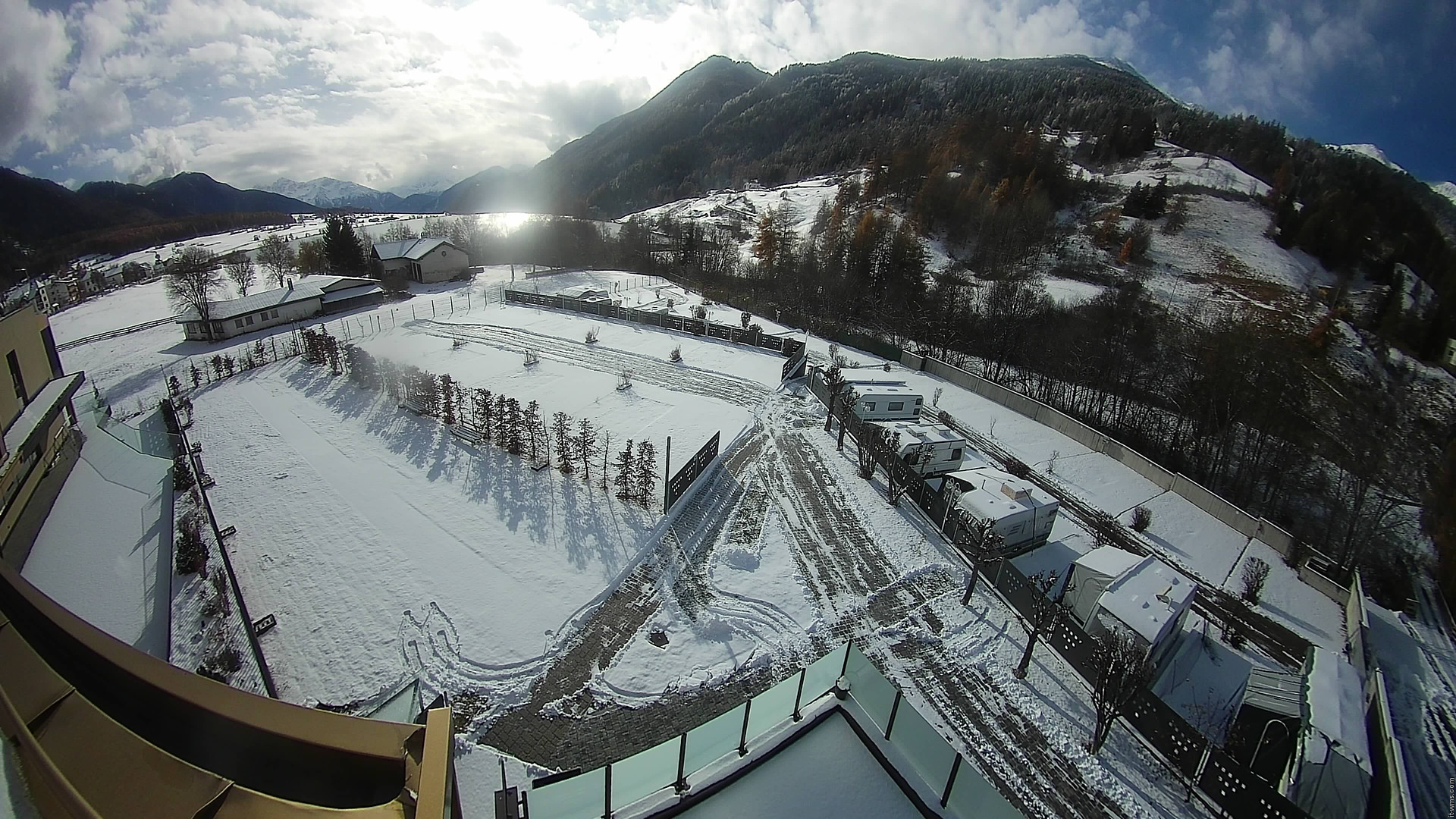 St. Valentin auf der Haide, Italien - 7.2 km von Burgeis: Panoramakamera Schöneben - In Schöneben mit seiner märchenhaften Kulisse rund um die 'Rojener Sonnenuhr' und den Reschensee finden die Wintersportler ein breites Angebot an Aktivitäten und Freizeitmöglichkeiten. Die herrlichen Pisten mit dem großen Snowpark und der einzigartige Funslope garantieren Spass und Freude beim skifahren. Im Sommer kommen Wanderer und Mountainbiker mit den neuen 3 Länder Enduro Trails auf Ihre Kosten und genießen die Erholung pur.
