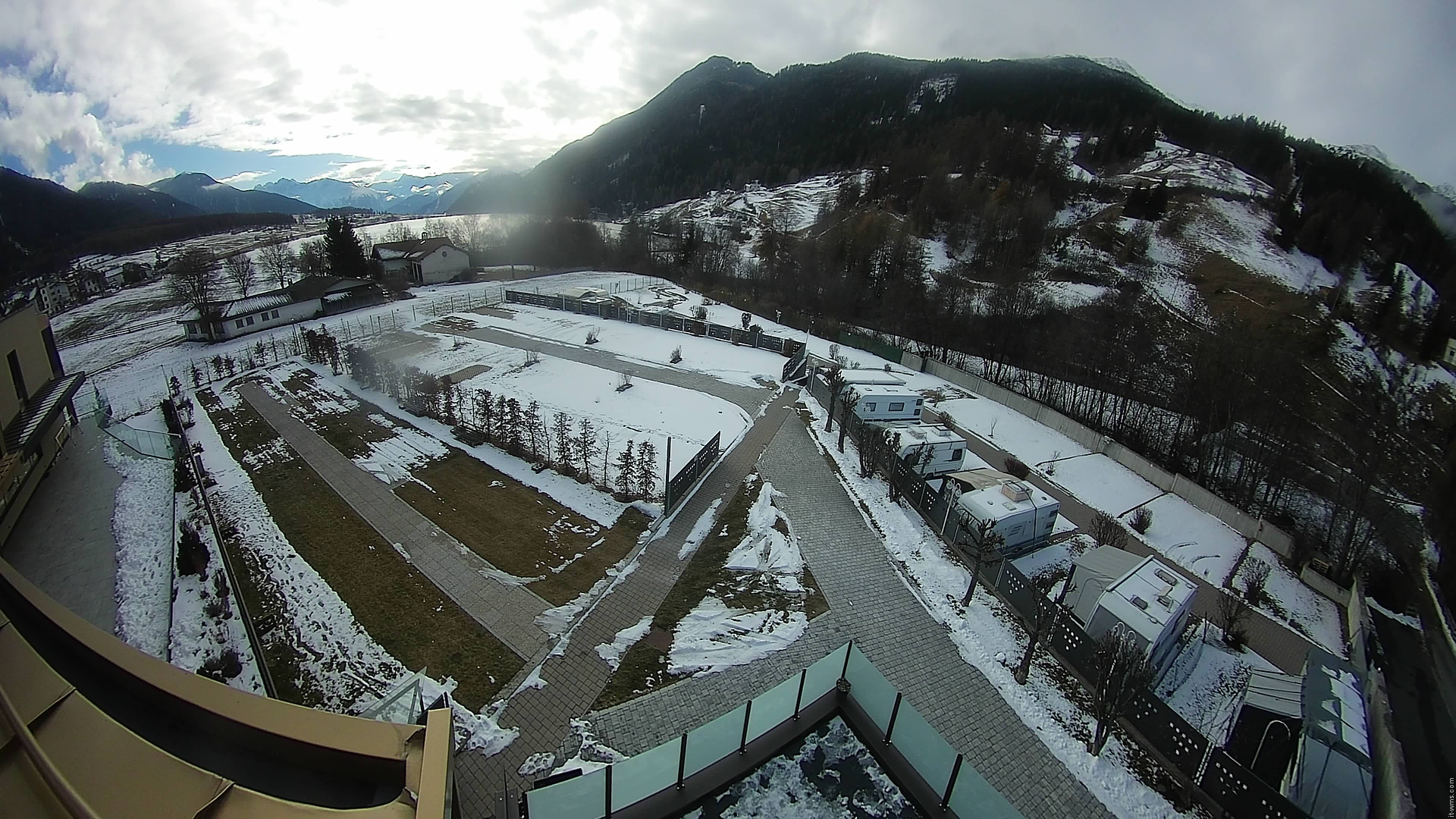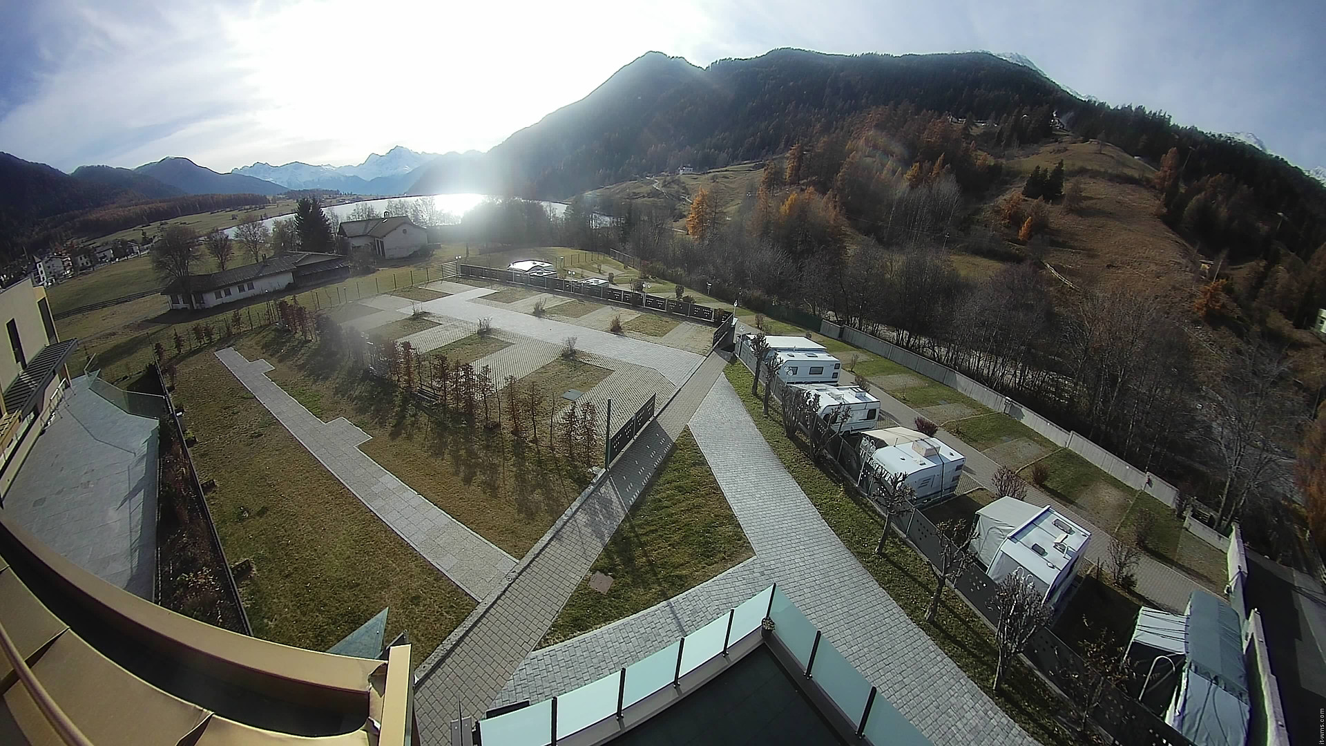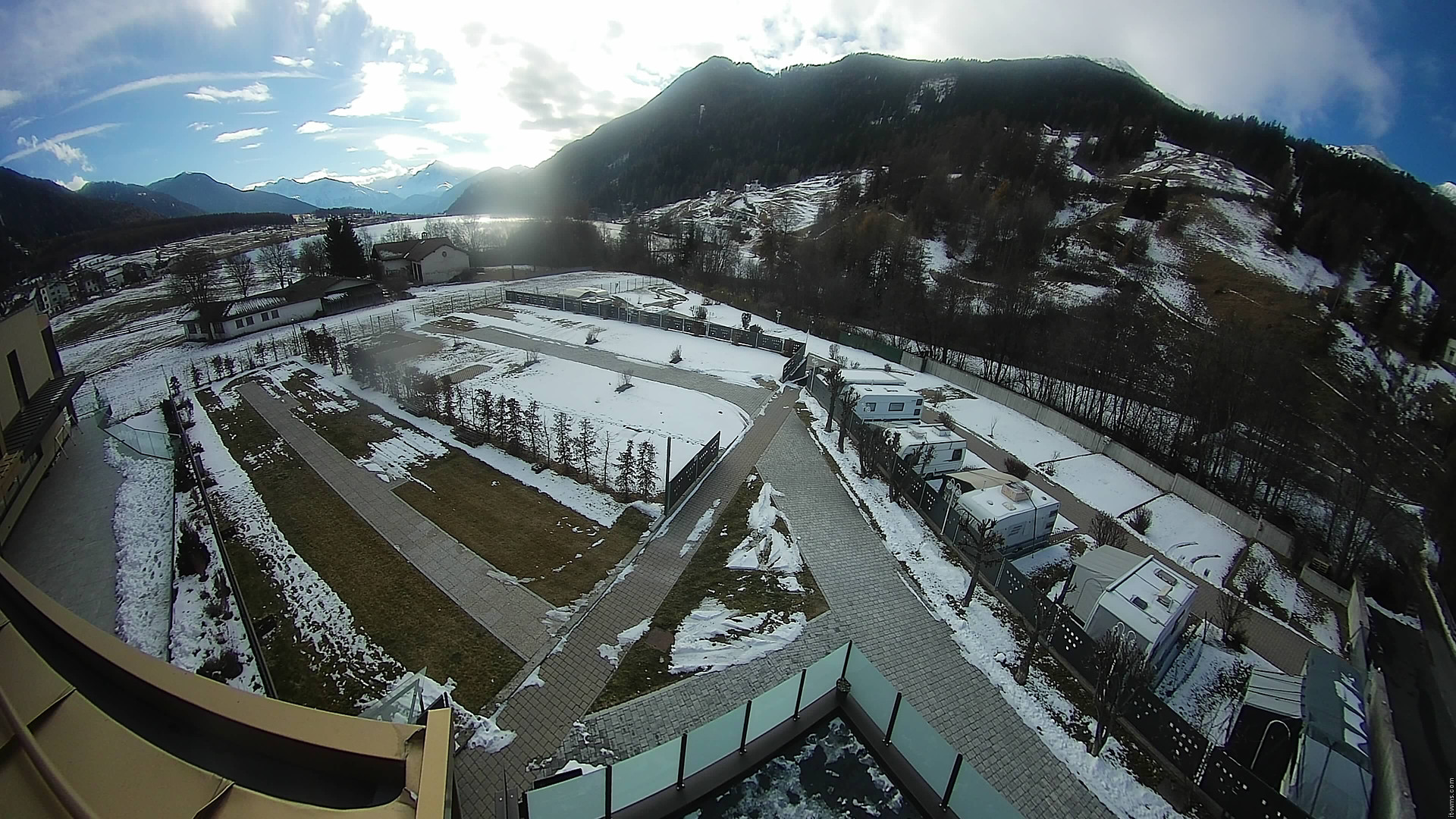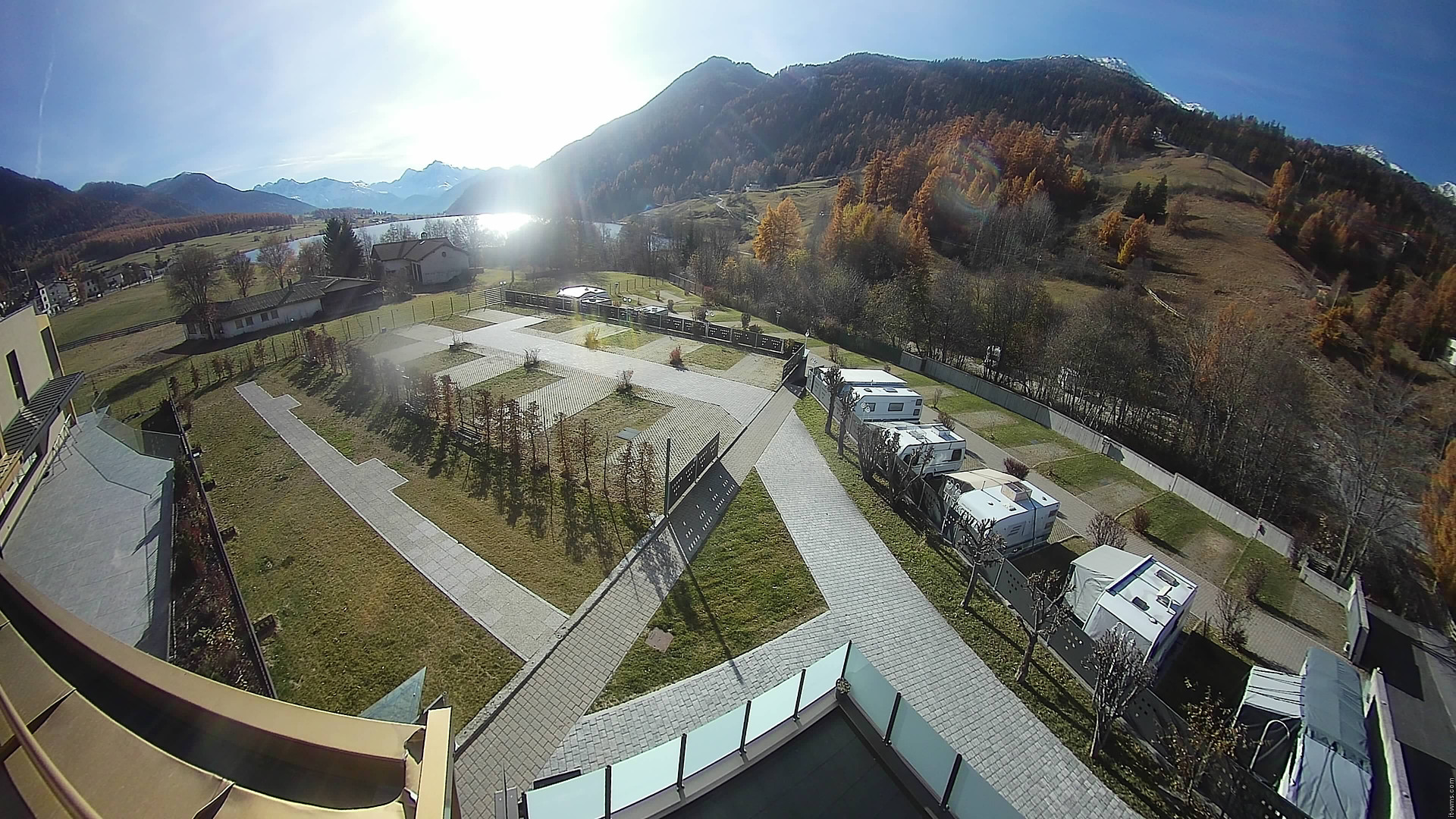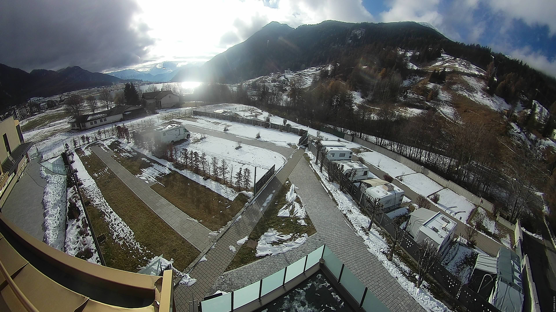 St. Valentin auf der Haide, Italien - 7.2 km von Burgeis: Panoramakamera Schöneben - In Schöneben mit seiner märchenhaften Kulisse rund um die 'Rojener Sonnenuhr' und den Reschensee finden die Wintersportler ein breites Angebot an Aktivitäten und Freizeitmöglichkeiten. Die herrlichen Pisten mit dem großen Snowpark und der einzigartige Funslope garantieren Spass und Freude beim skifahren. Im Sommer kommen Wanderer und Mountainbiker mit den neuen 3 Länder Enduro Trails auf Ihre Kosten und genießen die Erholung pur.