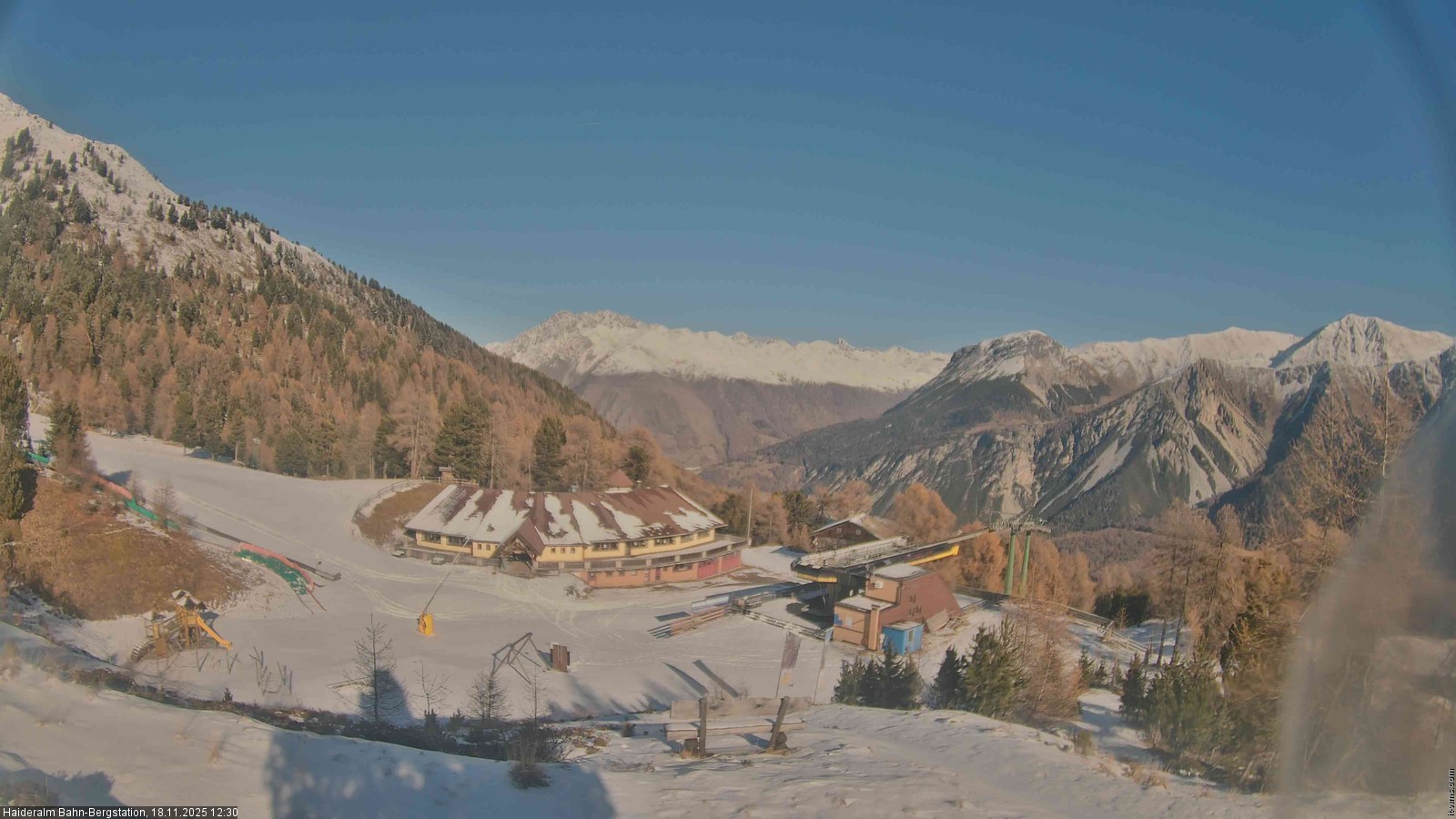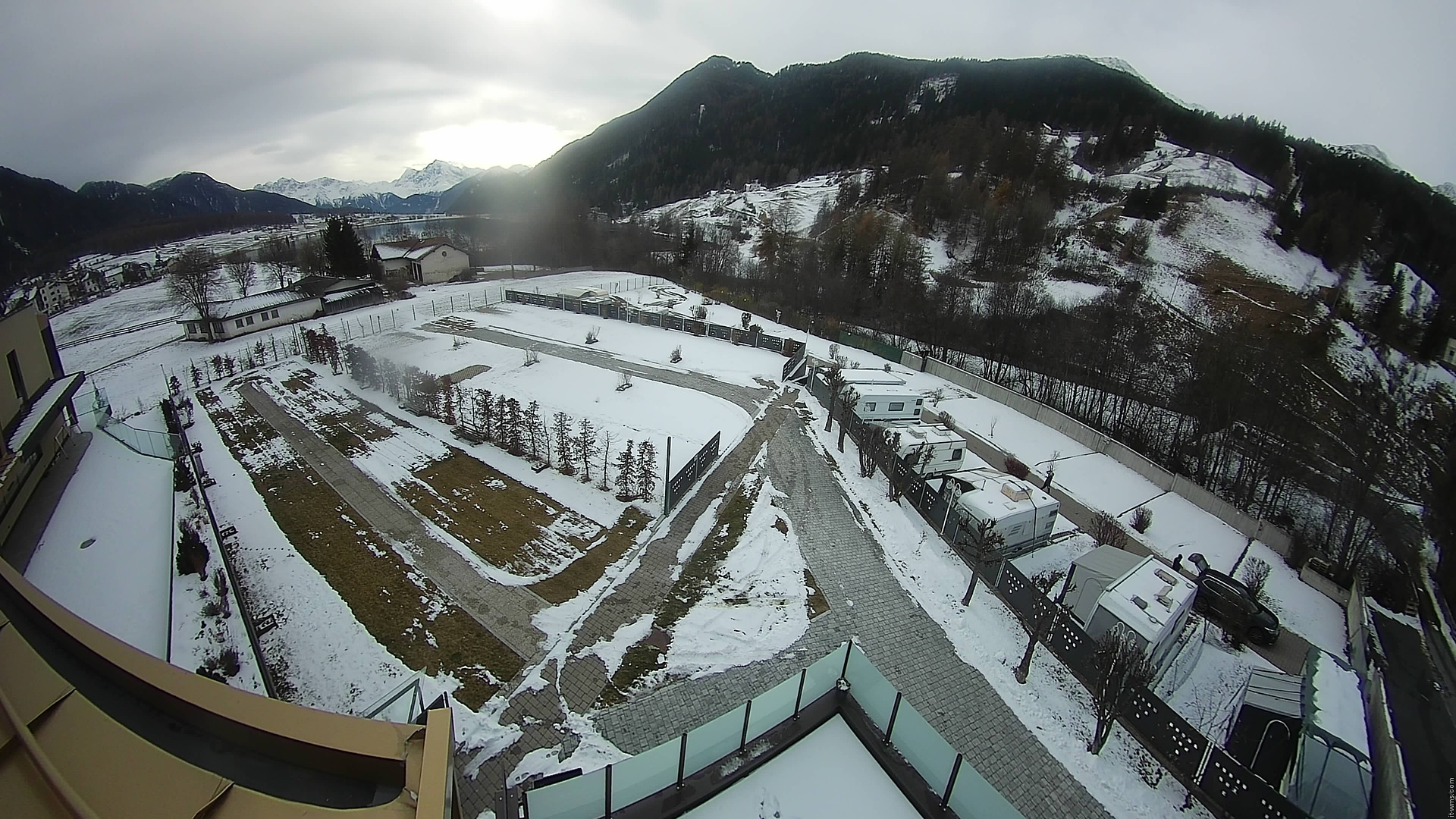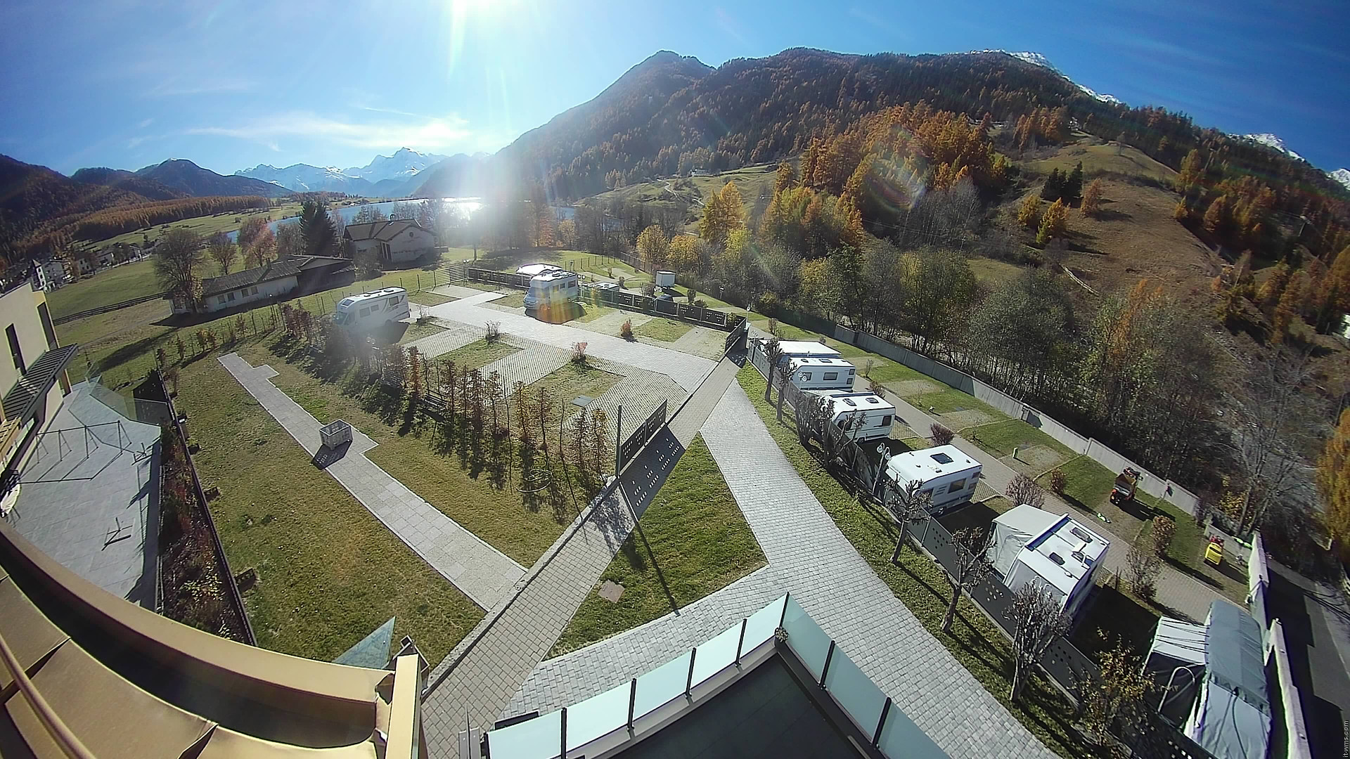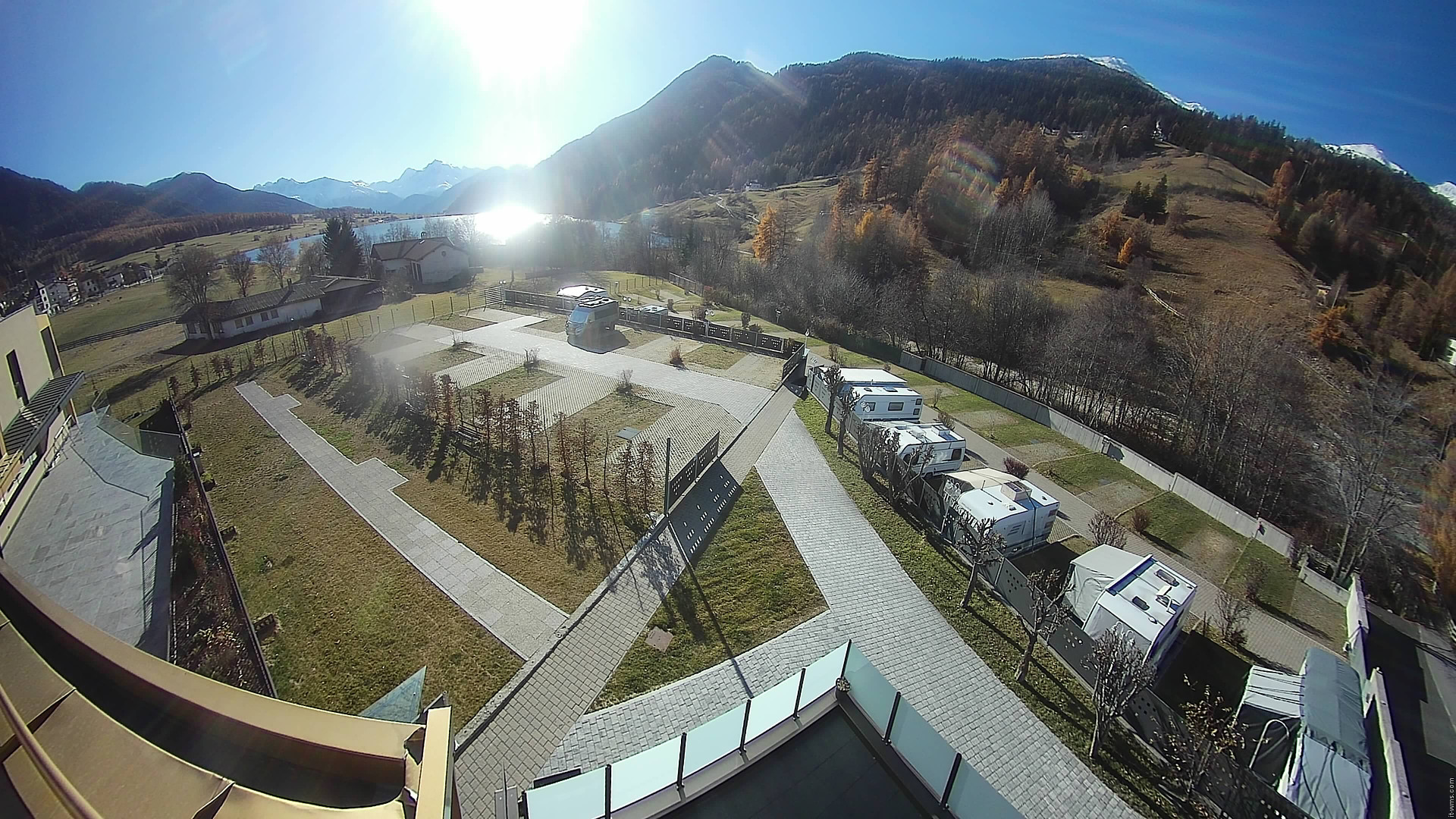 St. Valentin auf der Haide, Italien - 7.2 km von Burgeis: Panoramakamera Schöneben - In Schöneben mit seiner märchenhaften Kulisse rund um die 'Rojener Sonnenuhr' und den Reschensee finden die Wintersportler ein breites Angebot an Aktivitäten und Freizeitmöglichkeiten. Die herrlichen Pisten mit dem großen Snowpark und der einzigartige Funslope garantieren Spass und Freude beim skifahren. Im Sommer kommen Wanderer und Mountainbiker mit den neuen 3 Länder Enduro Trails auf Ihre Kosten und genießen die Erholung pur.