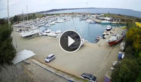 - Blick über den Hafen von Crotone mit dem Kap von Capo Colonna im Hintergrund.