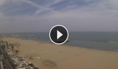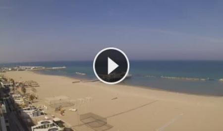 Cattolica, Italien - 15.9 km von Colbordolo: Strand von Cattolica - Rimini - Blick auf den Strand von Cattolica, Misano Adriatico und Riccione im Hintergrund.