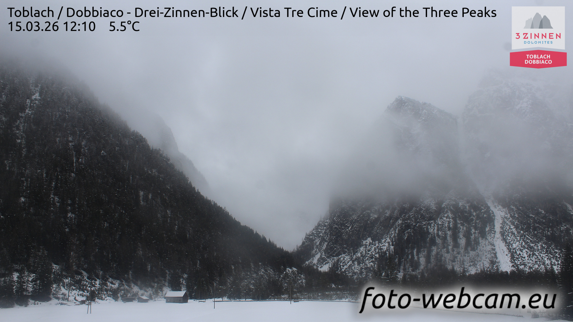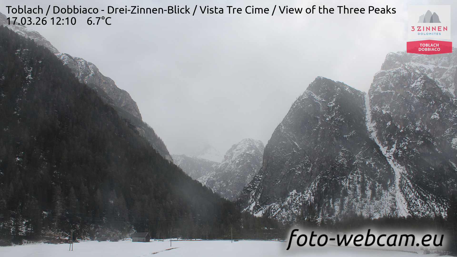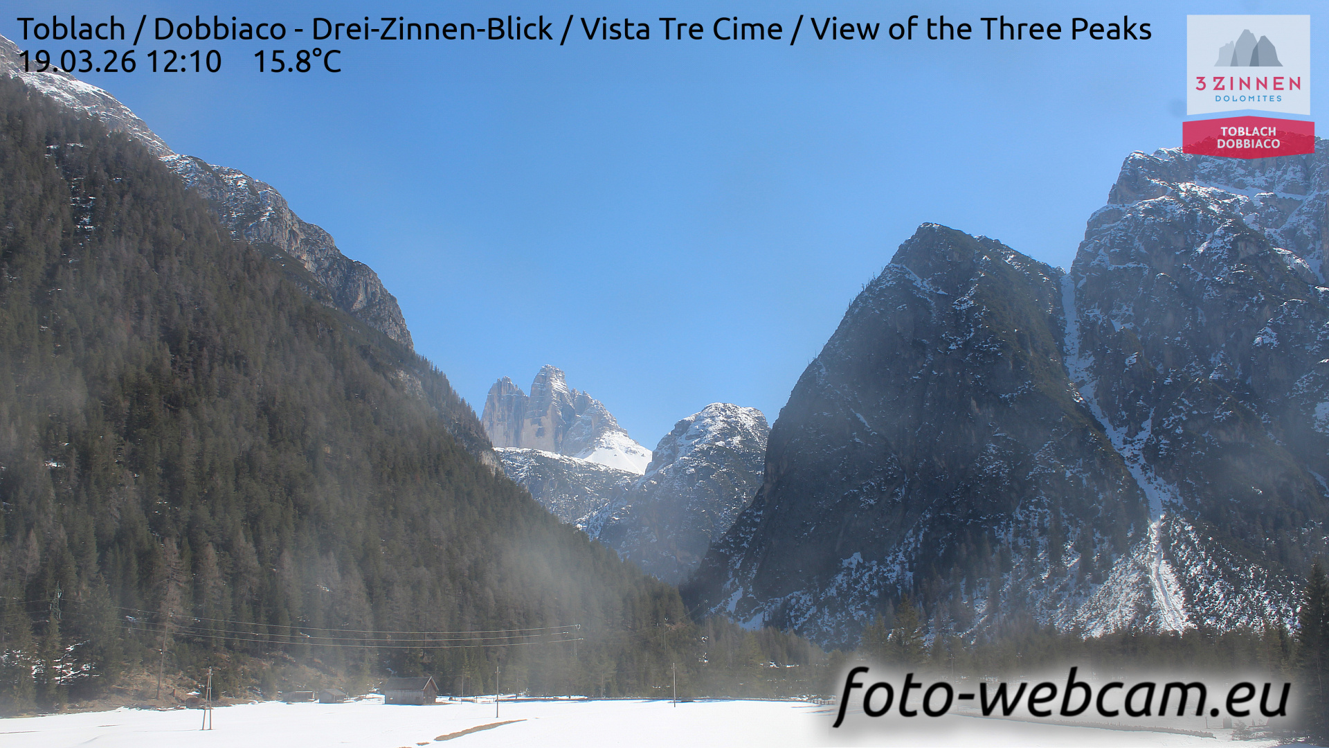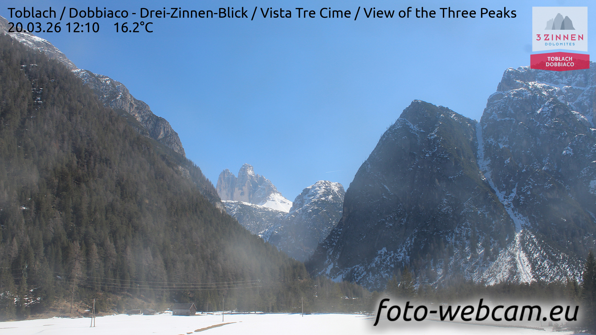 Toblach (Dolomites), Italien - 1 km von Dobbiaco: HD Foto-Webcam Drei Zinnenblick - Toblach / Dobbiaco - Drei-Zinnen-Blick / Vista Tre Cime / View of the Three Peaks.
