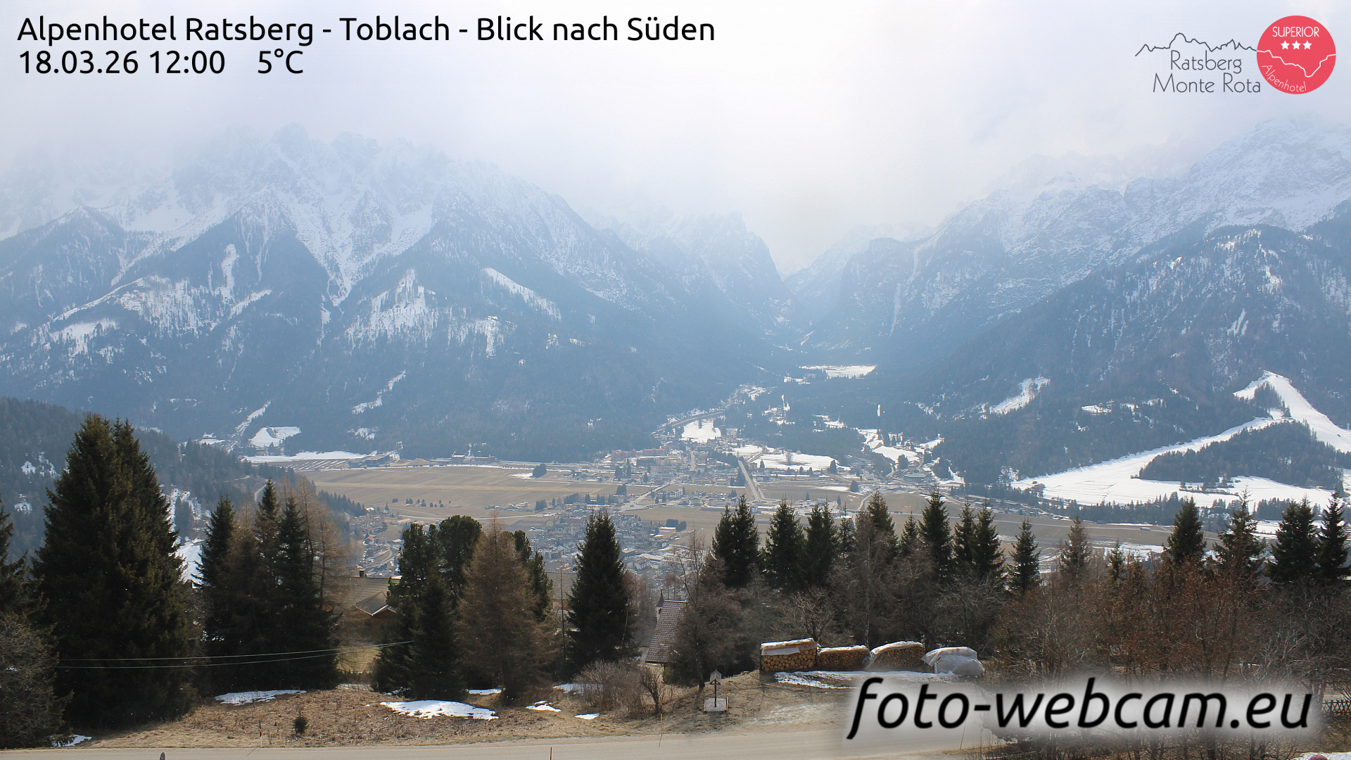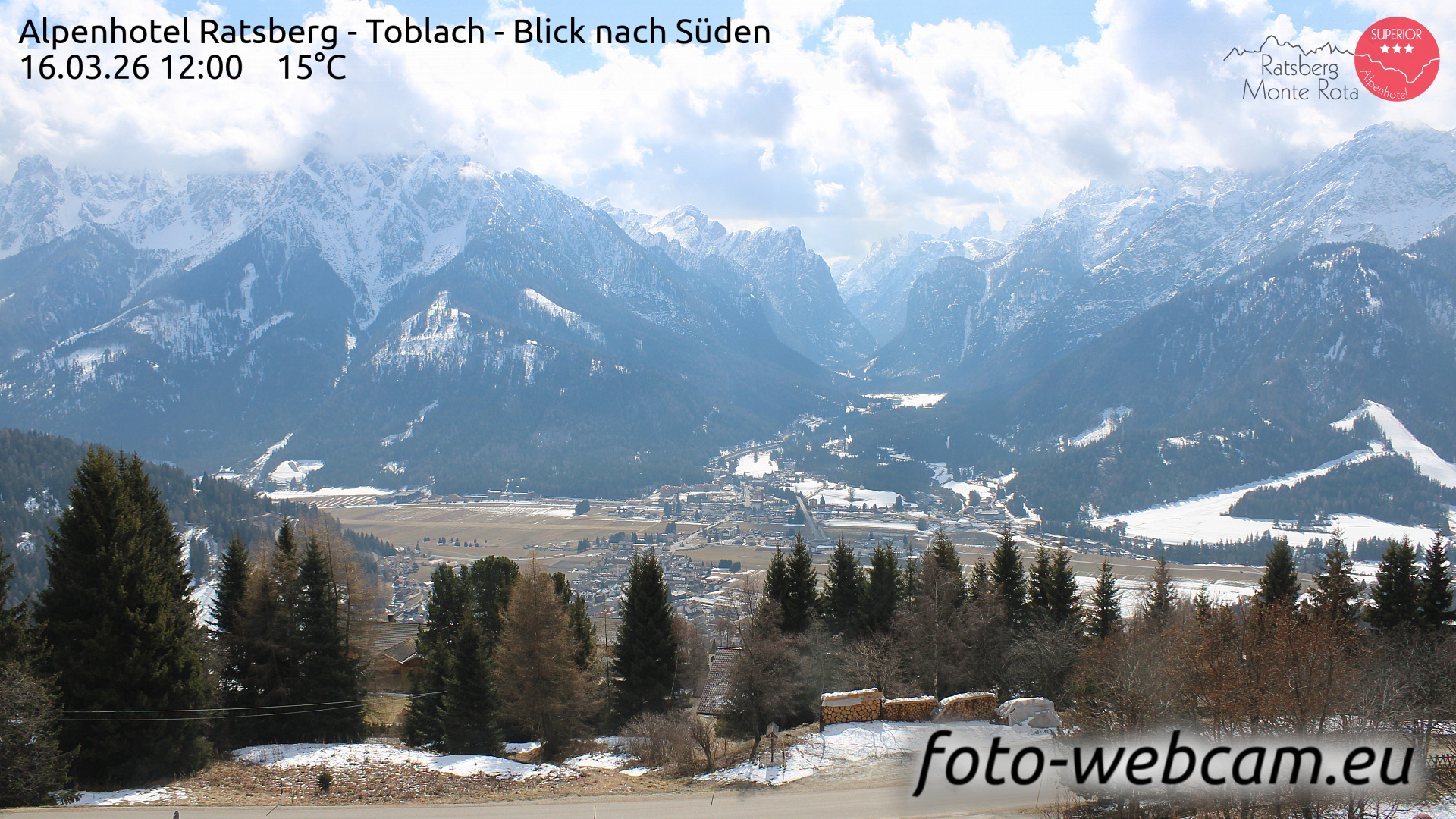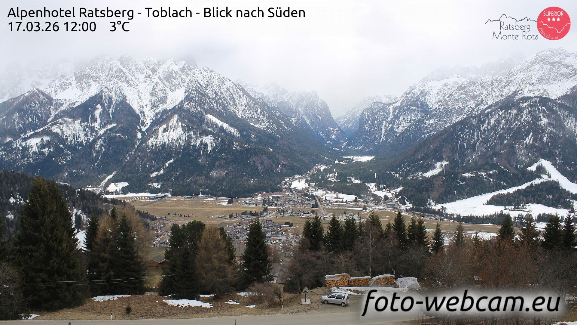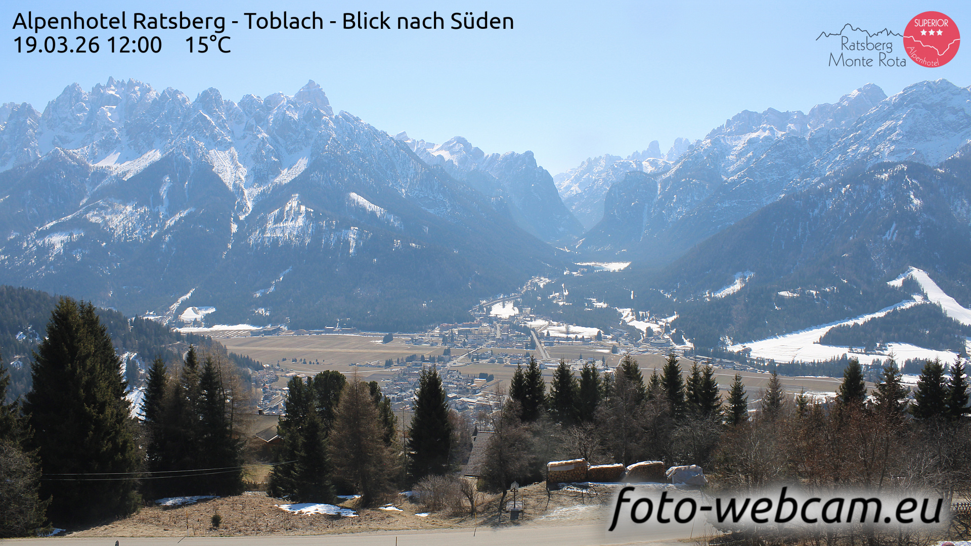 Toblach (Dolomites), Italien - 1 km von Dobbiaco: HD Foto-Webcam Drei Zinnenblick - Toblach / Dobbiaco - Drei-Zinnen-Blick / Vista Tre Cime / View of the Three Peaks.