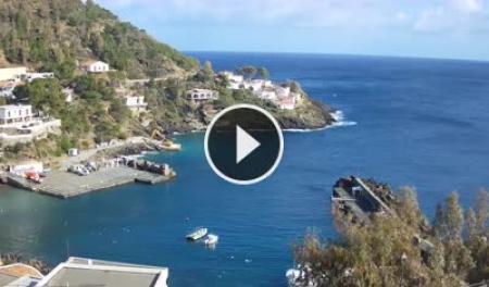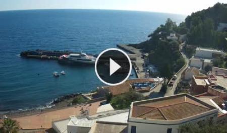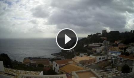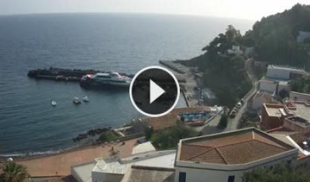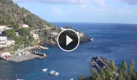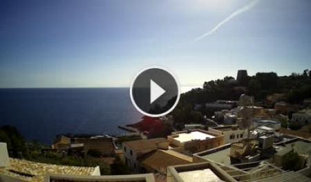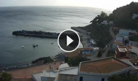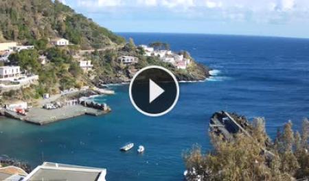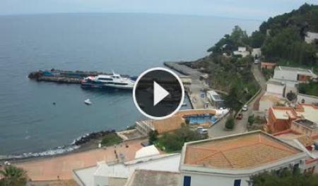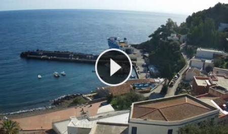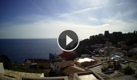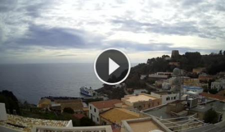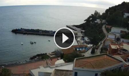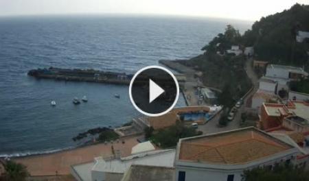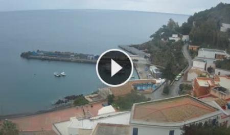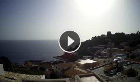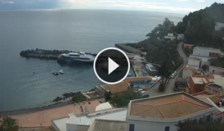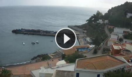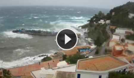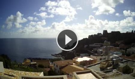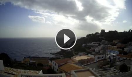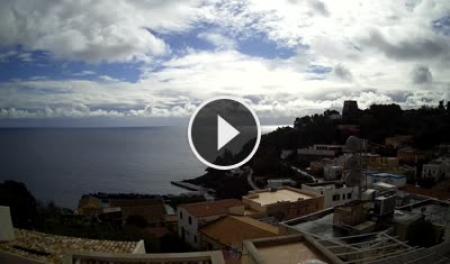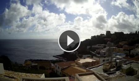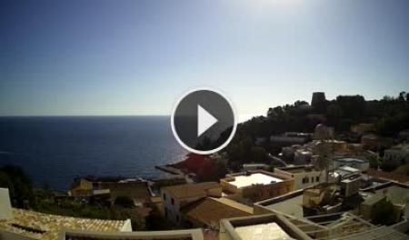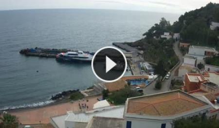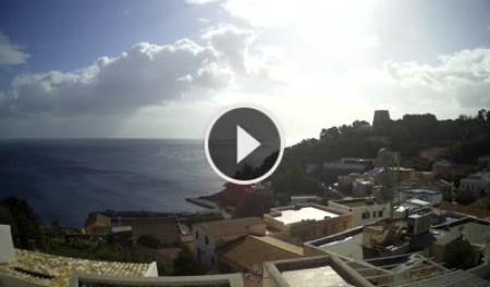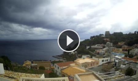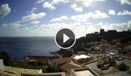 Ustica, Italien - 20.9 km von Falconara Alta: Cala S. Maria und Punta della Mezzaluna - Ein Blick über den Hafen vor dem Dorf, das Fischerdorf im Hintergrund.