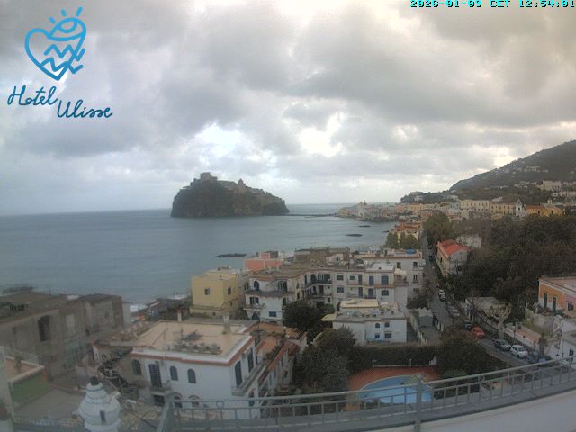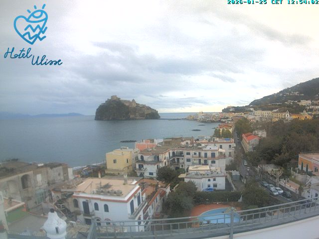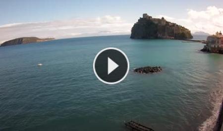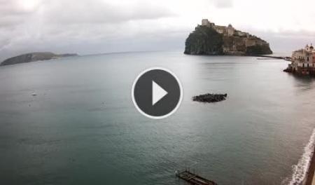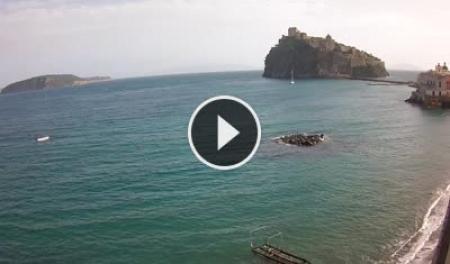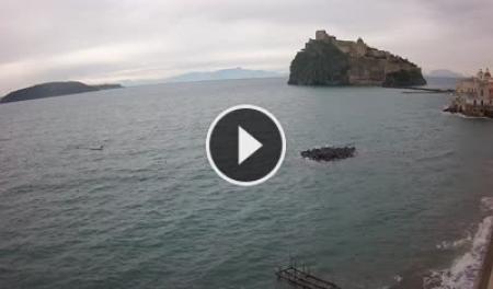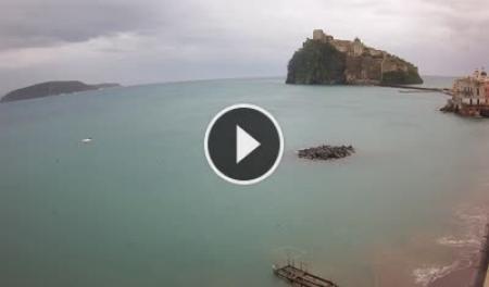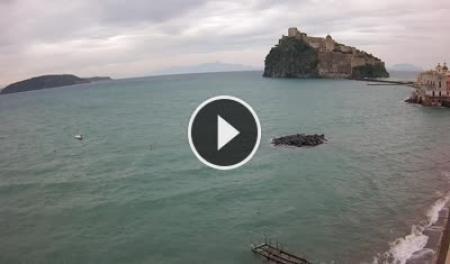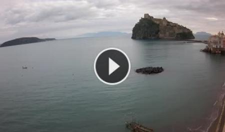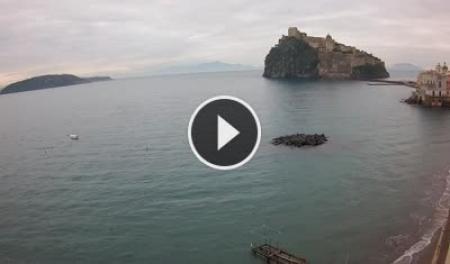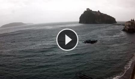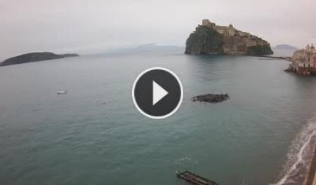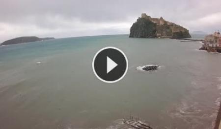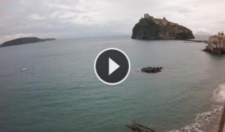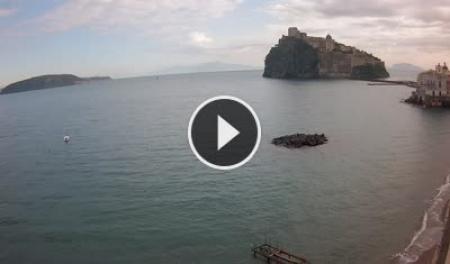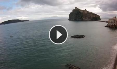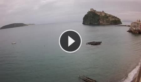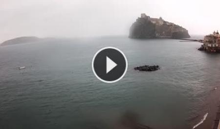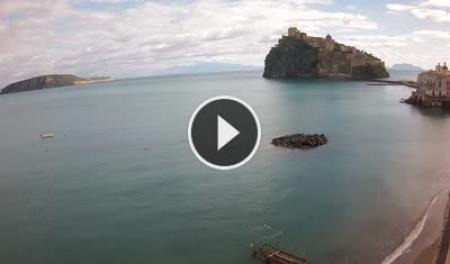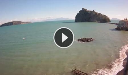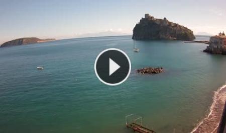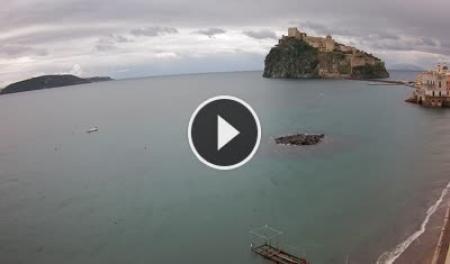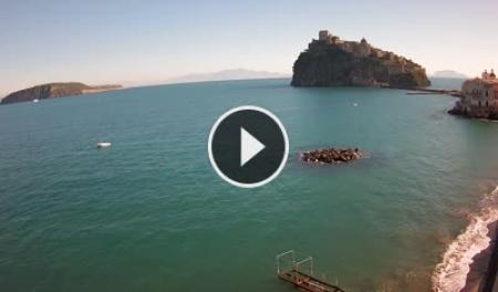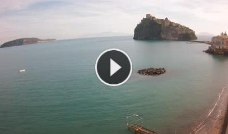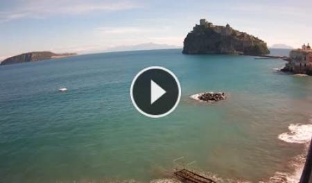 - Blick über das Schloss, den Strand Mandra und das Dorf von Ischia Ponte