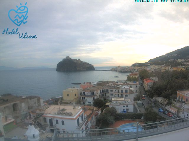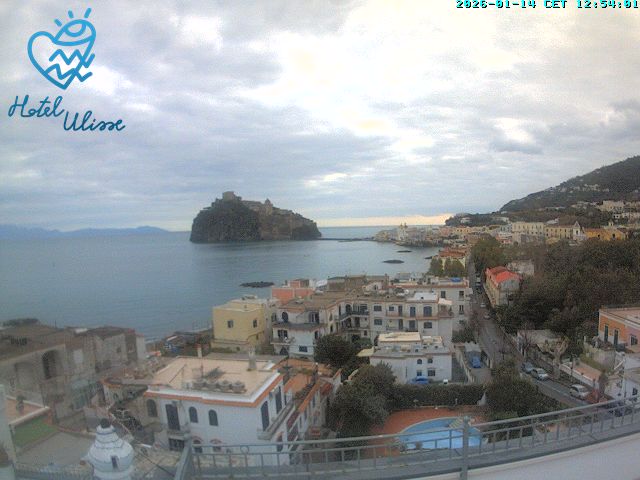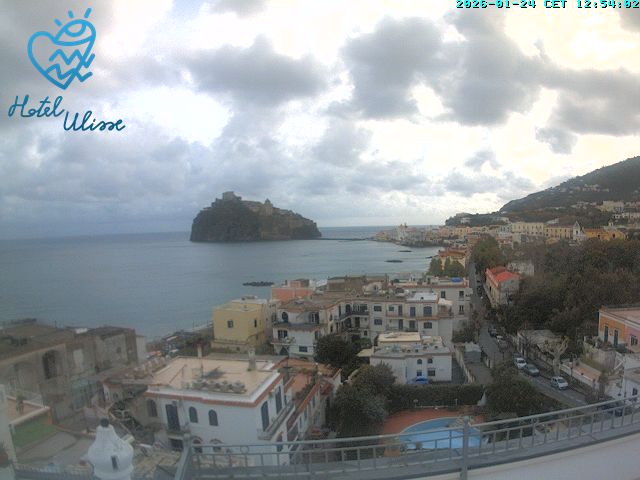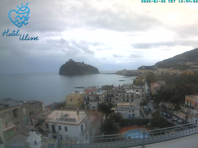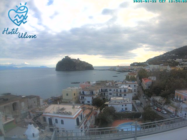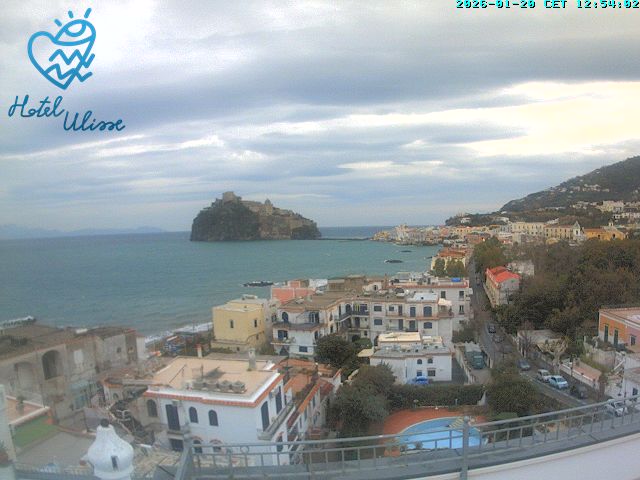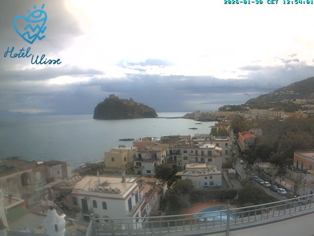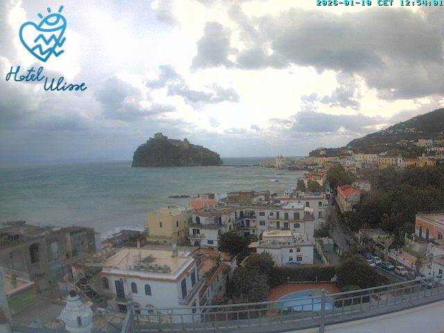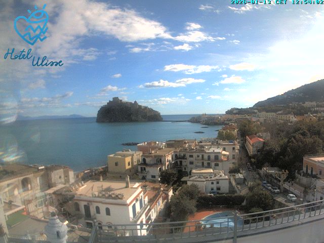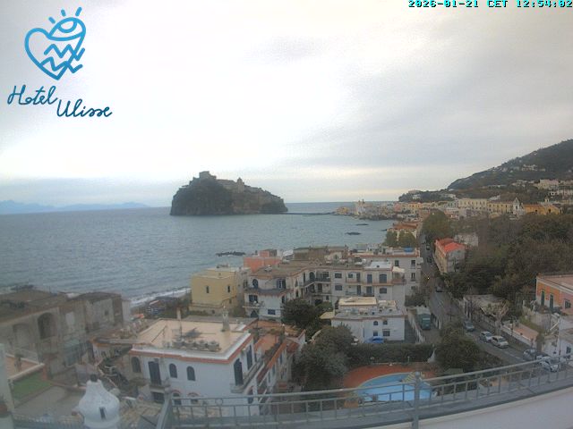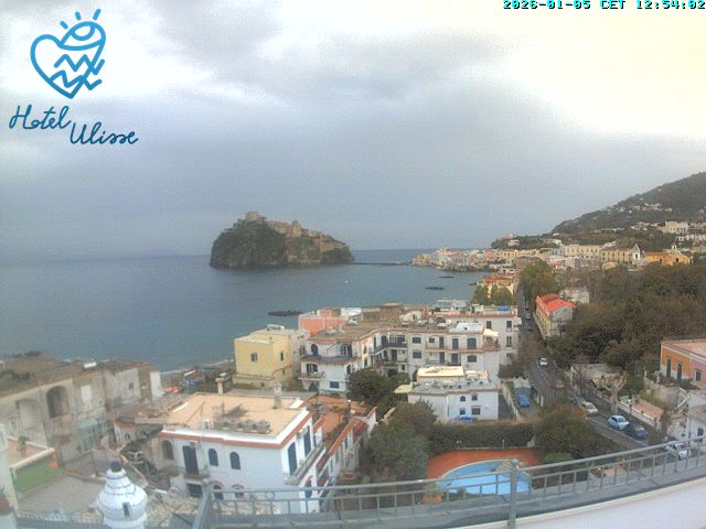 - Blick über das Schloss, den Strand Mandra und das Dorf von Ischia Ponte