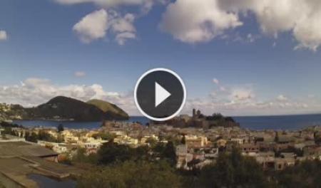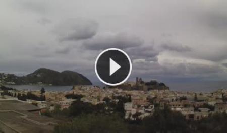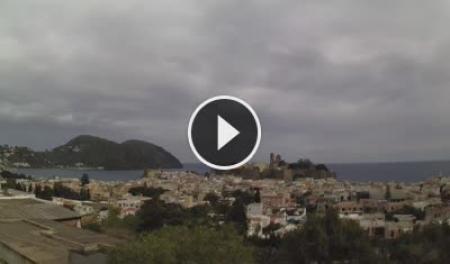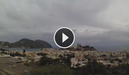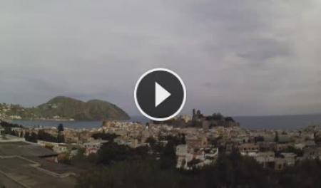 Patti, Italien - 21.9 km von Frazzano: HD-Stream Strand - Aussicht auf den Strand und die Strandpromenade von Patti, das Vorgebirge von Tindari im Hintergrund.