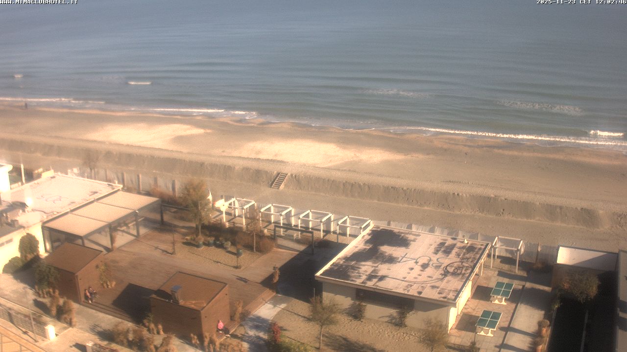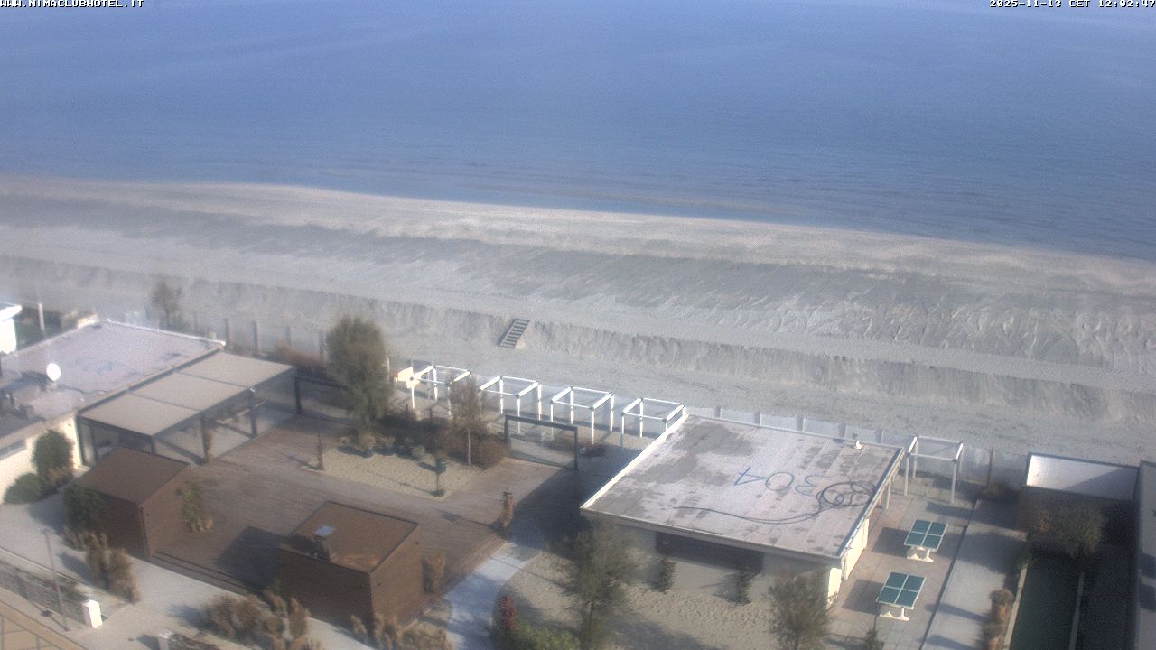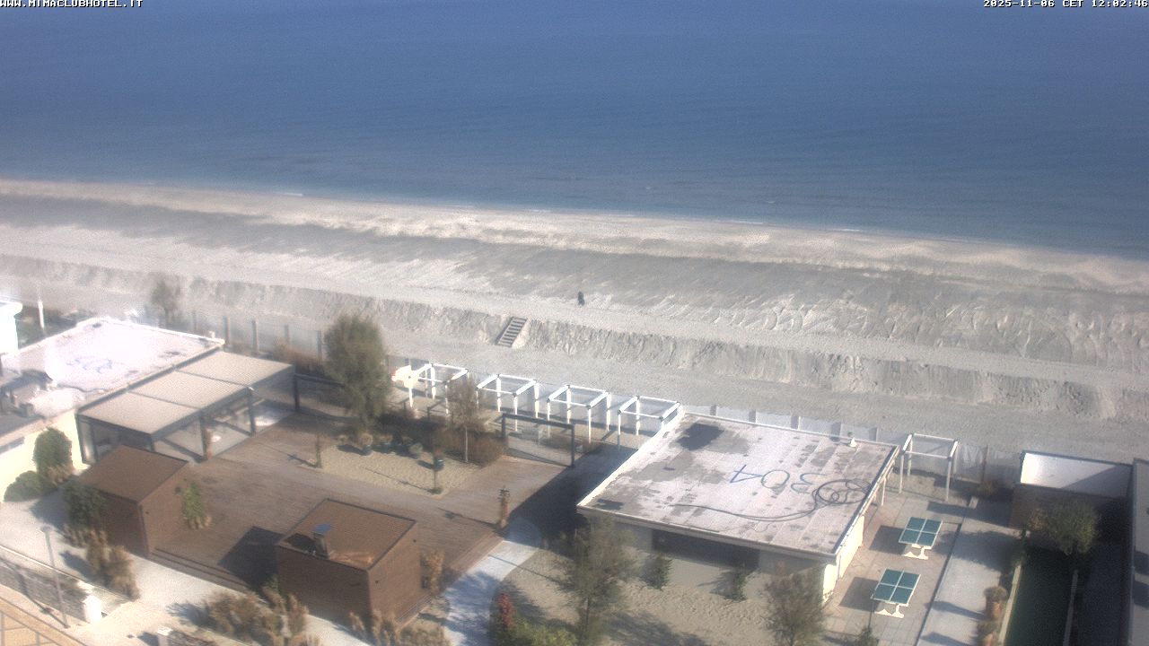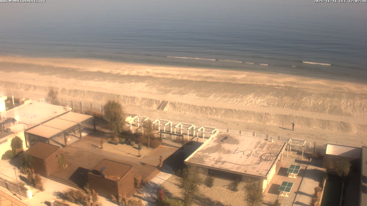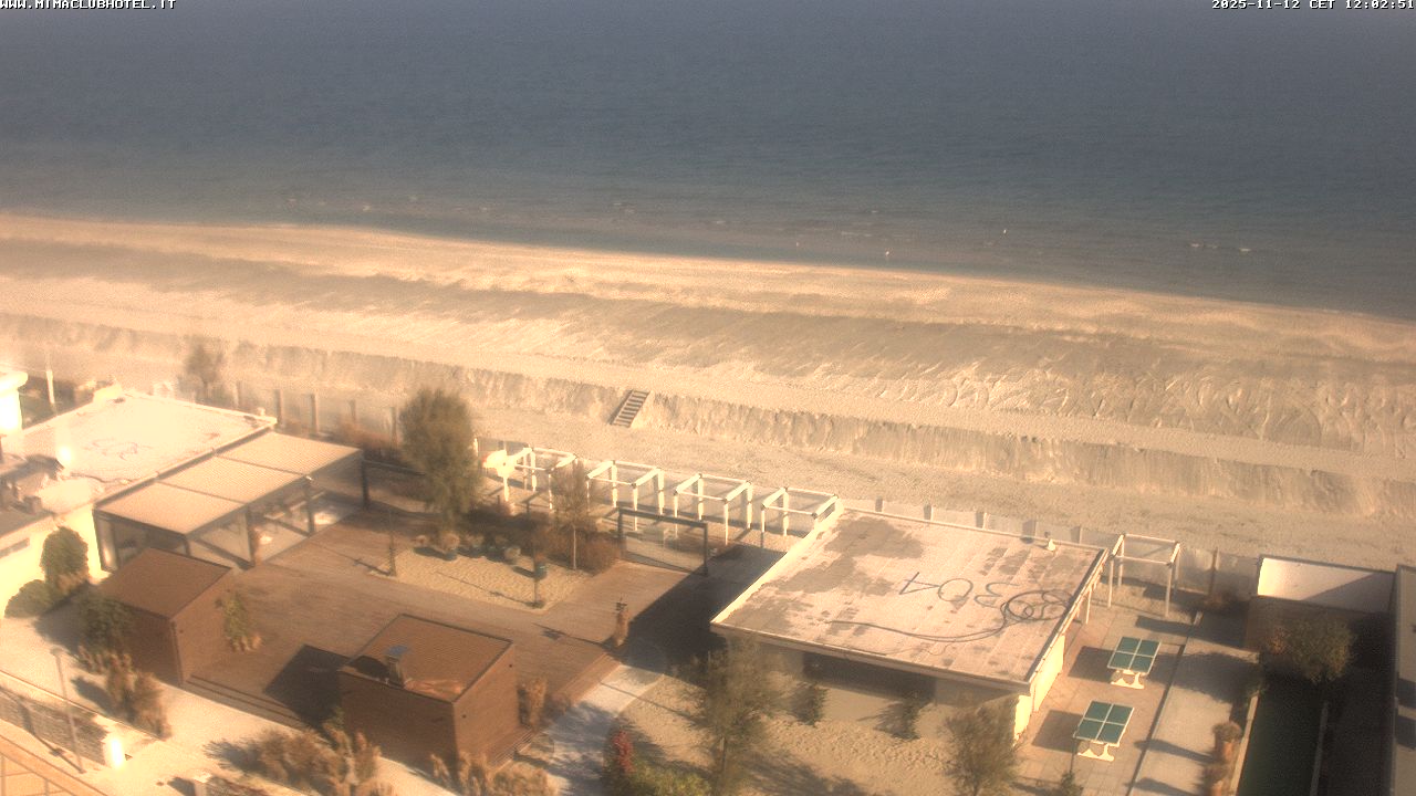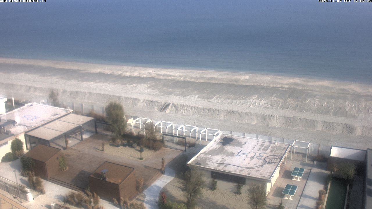 - Ein Panoramablick vom Bagno Delfino Cervia über den Strand.