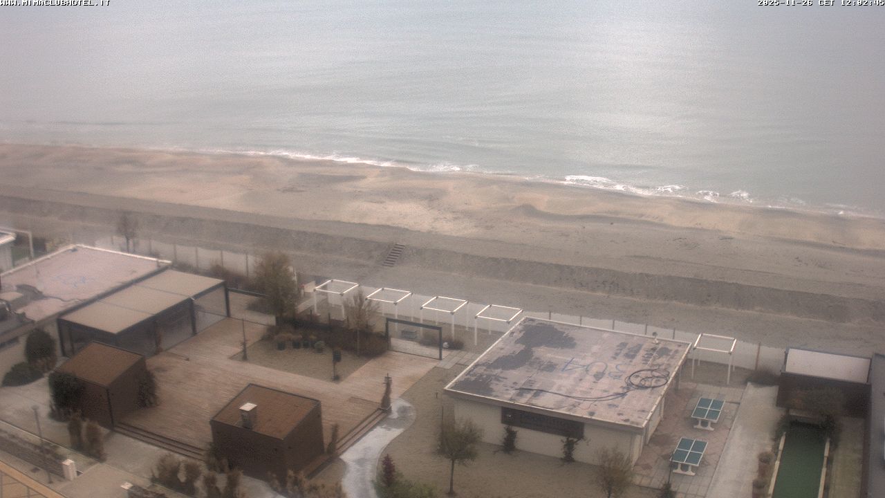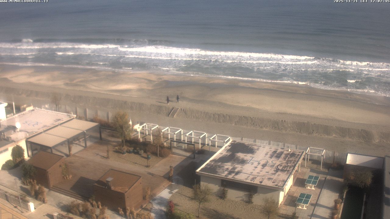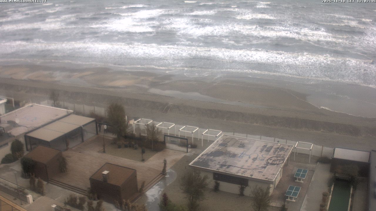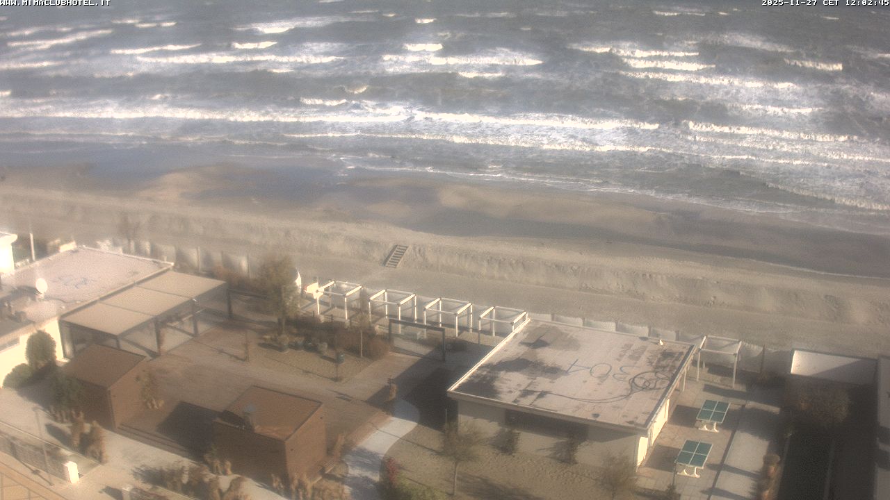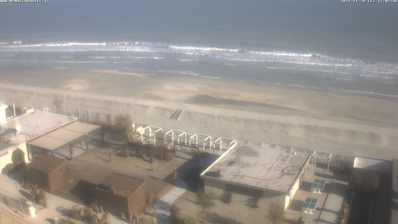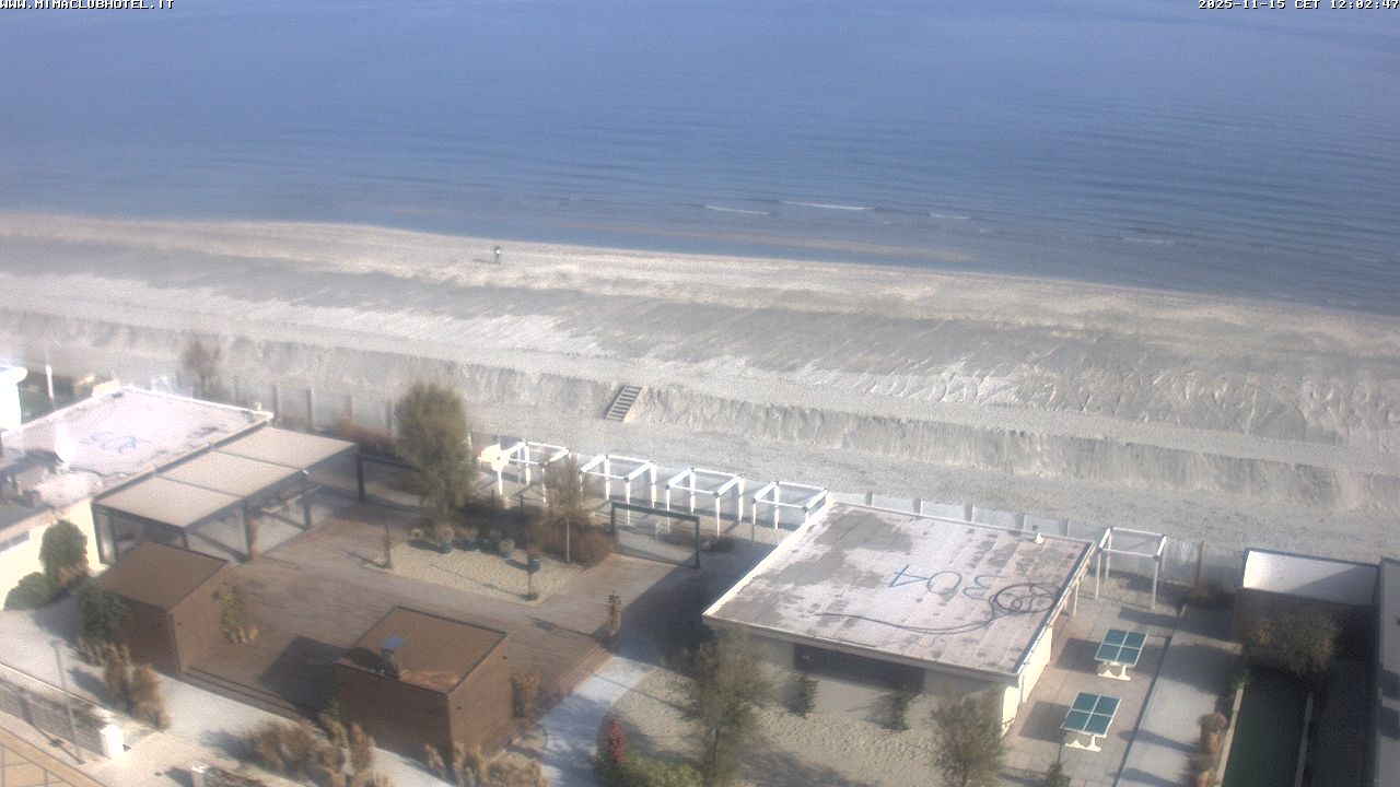- Ein Panoramablick vom Bagno Delfino Cervia über den Strand.