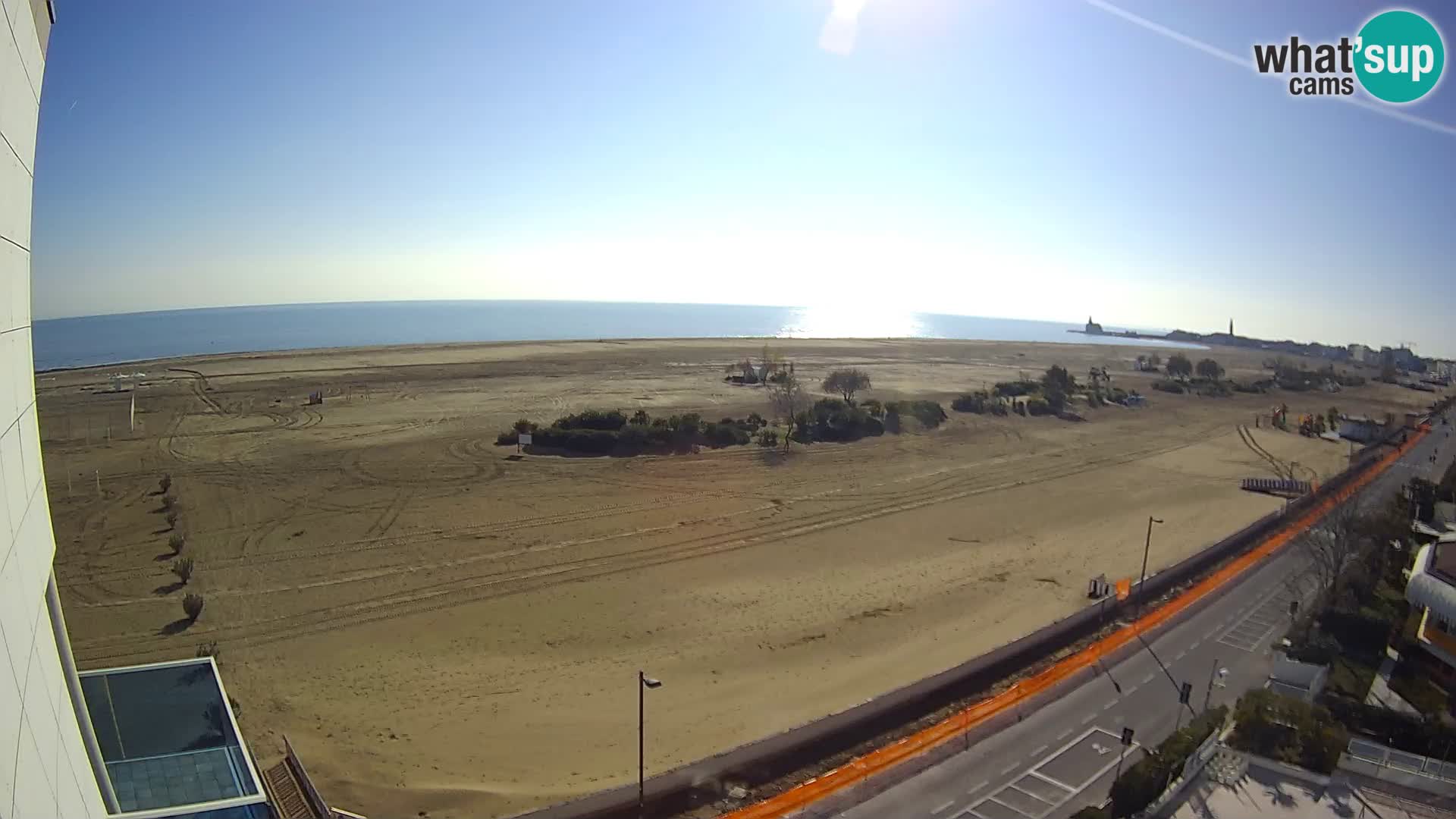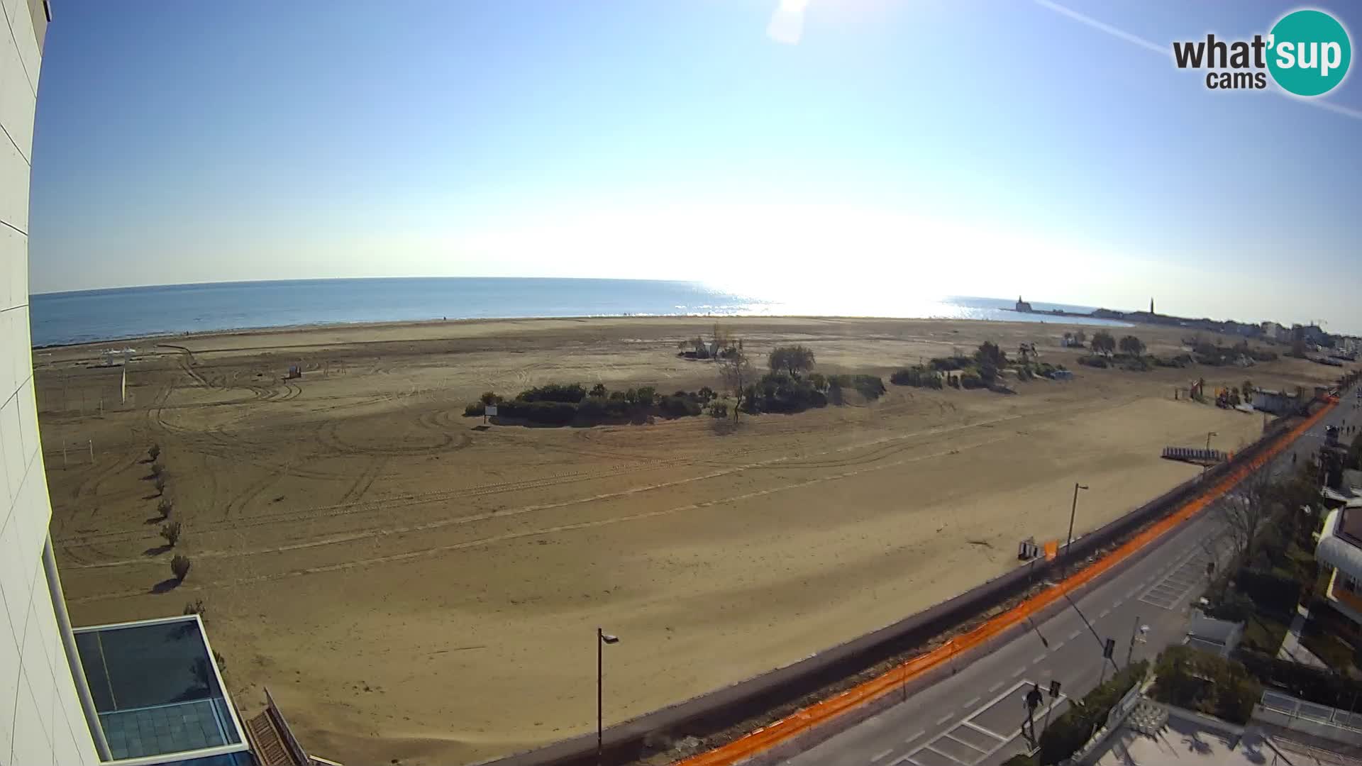 - Blick über die Strandpromenade und das lebende Felsenriff von Caorle