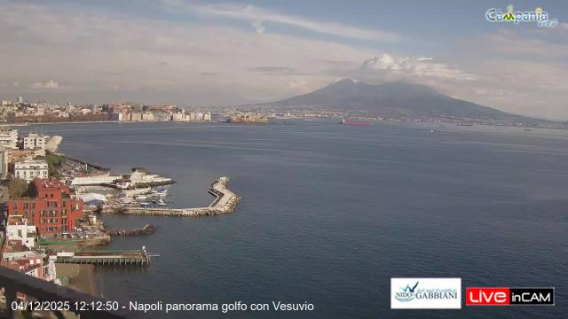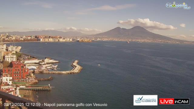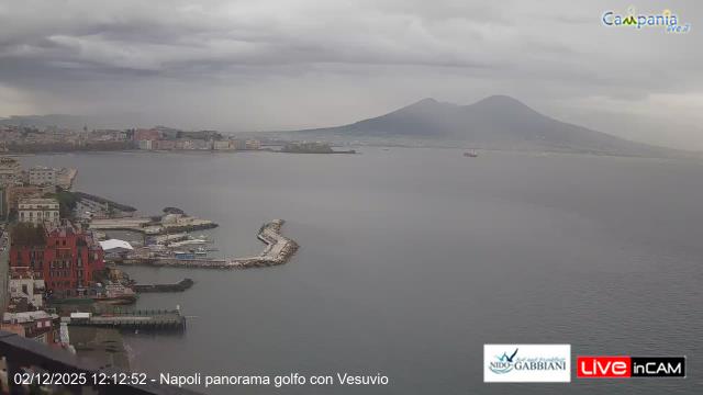 Naples, Italien - 54.2 km von Guardia Sanframondi: Stadtpanorama - Ein sehr schöner Panoramablick über Neapel vom Vomero-Hügel mit dem Vesuv und dem Castel dell'Ovo im Hintergrund