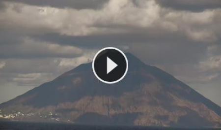 Panarea, Italien - 24.5 km von Leni: Panoramablick - Panorama-Blick auf den Vulkan Stromboli, das Felsenriff von Panarea, die Insel Basiluzzo und Dattilo.