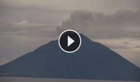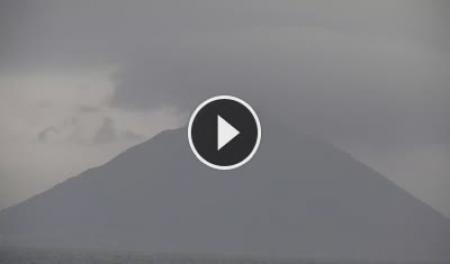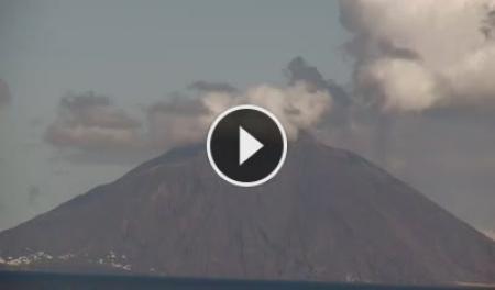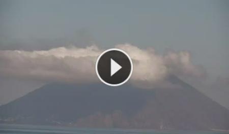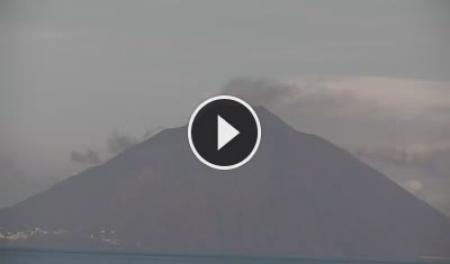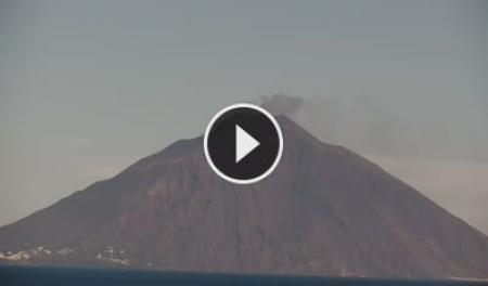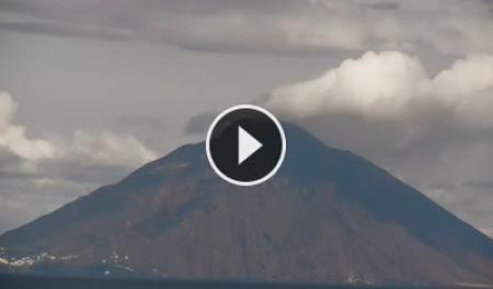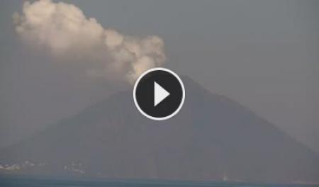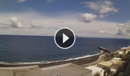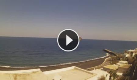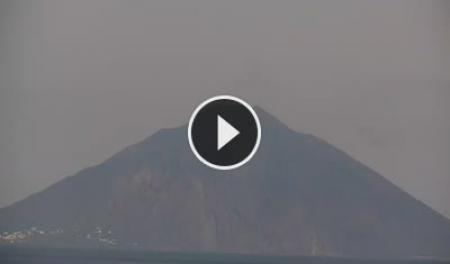 Panarea, Italien - 21.5 km von Lingua: Panoramablick - Panorama-Blick auf den Vulkan Stromboli, das Felsenriff von Panarea, die Insel Basiluzzo und Dattilo.