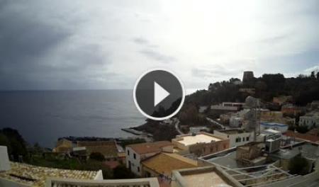 - Blick über den Santa Maria-Turm und den Hafen der Insel.