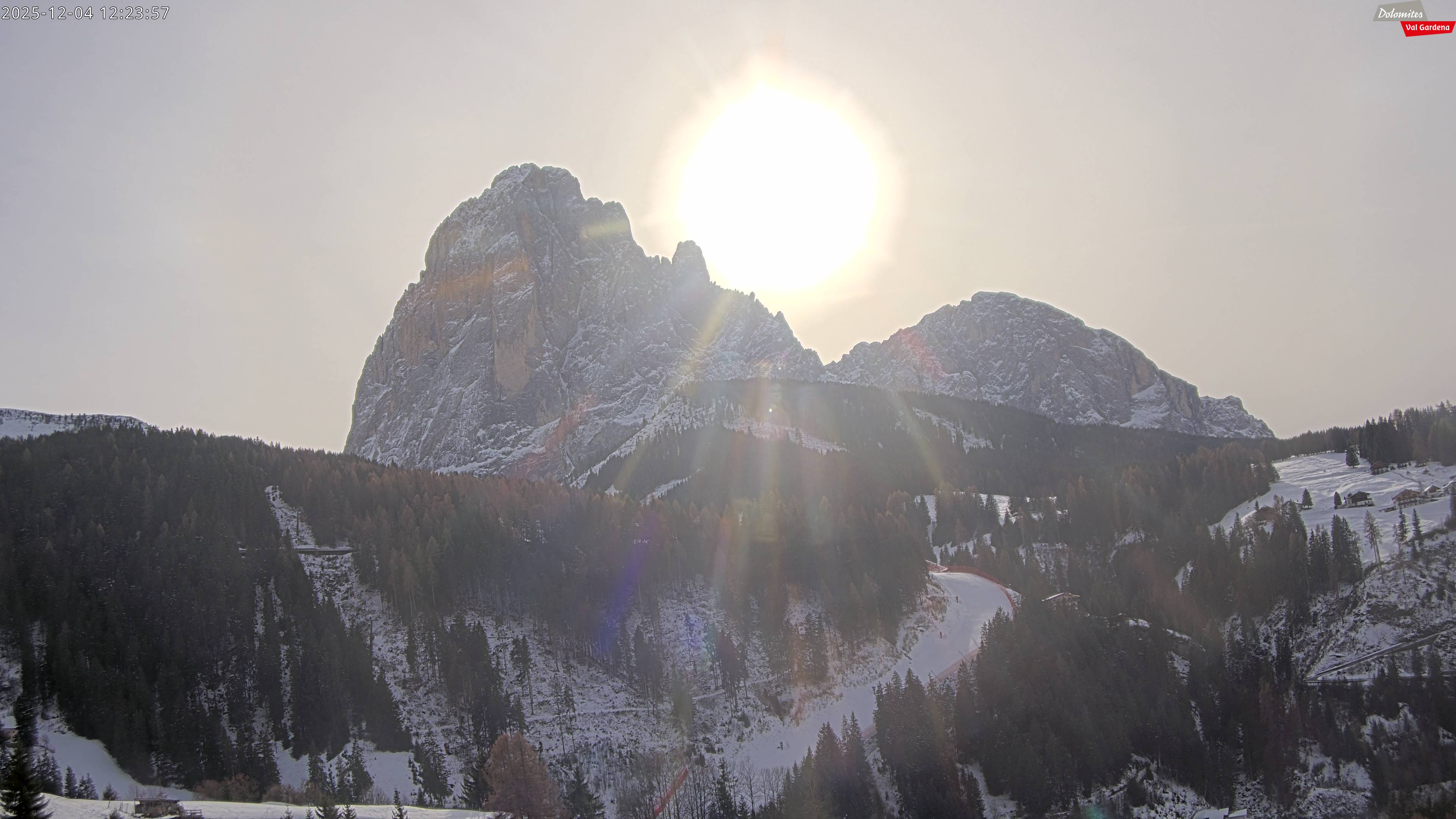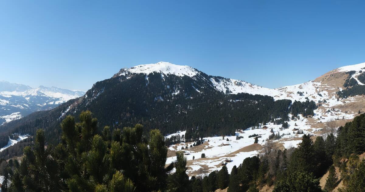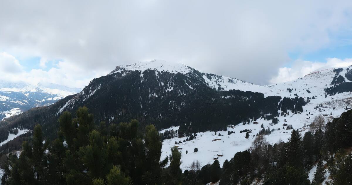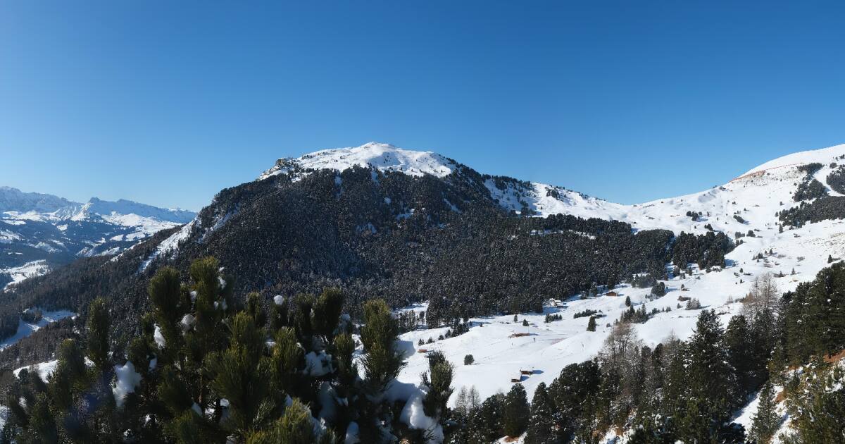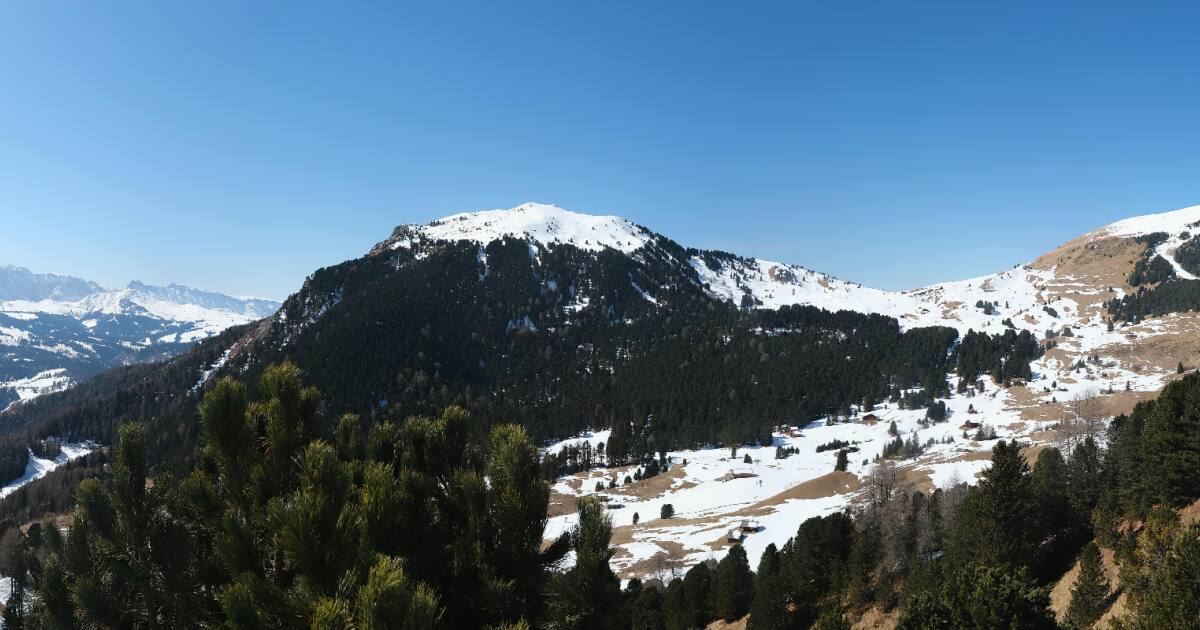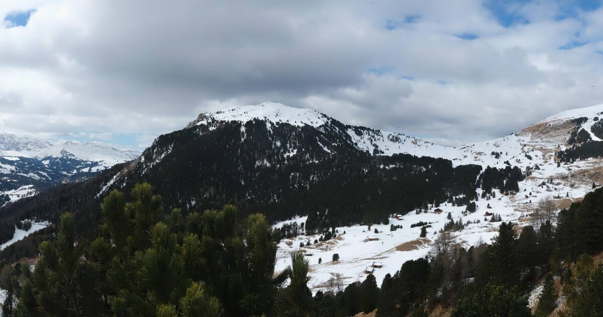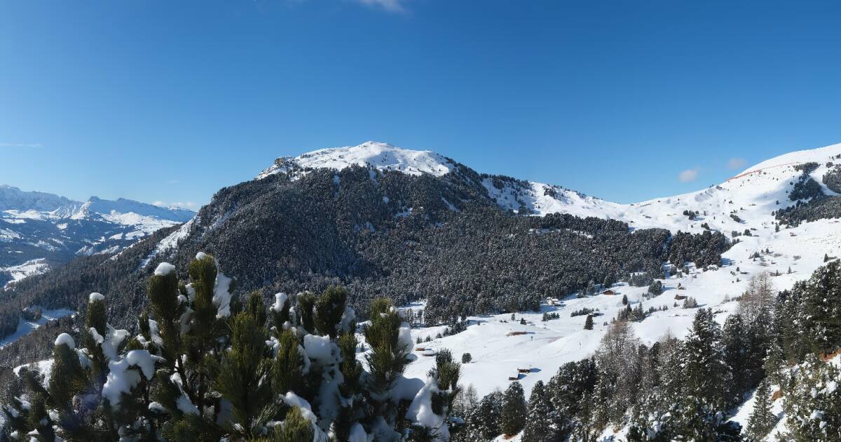 Ortisei, Italien - 6.6 km von Pizzago: Panoramakamera St. Ulrich - Aussicht auf die Sella-, Langkofelgruppe und St. Ulrich in Gröden von der Zone Solaria (1.245 m).