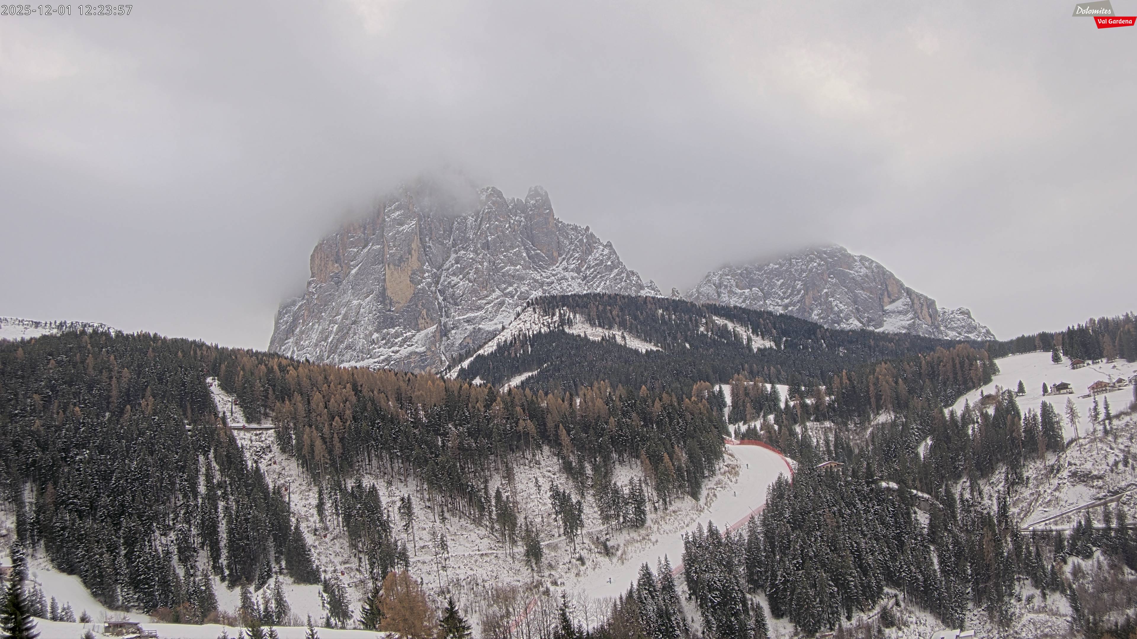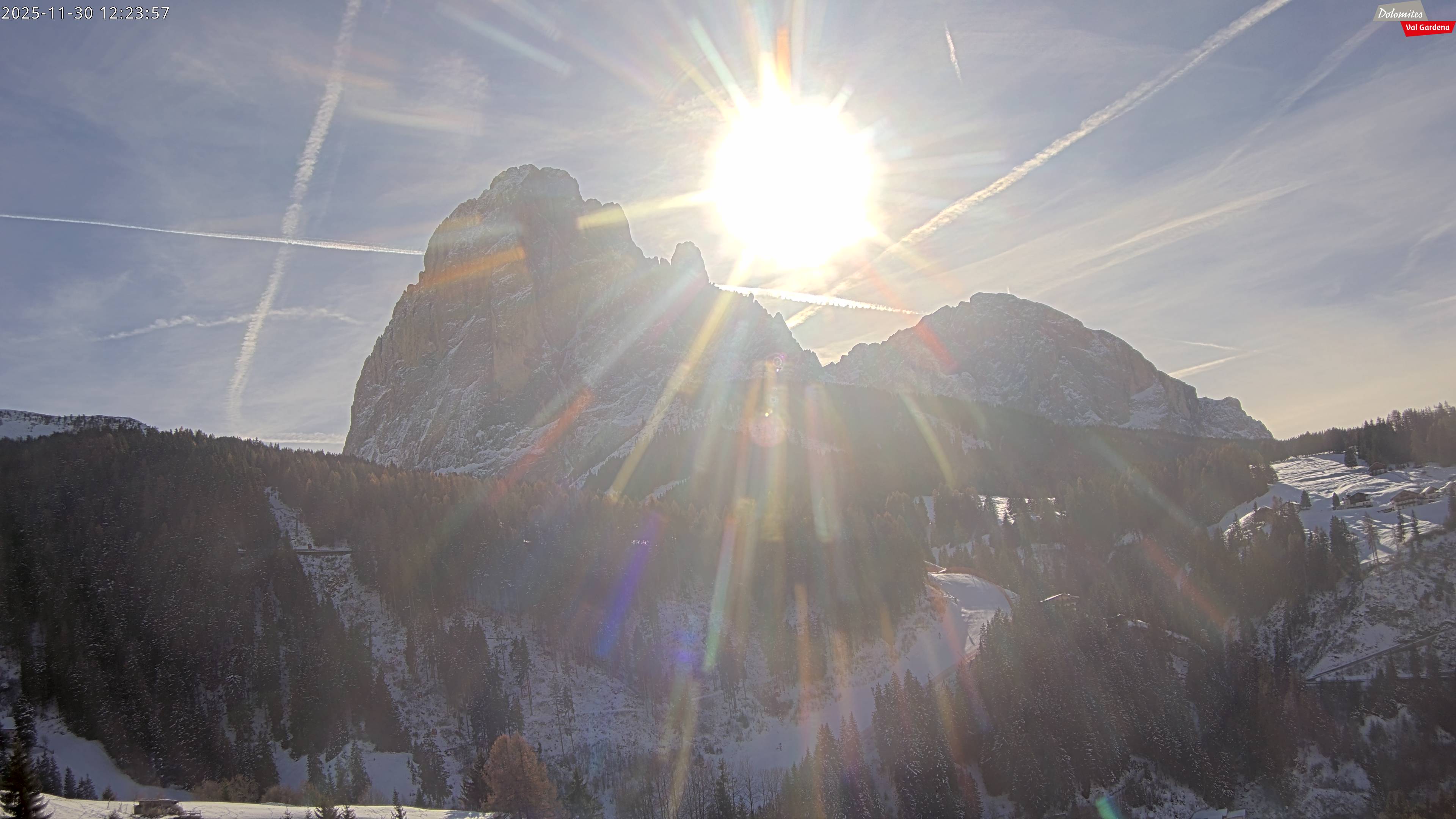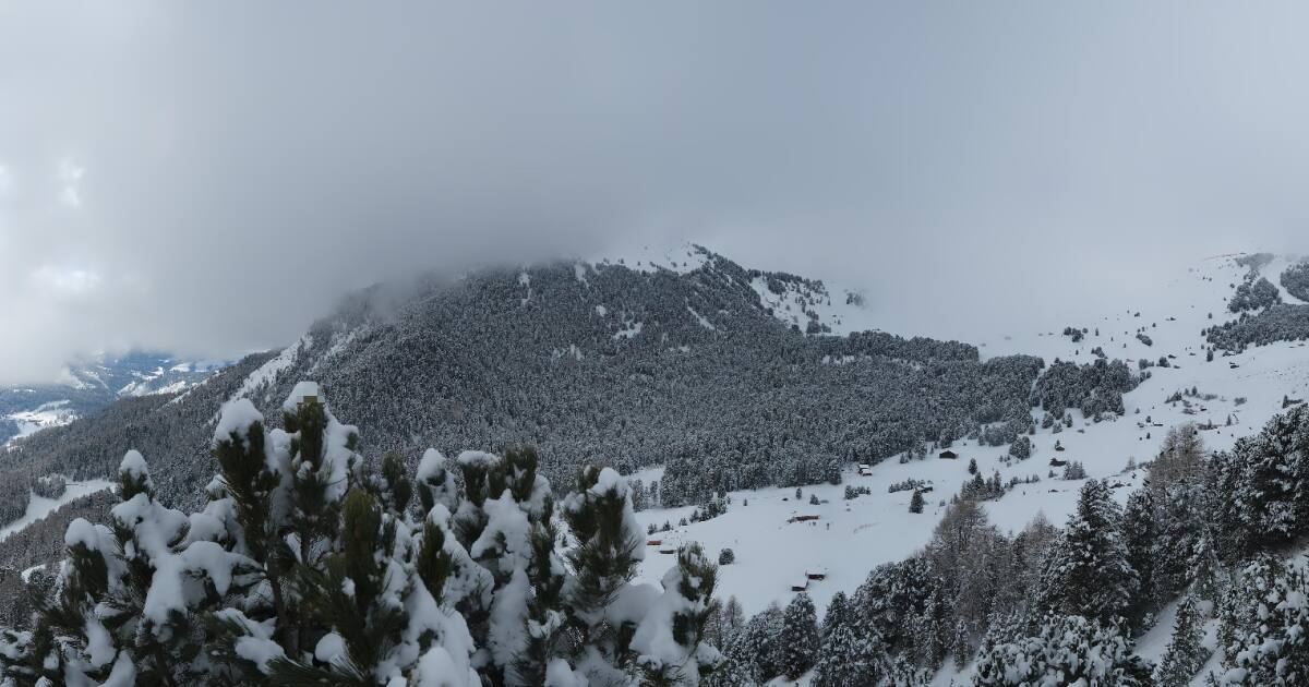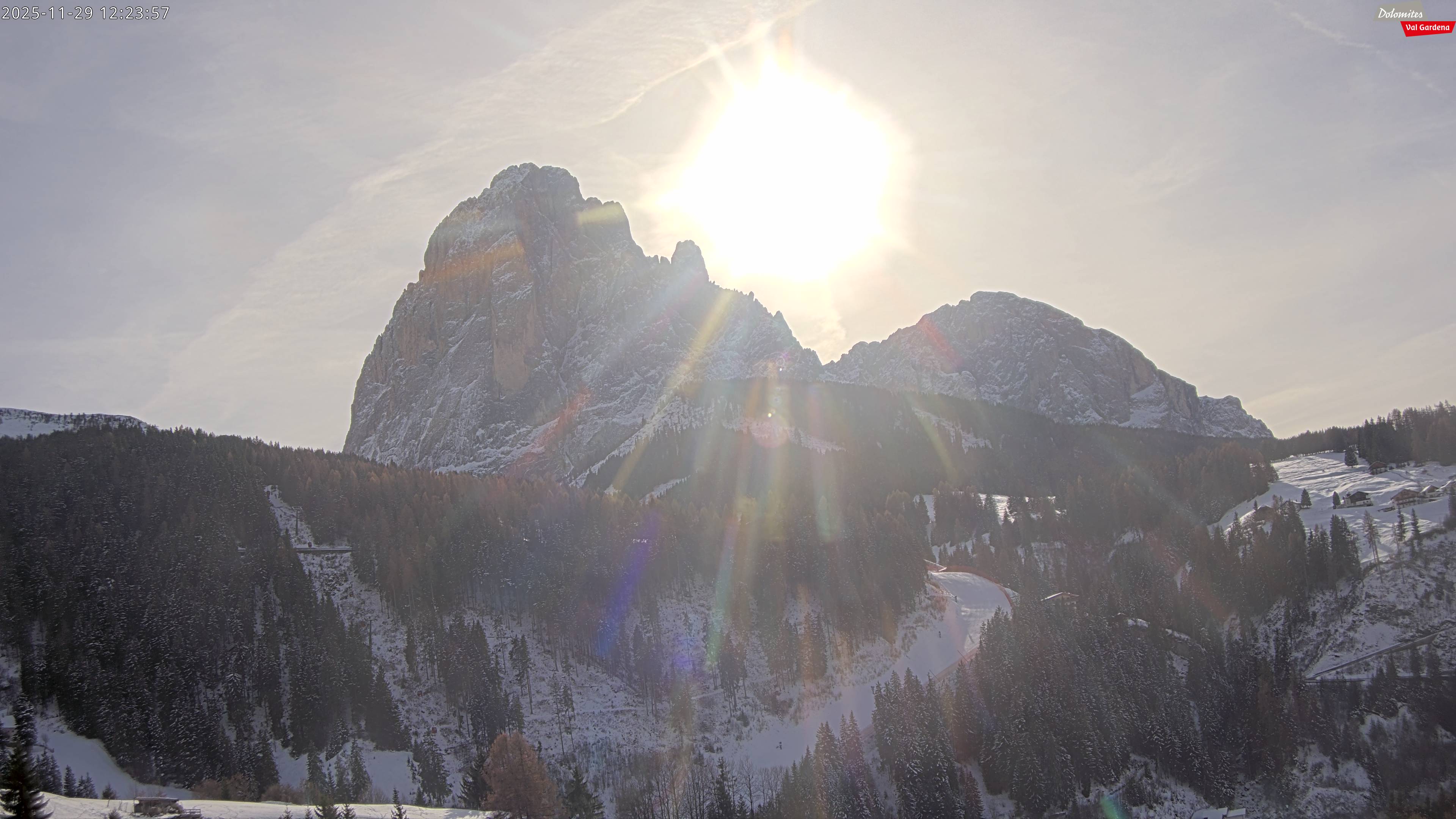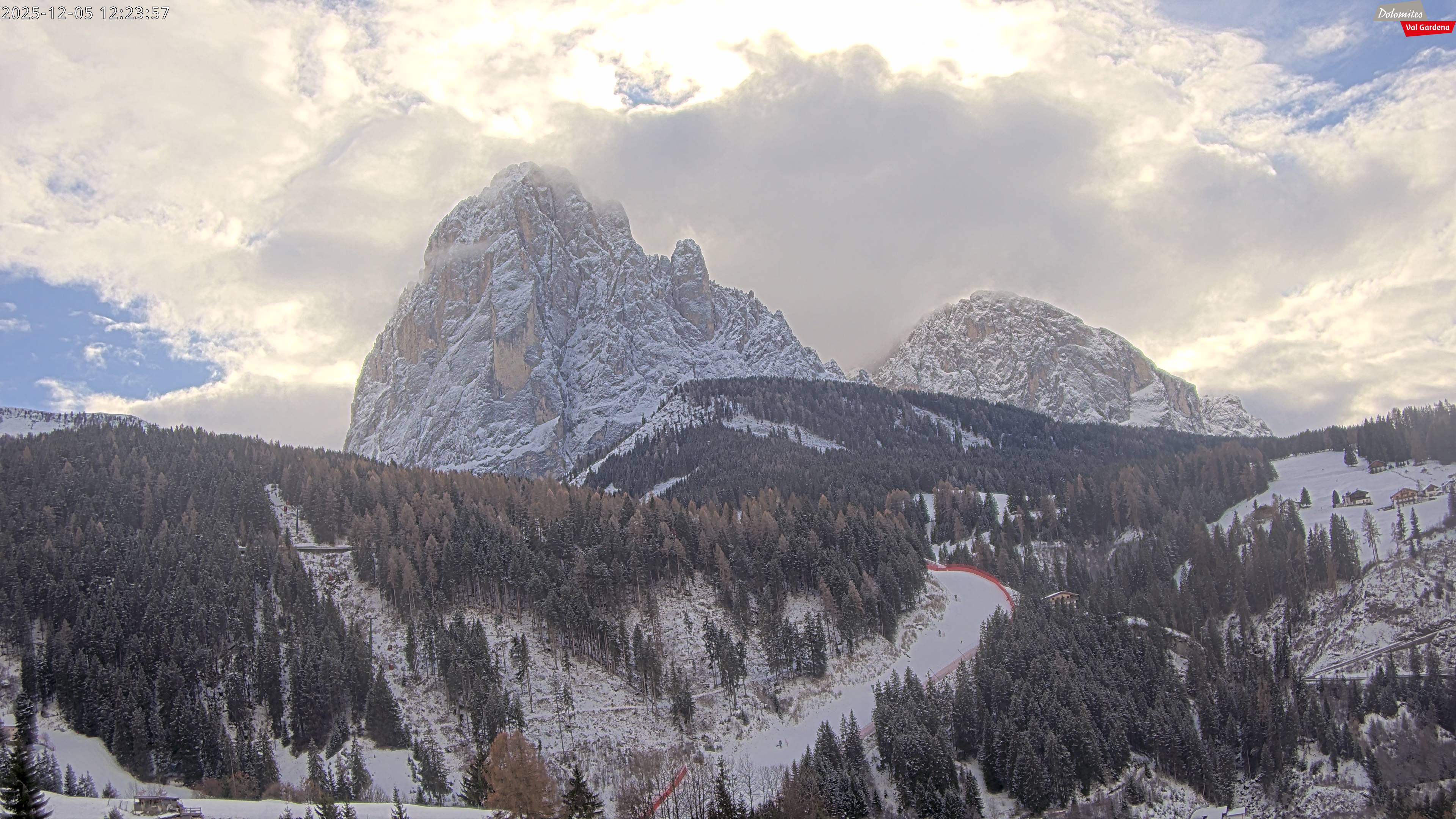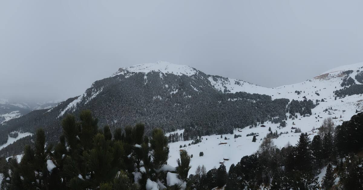 Ortisei, Italien - 6.6 km von Pizzago: Panoramakamera St. Ulrich - Aussicht auf die Sella-, Langkofelgruppe und St. Ulrich in Gröden von der Zone Solaria (1.245 m).