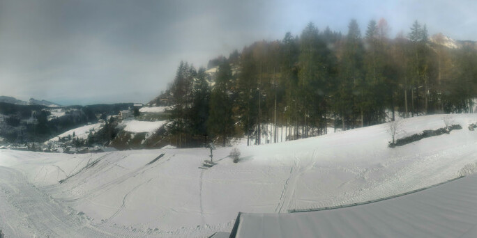 Ortisei, Italien - 8 km von San Giovanni di Fumes: Panoramakamera St. Ulrich - Aussicht auf die Sella-, Langkofelgruppe und St. Ulrich in Gröden von der Zone Solaria (1.245 m).