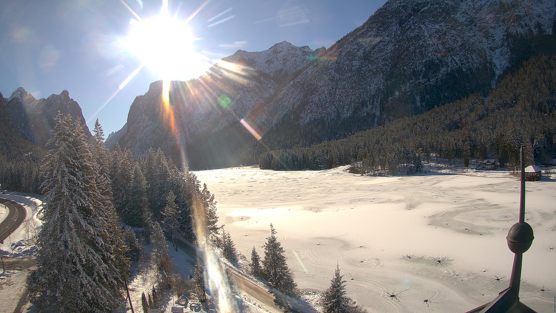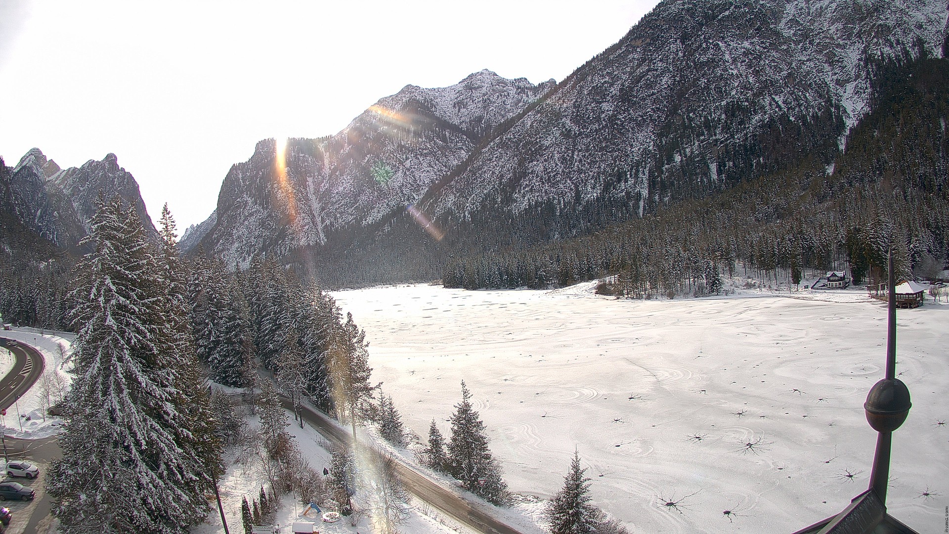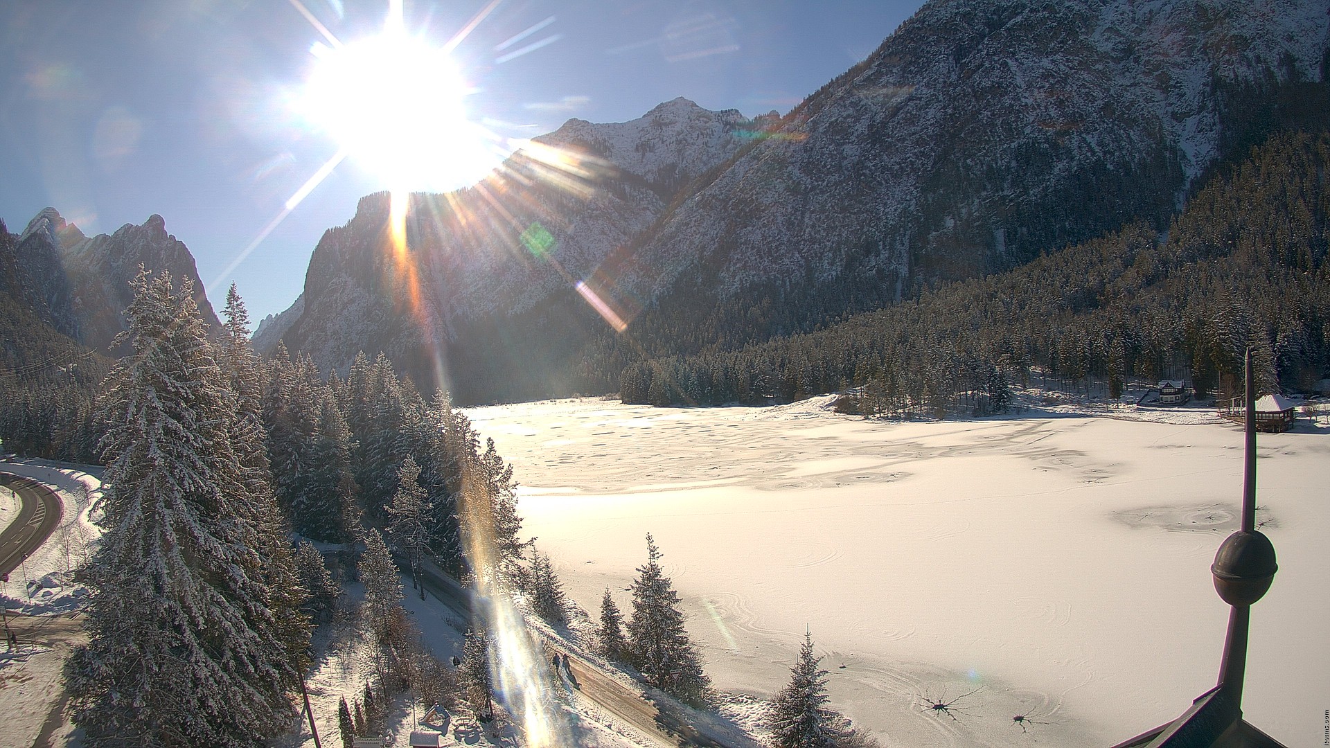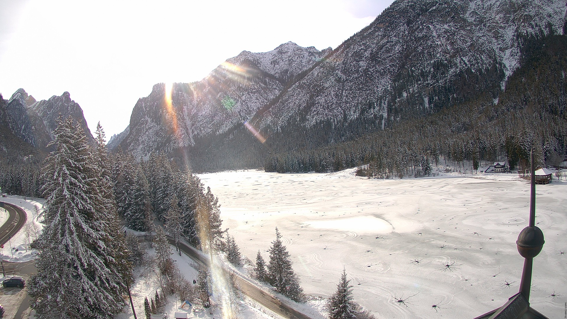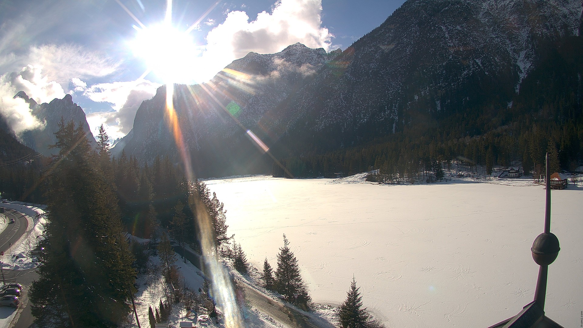 Toblach (Dolomites), Italien - 10.1 km von San Martino in Casies Valbassa: HD Foto-Webcam Drei Zinnenblick - Toblach / Dobbiaco - Drei-Zinnen-Blick / Vista Tre Cime / View of the Three Peaks.