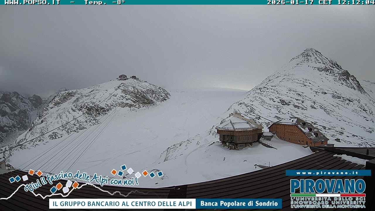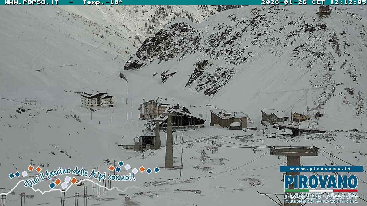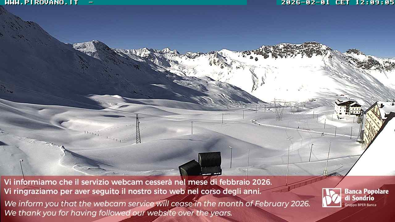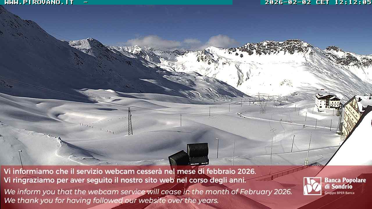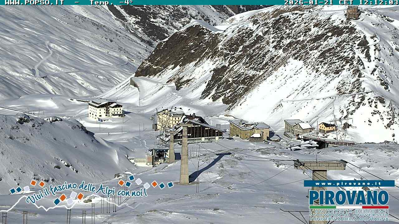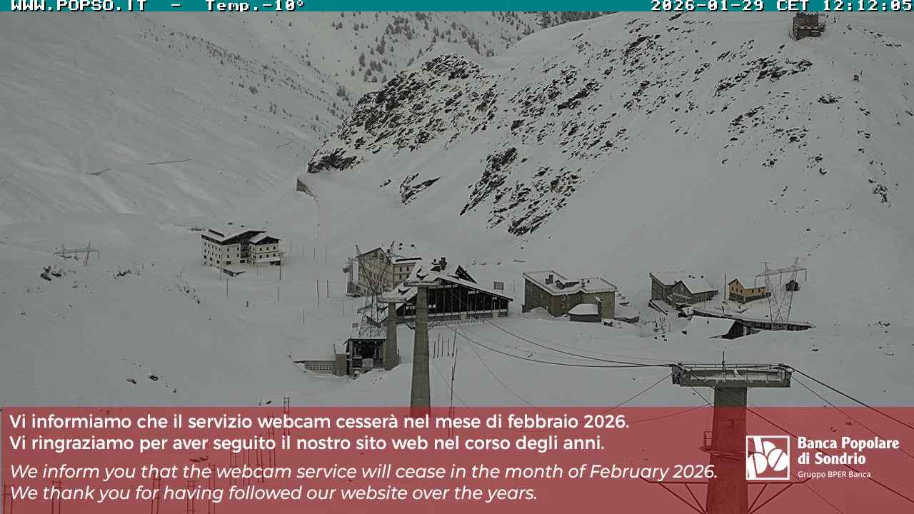 Stelvio Pass, Italien - 4 km von San Raineri: Mehrere Webcams - Zu sehen ist der letzte Teil des Veltlins in der Lombardei mit der Kaiserstraße, die über die höchste Stelle des Stilfserjochs führt.
