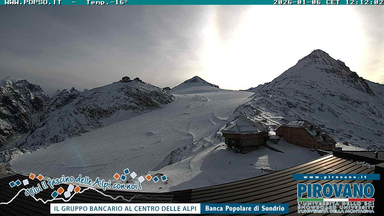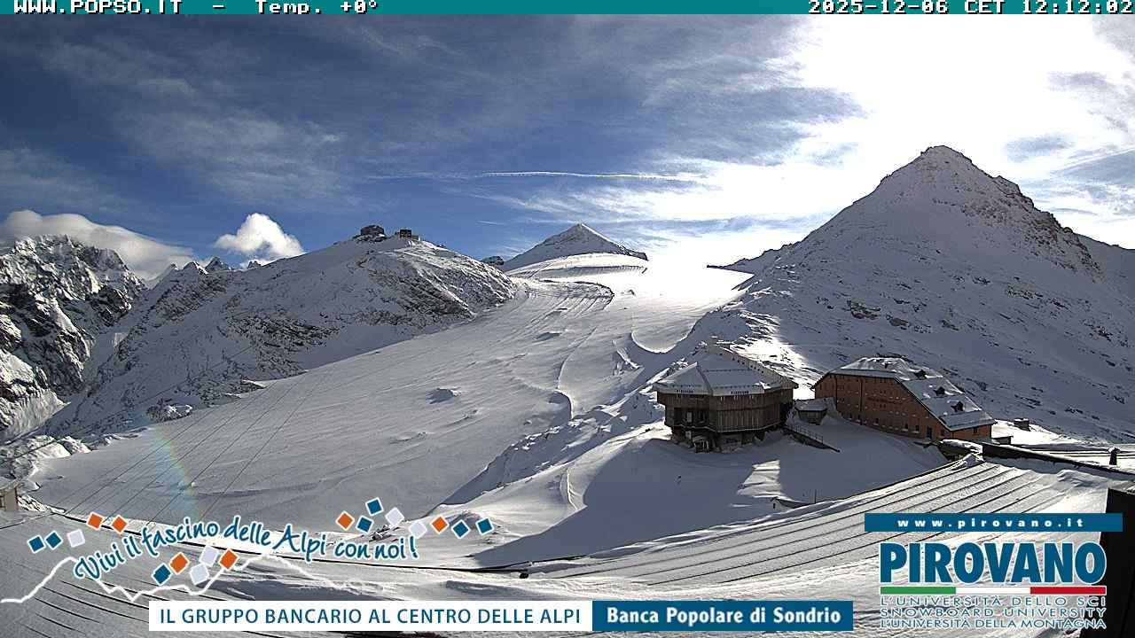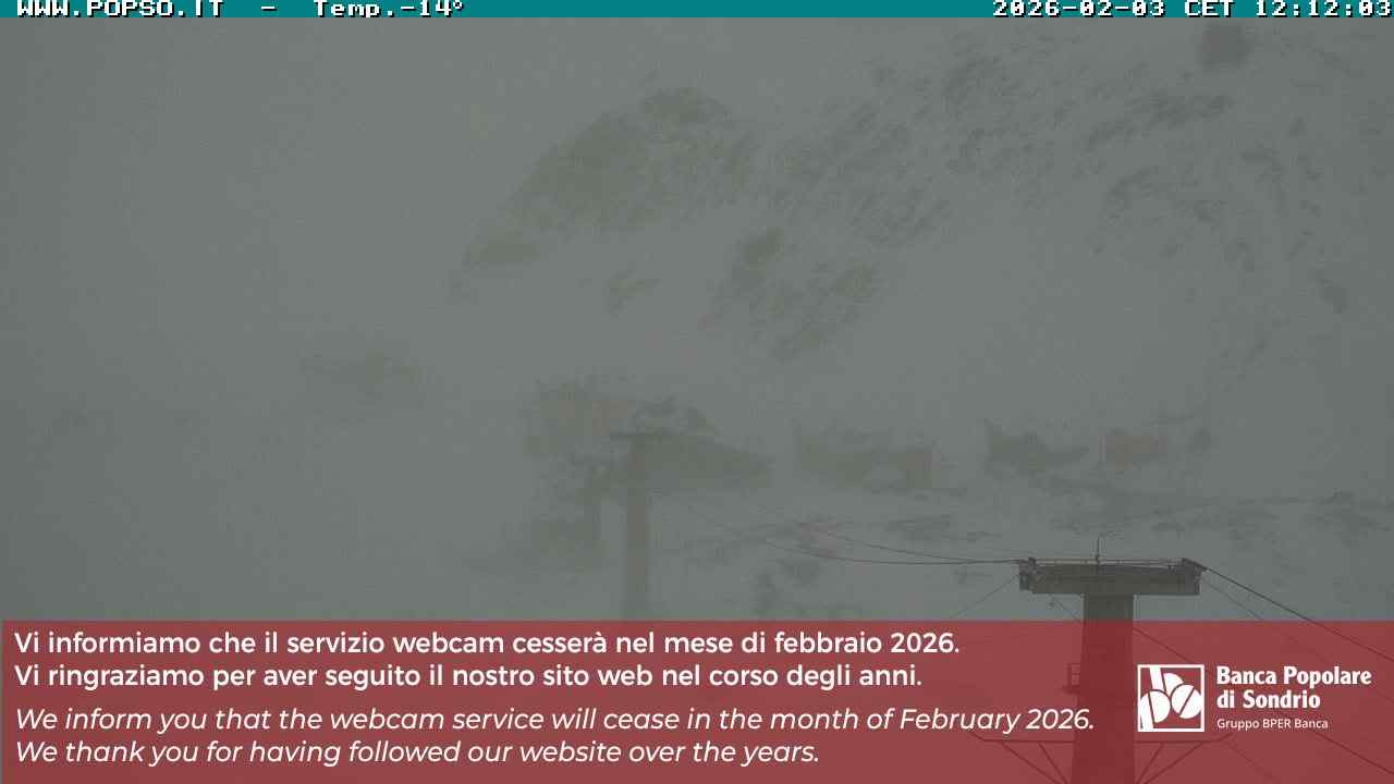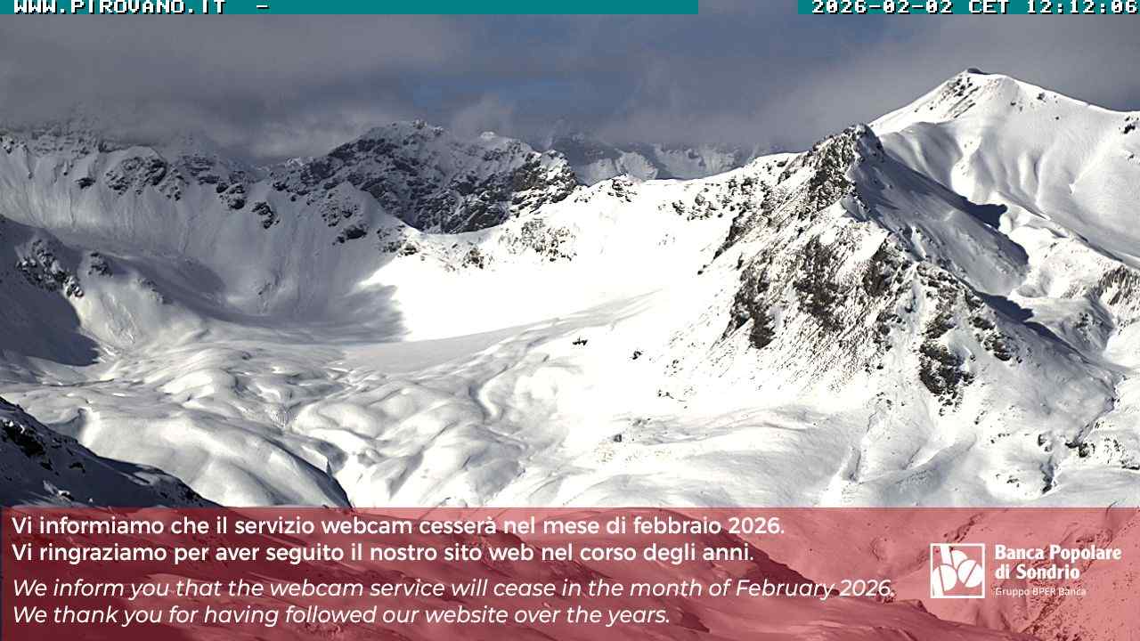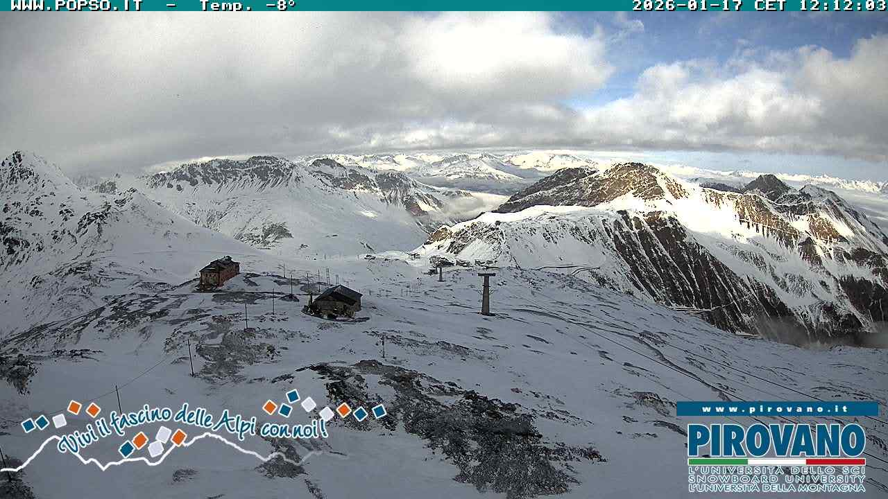 Stelvio Pass, Italien - 4 km von San Raineri: Mehrere Webcams - Zu sehen ist der letzte Teil des Veltlins in der Lombardei mit der Kaiserstraße, die über die höchste Stelle des Stilfserjochs führt.