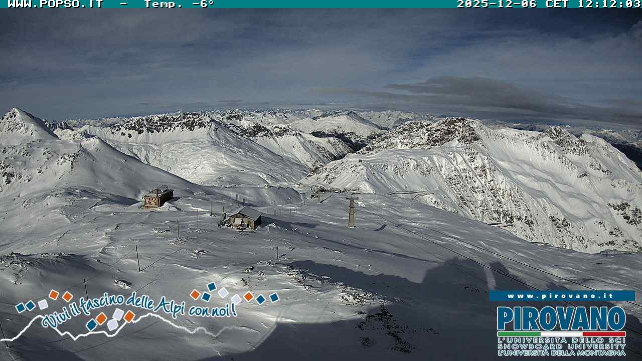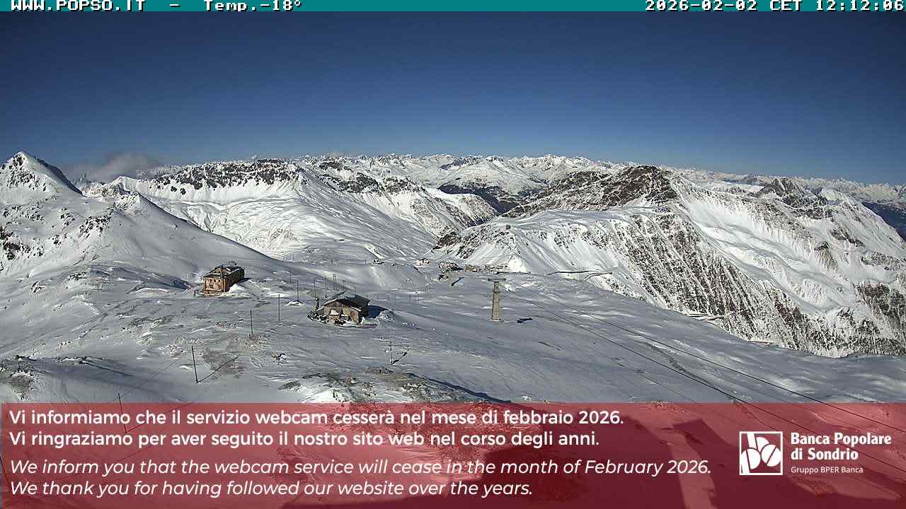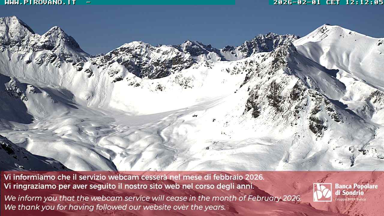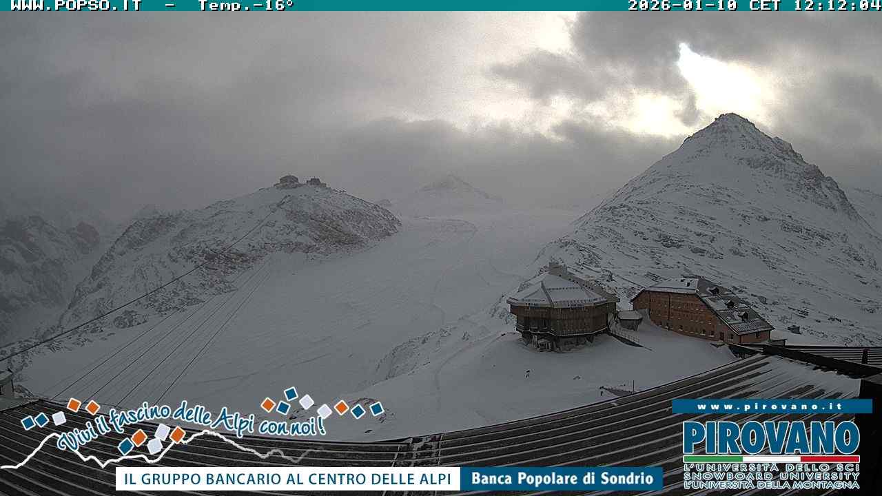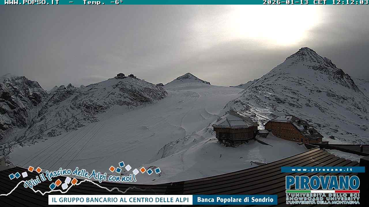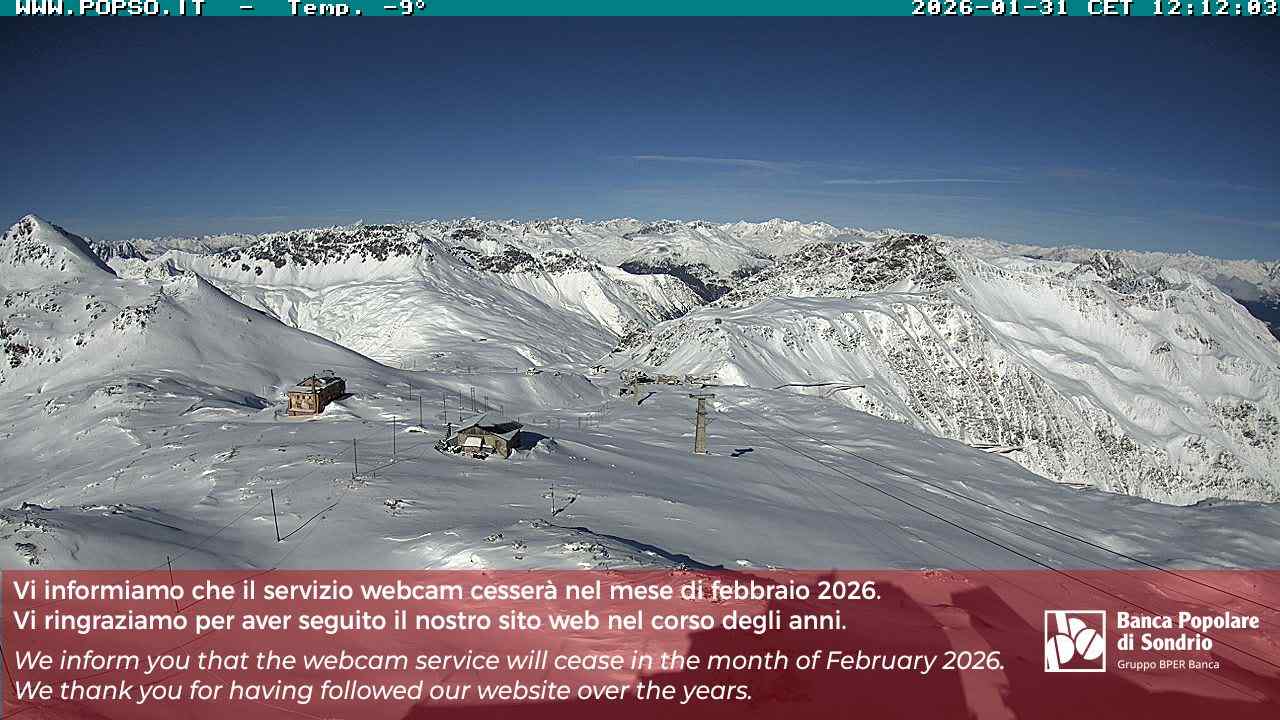 Stelvio Pass, Italien - 4 km von San Raineri: Mehrere Webcams - Zu sehen ist der letzte Teil des Veltlins in der Lombardei mit der Kaiserstraße, die über die höchste Stelle des Stilfserjochs führt.