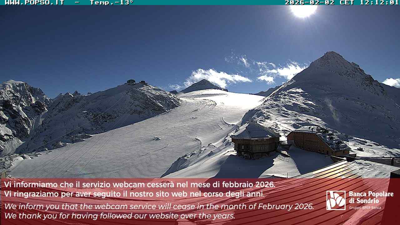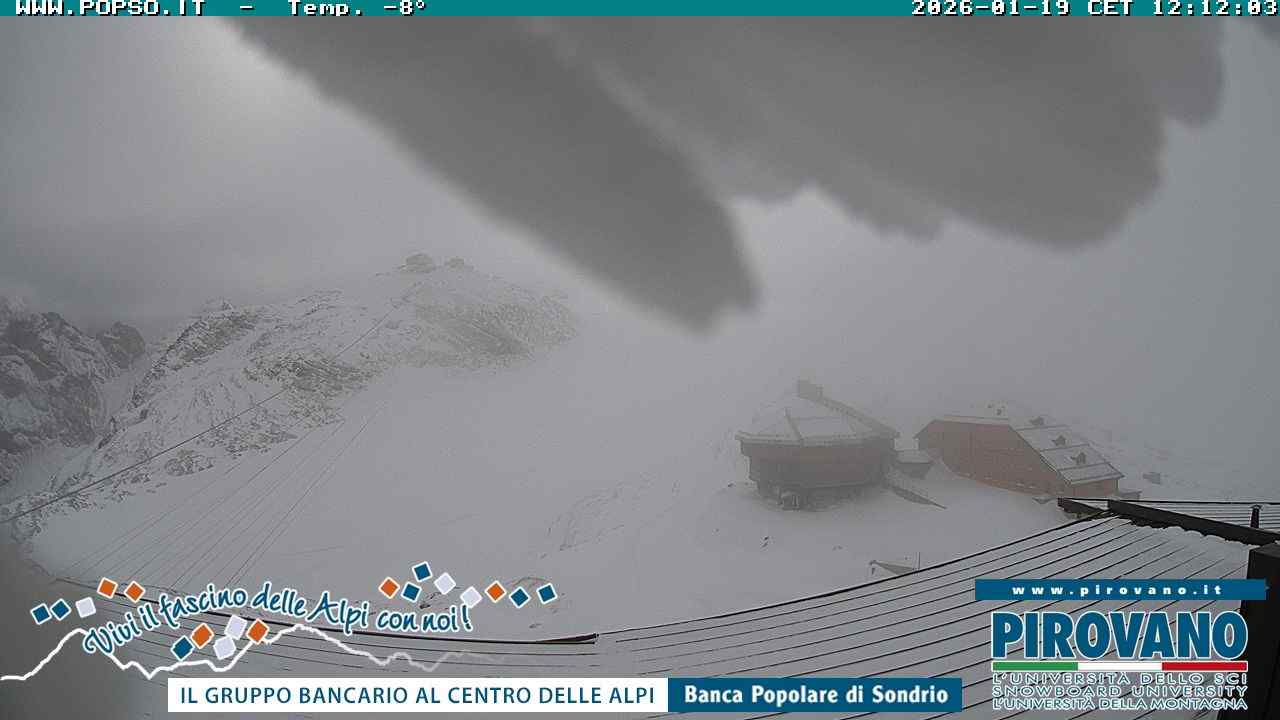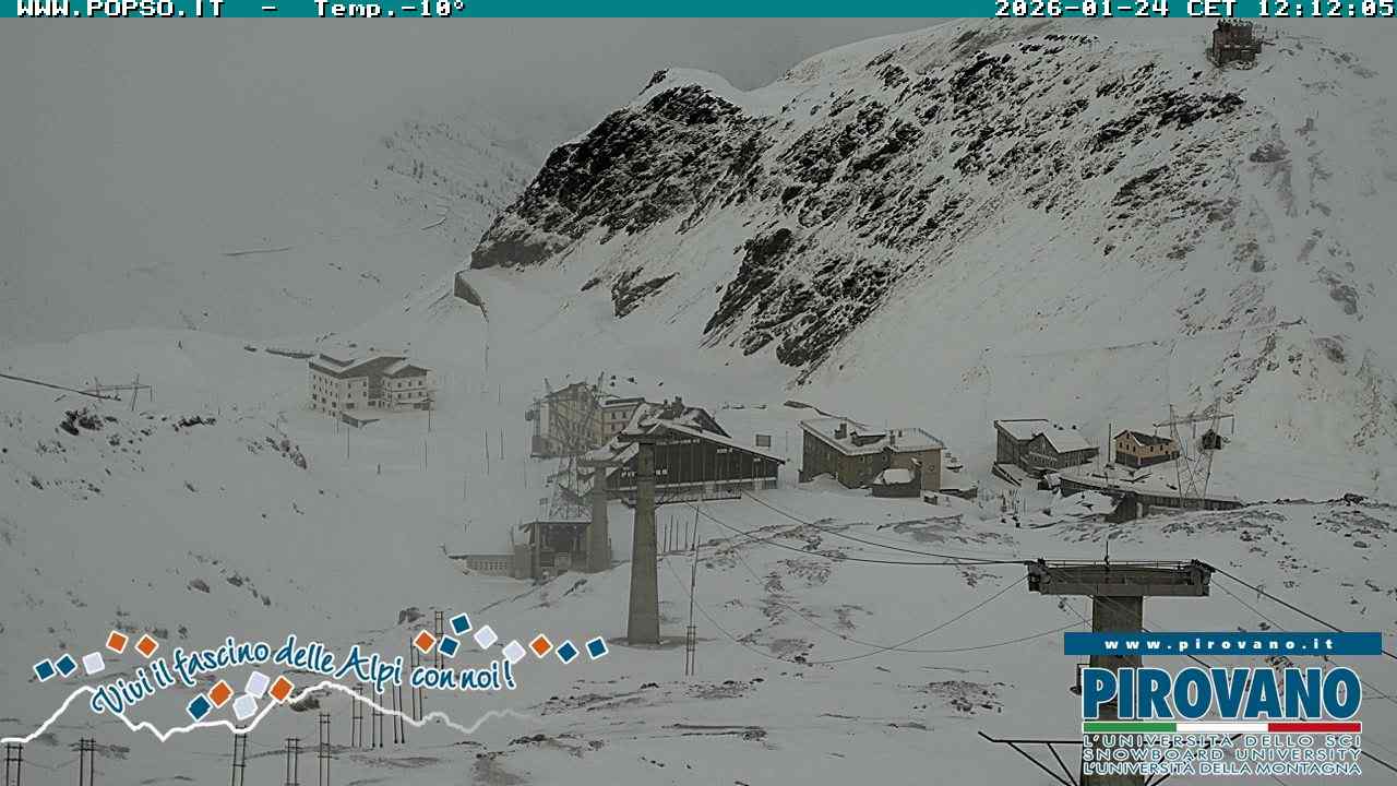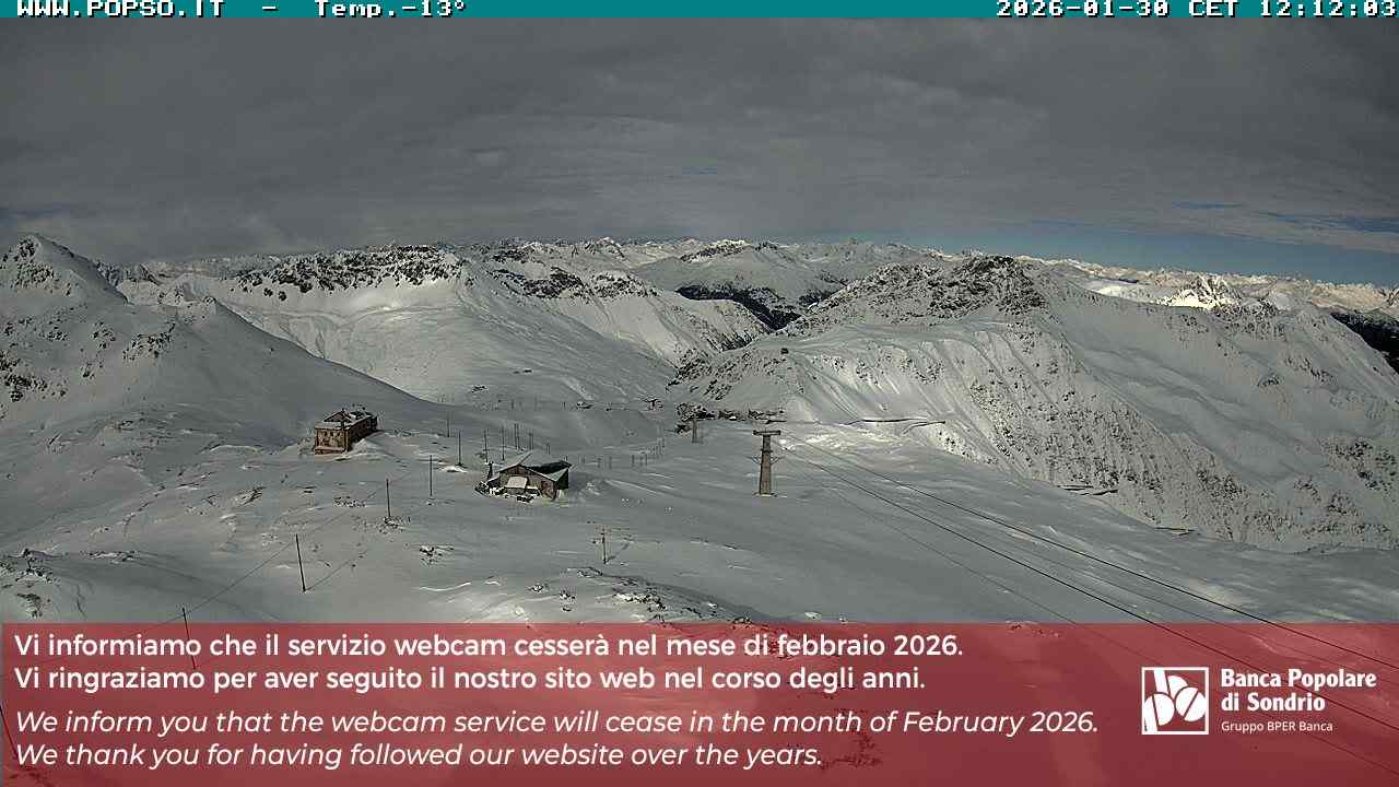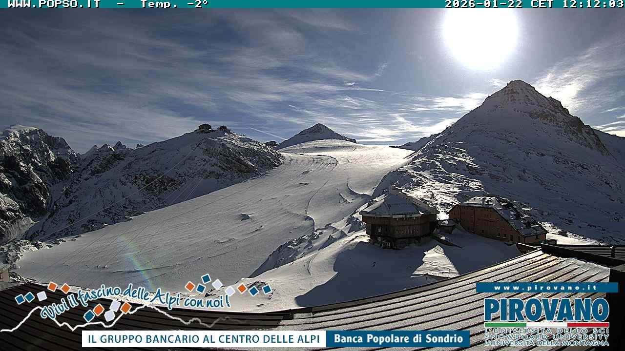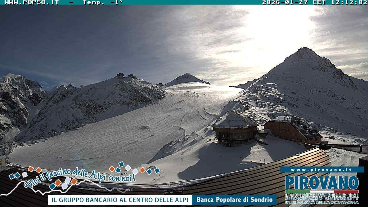 Stelvio Pass, Italien - 4 km von San Raineri: Mehrere Webcams - Zu sehen ist der letzte Teil des Veltlins in der Lombardei mit der Kaiserstraße, die über die höchste Stelle des Stilfserjochs führt.