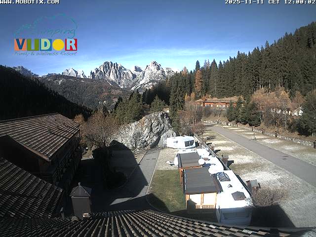 - Dolomiten: Blick aus dem Camping Vidor in Pozza di Fassa.