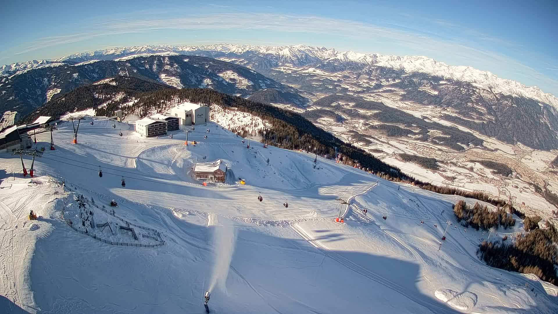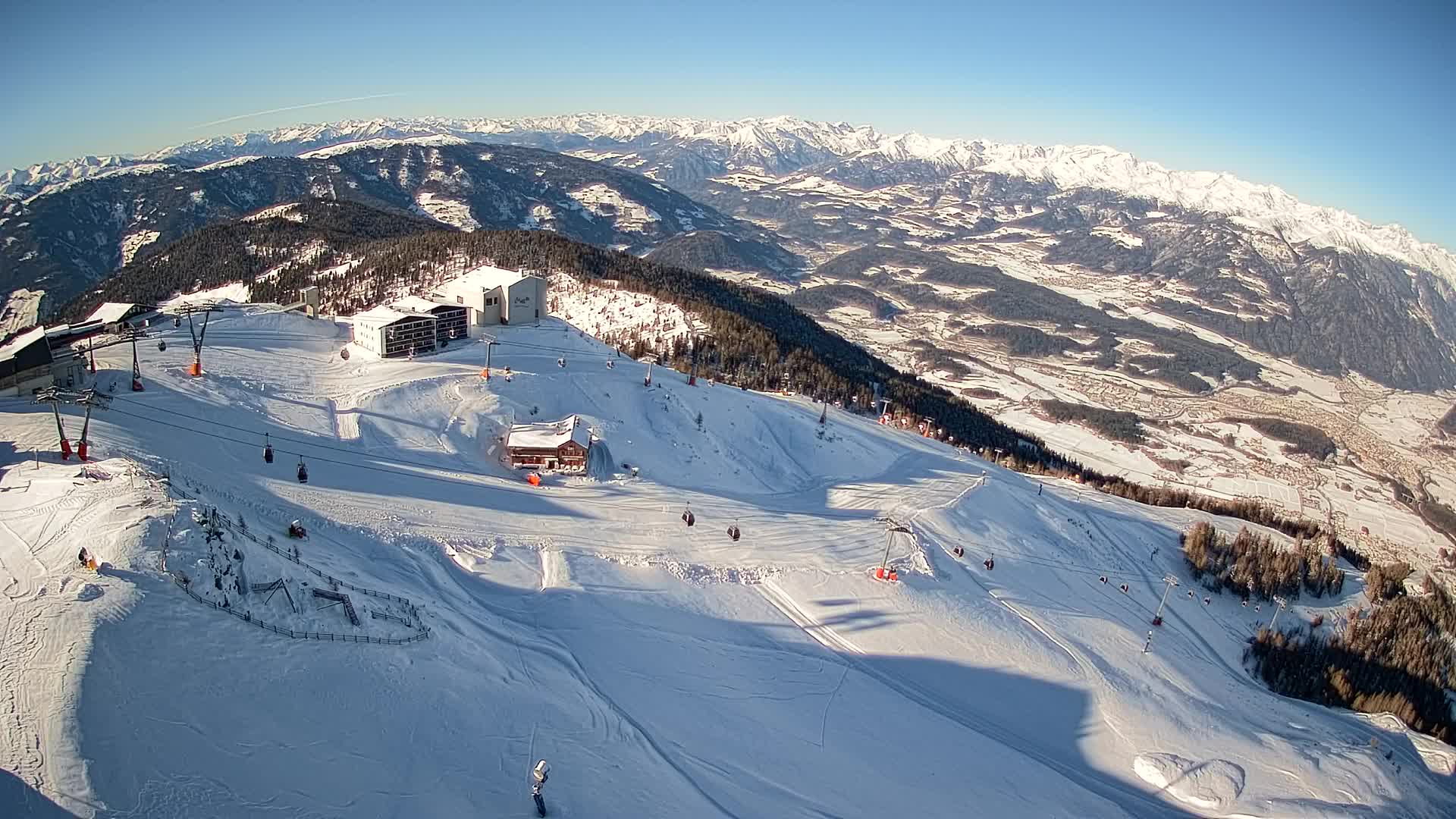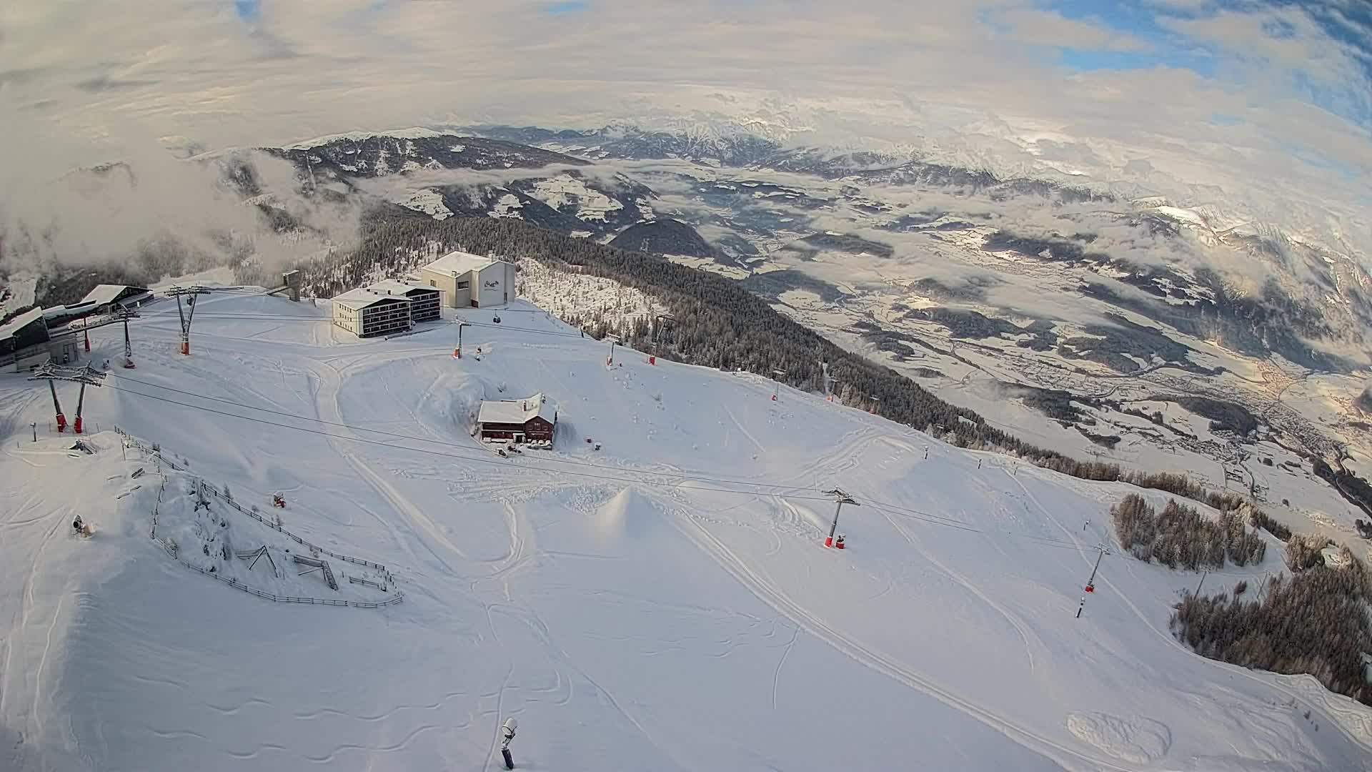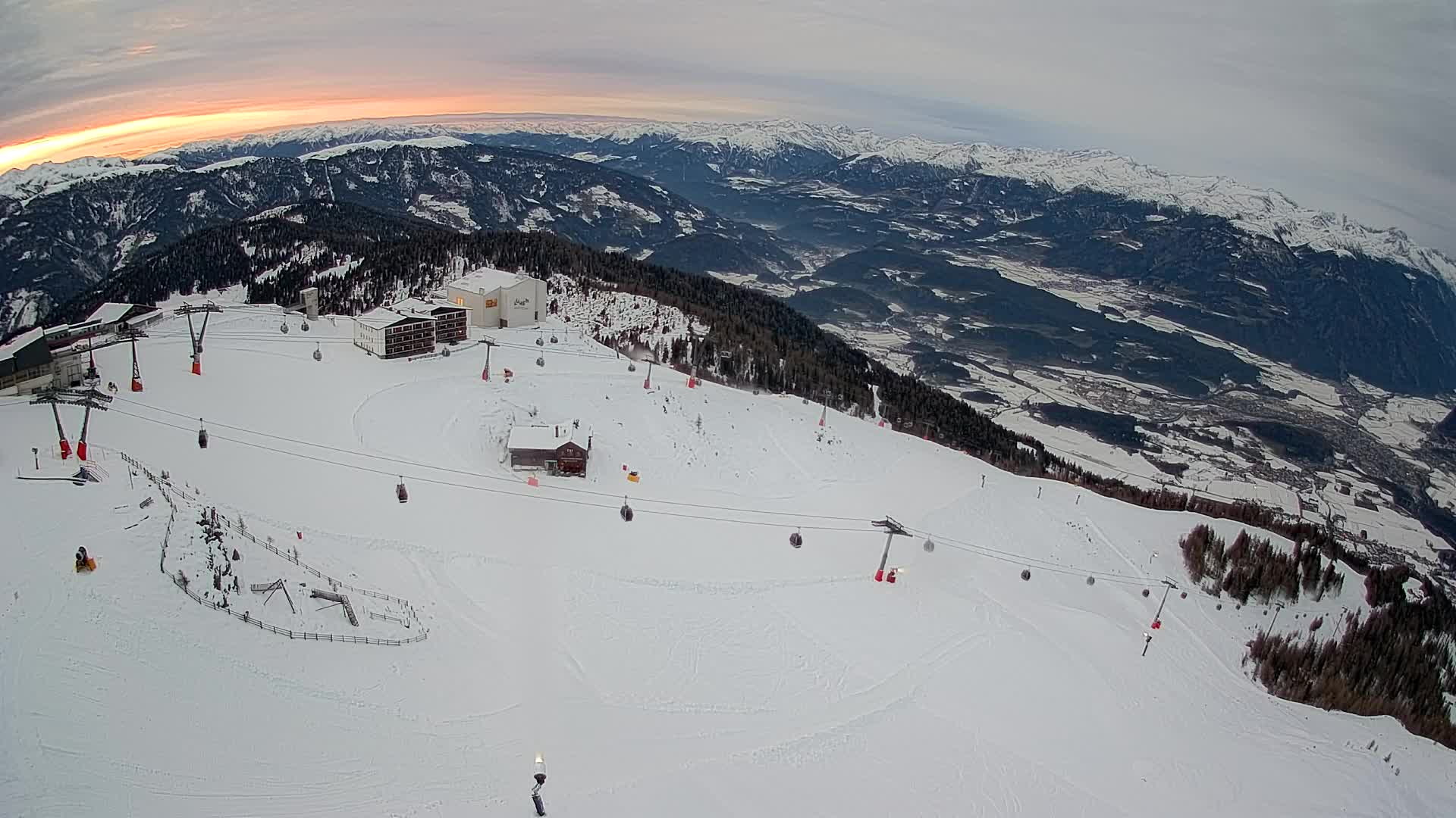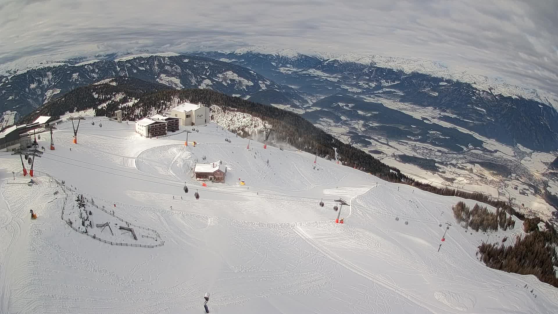 Bruneck, Italien - 5.3 km von Vila di Sopra: Skigebiet Kronplatz Gipfel - Blick auf Bruneck