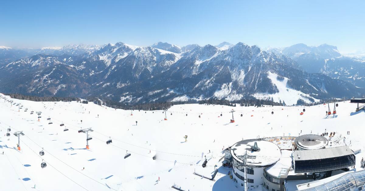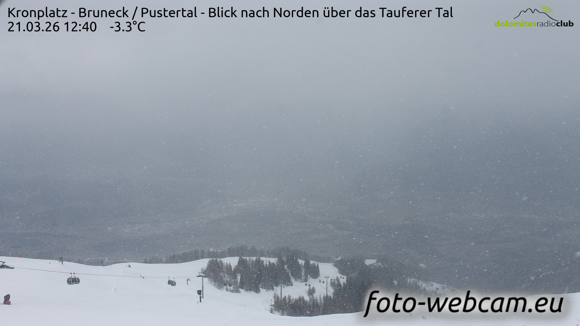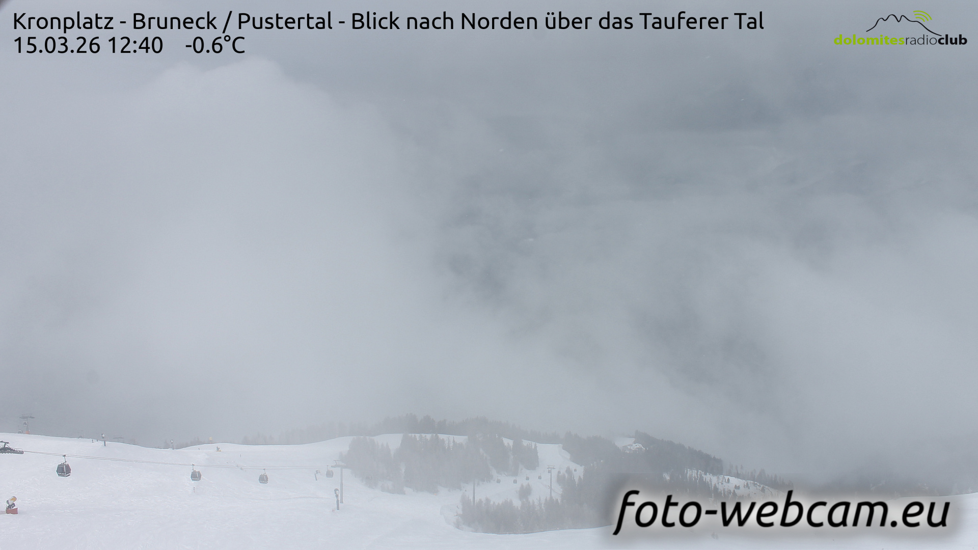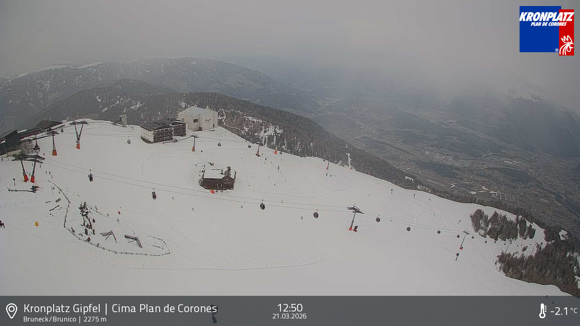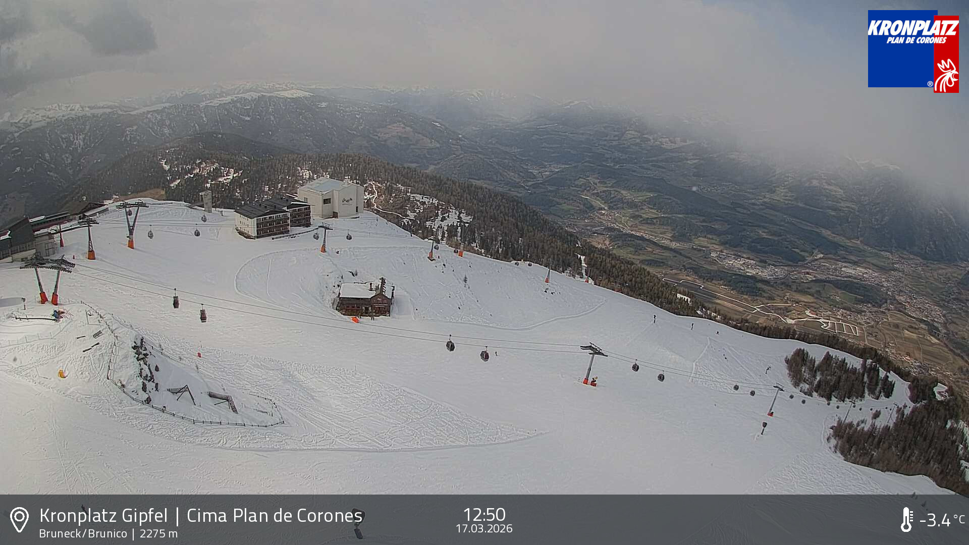 Kronplatz, Italien - 6.2 km von Welschellen: HD Foto-Webcam Bruneck und Tauferer Tal - Panoramablick vom Kronplatz Richtung Norden über Bruneck und das Tauferer Tal.