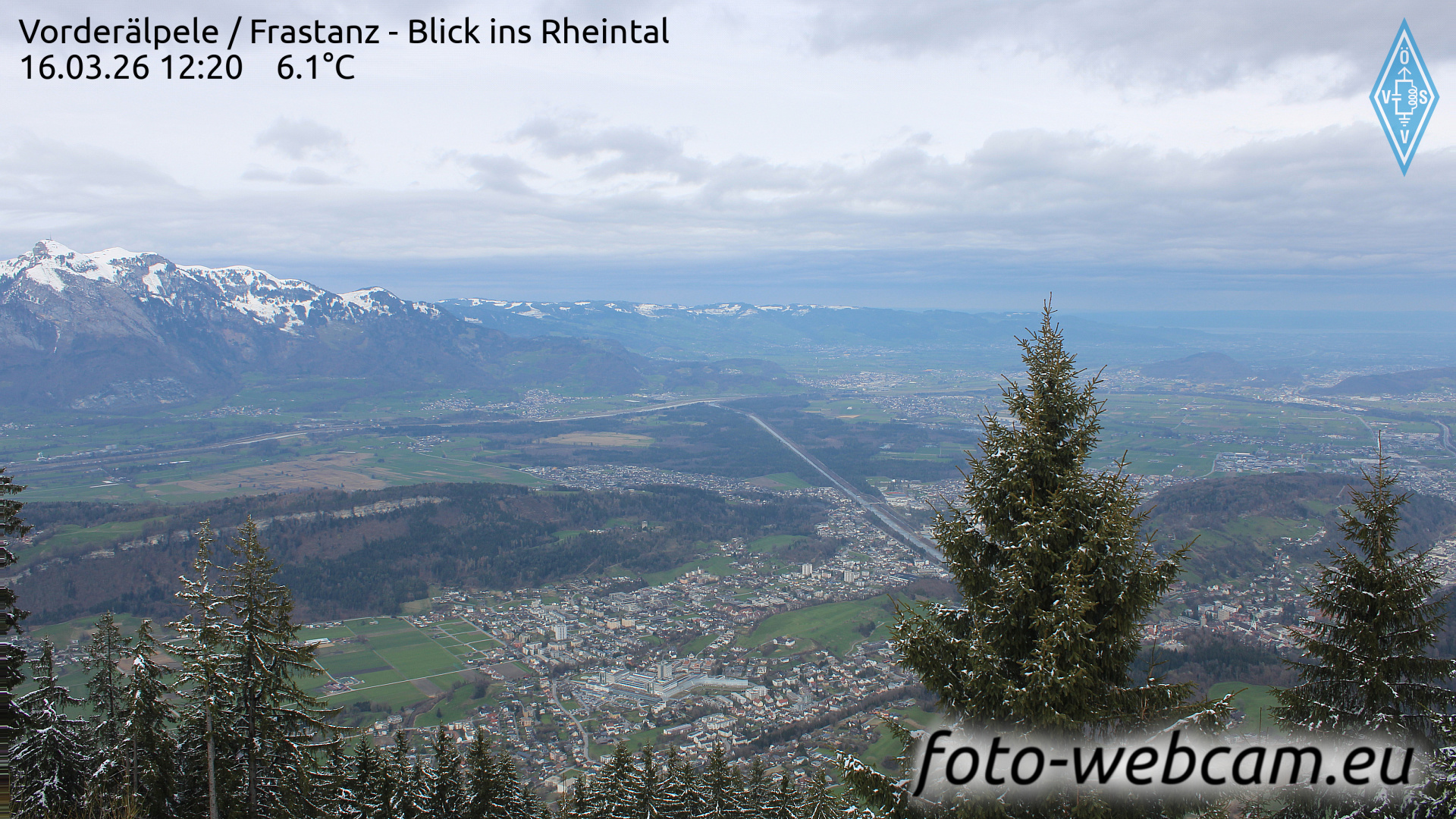 Hoher Kasten, Schweiz - 6.7 km von Mittlerschellenberg: HD Foto-Webcam Hoher Kasten - Hoher Kasten / Drehrestaurant - Blick nach Südosten ins Rheintal.