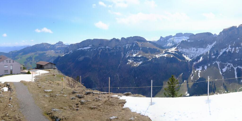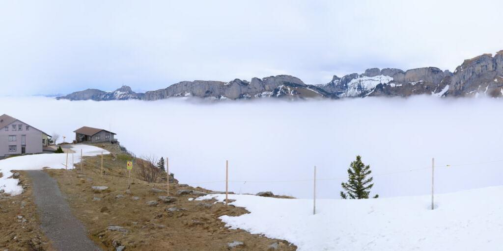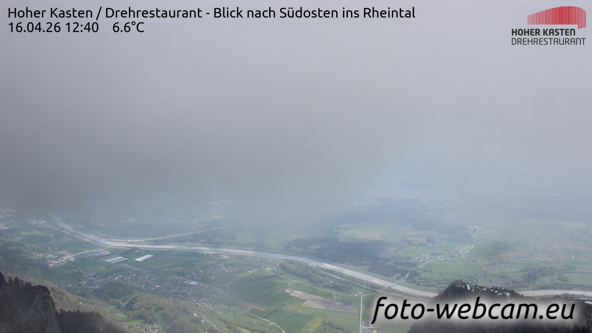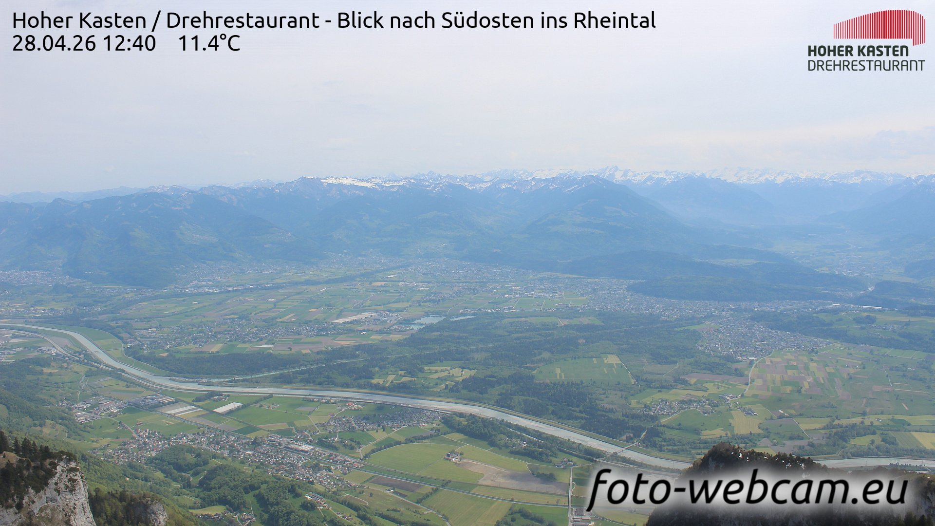 Hoher Kasten, Schweiz - 6.7 km von Vorder-Schellenberg: HD Foto-Webcam Hoher Kasten - Hoher Kasten / Drehrestaurant - Blick nach Südosten ins Rheintal.
